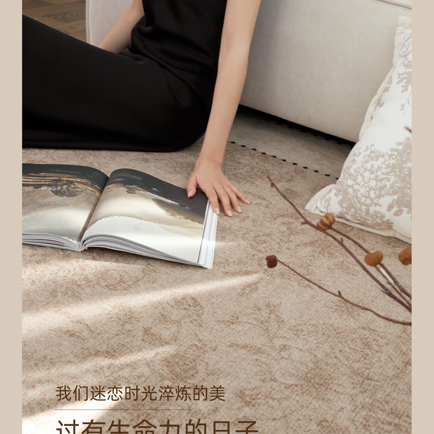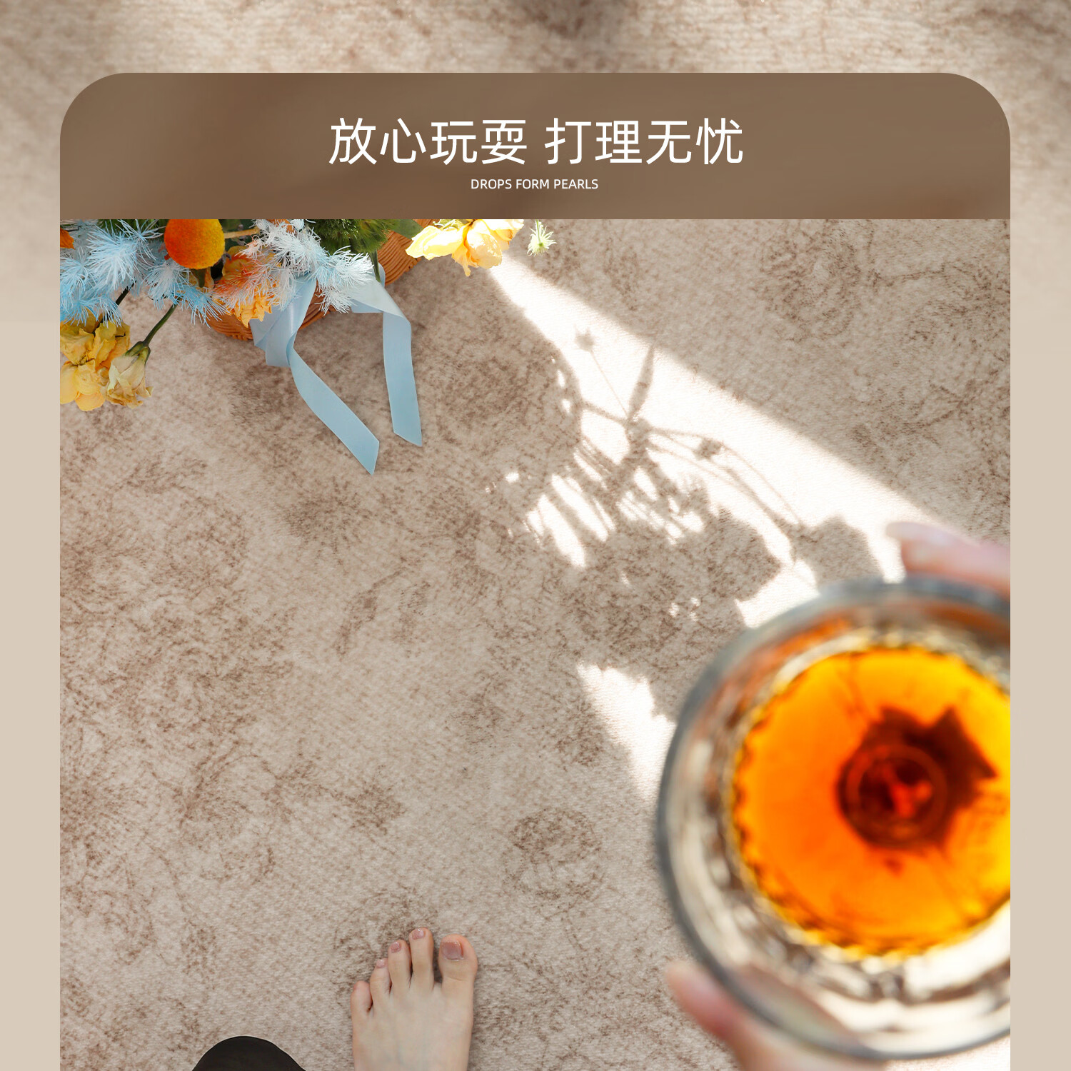 像素客厅地毯2025新款中古风免洗可擦加厚沙发地垫法式复古高级感防水 觉浅-26314 定制联系客服【不退不换】