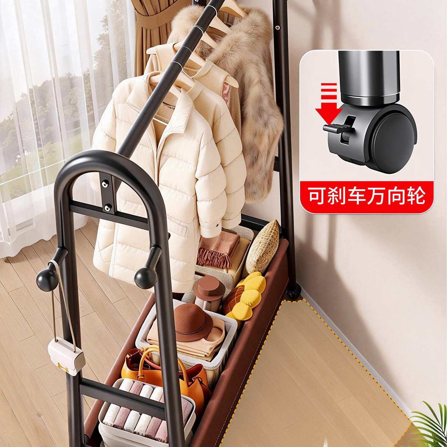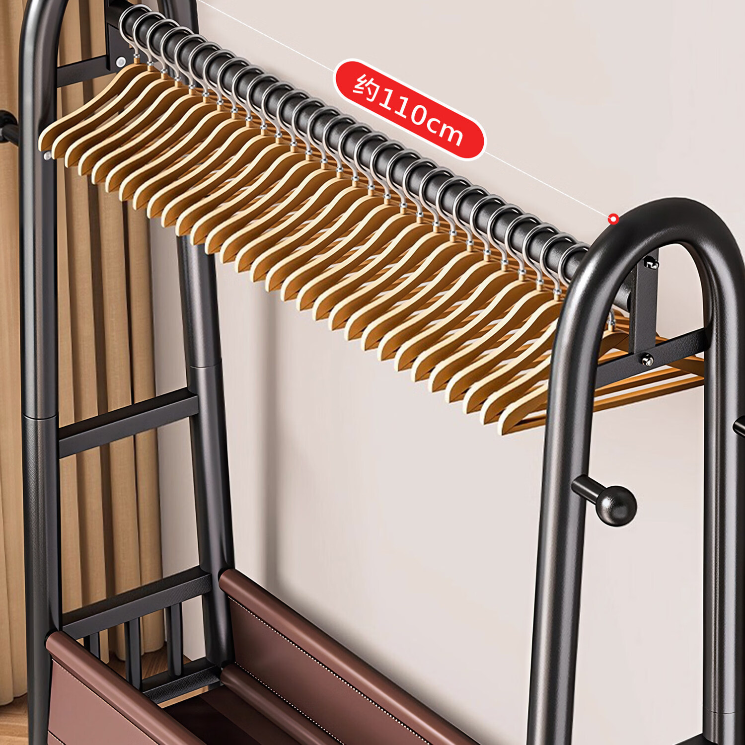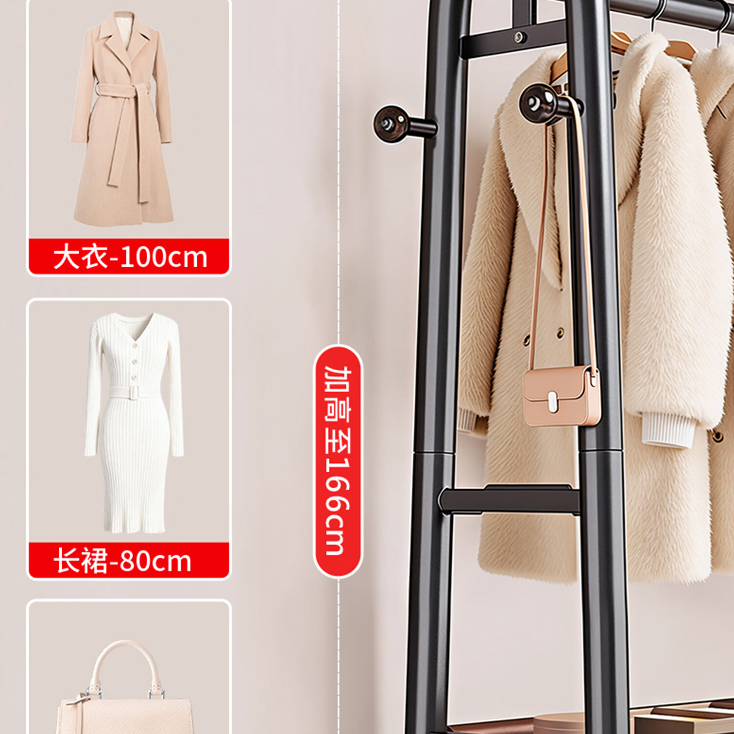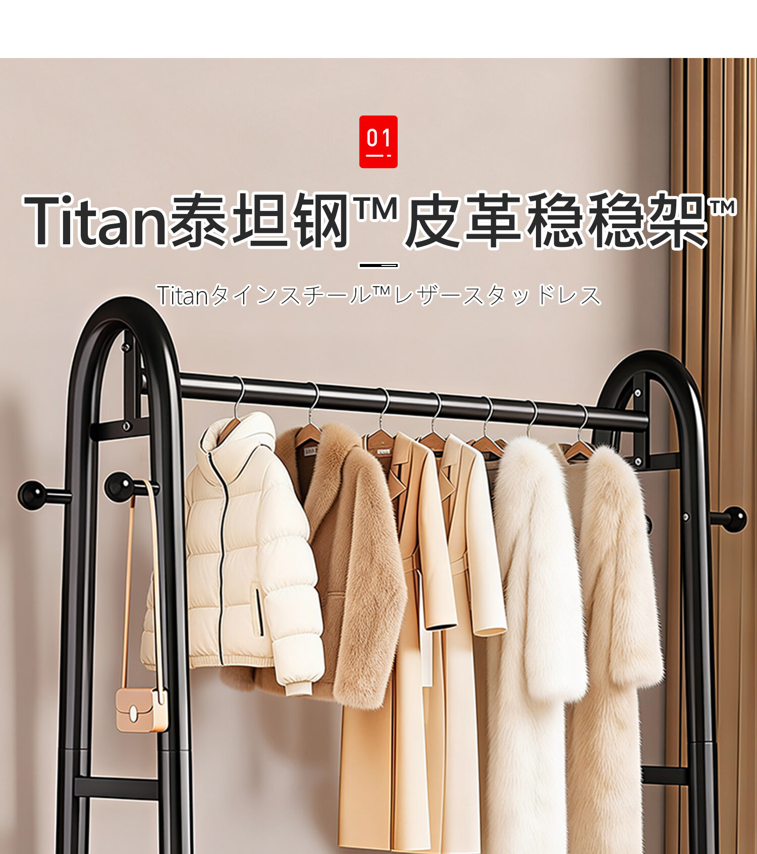 吱凡日本卧室落地晾衣架家用可移动挂衣架房间衣物收纳架子简易衣帽架 长1米*高1.66米【高端纳帕皮革】雪釉白丨可移动
