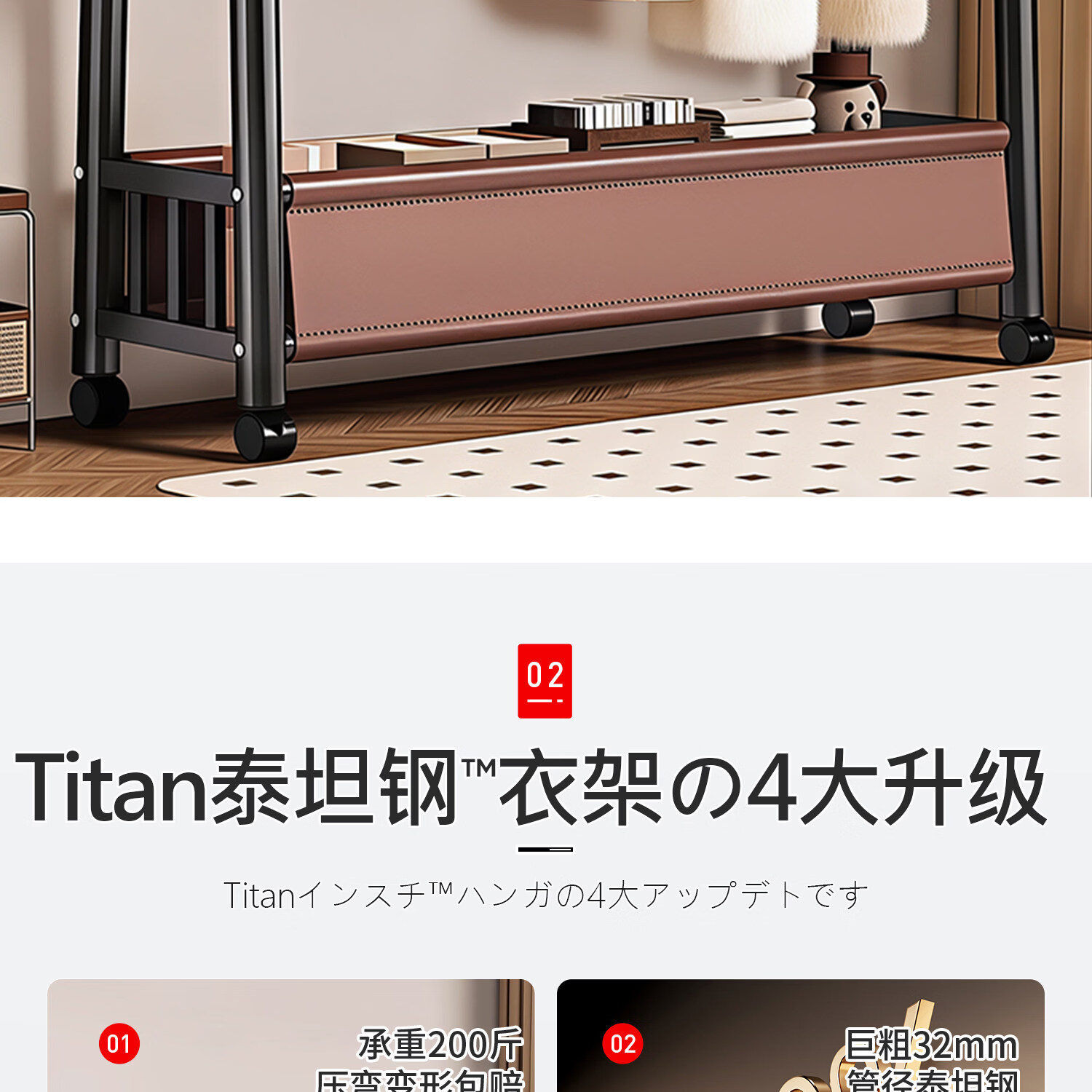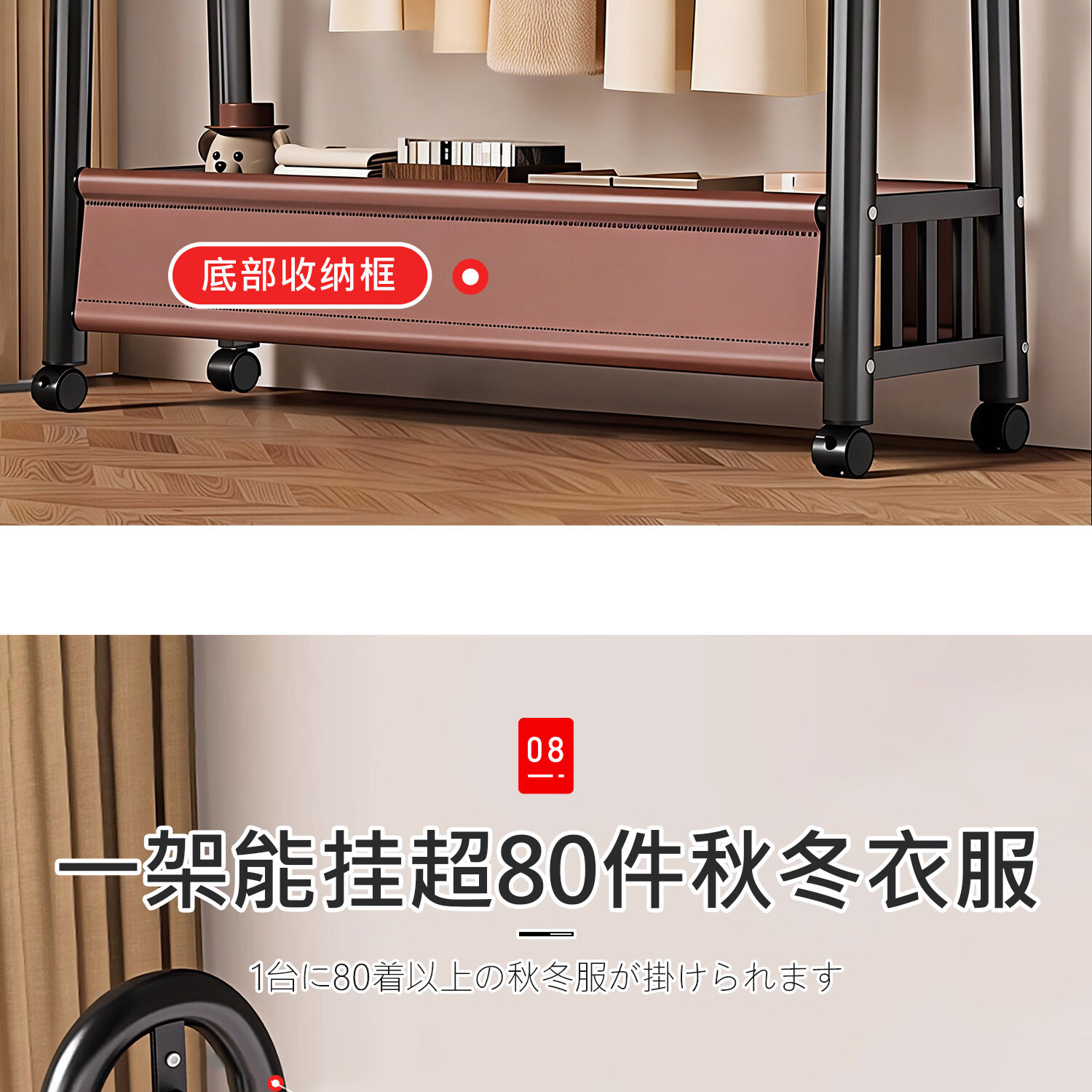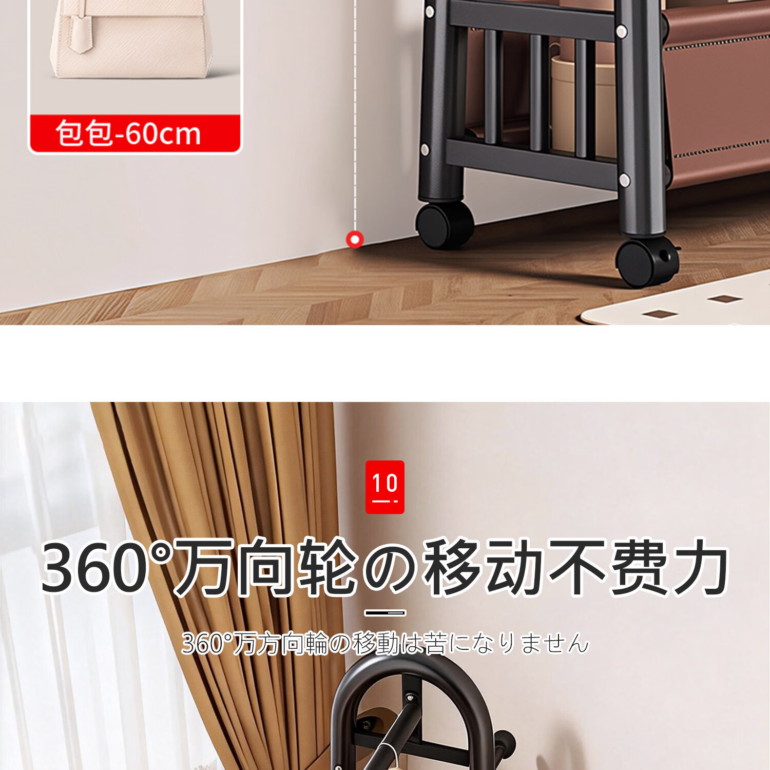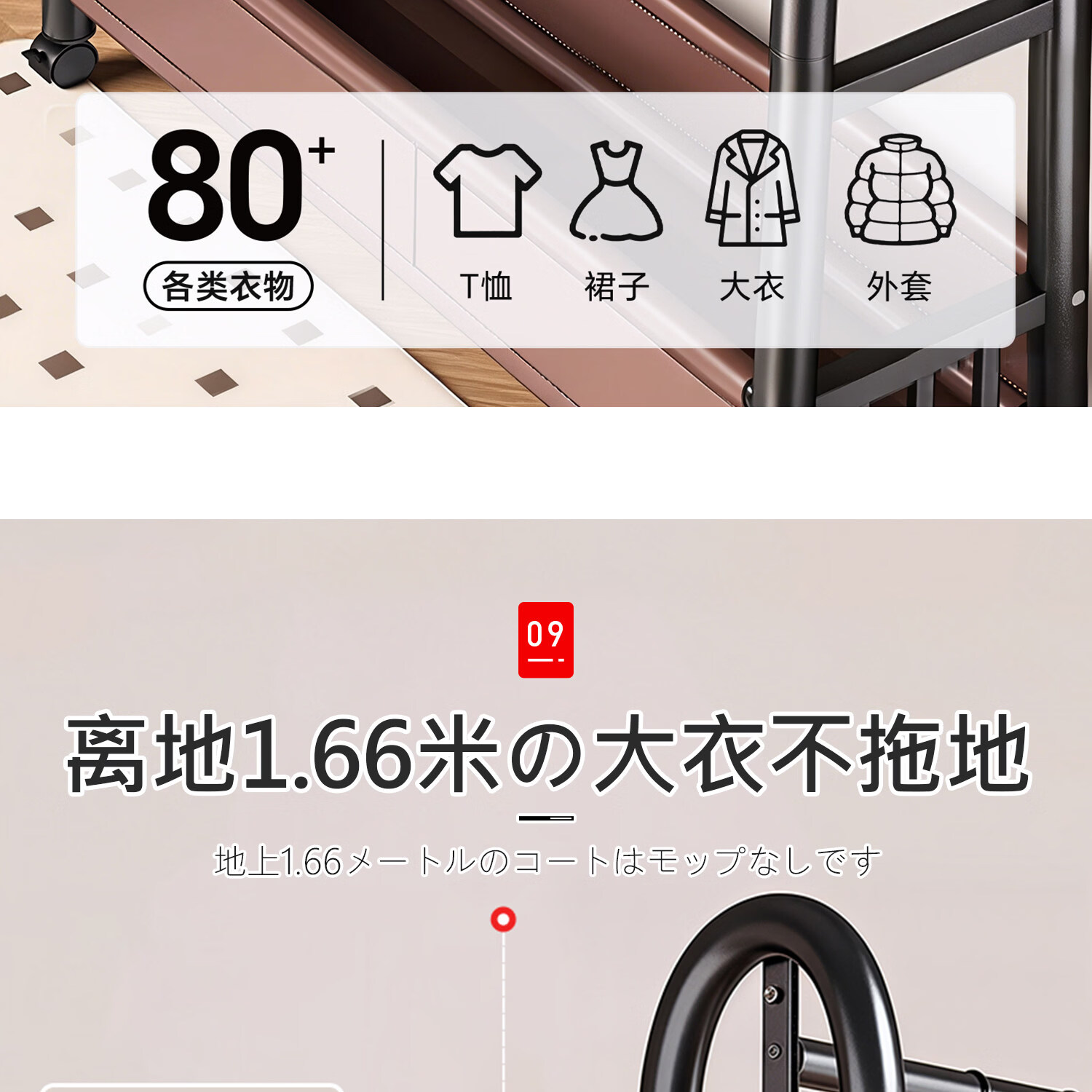 吱凡日本卧室落地晾衣架家用可移动挂衣架房间衣物收纳架子简易衣帽架 长1米*高1.66米【高端纳帕皮革】雪釉白丨可移动