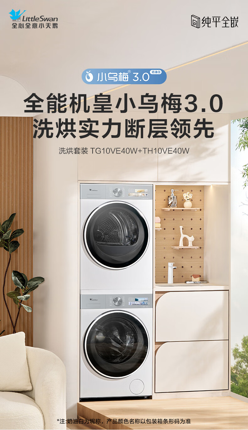 小天鹅(LittleSwan)小乌梅3.0奶油白洗烘套装 10公斤滚筒全自动家用洗衣机+热泵烘干机 纯平全嵌AI智投 TG10VE40W+TH10VE40W