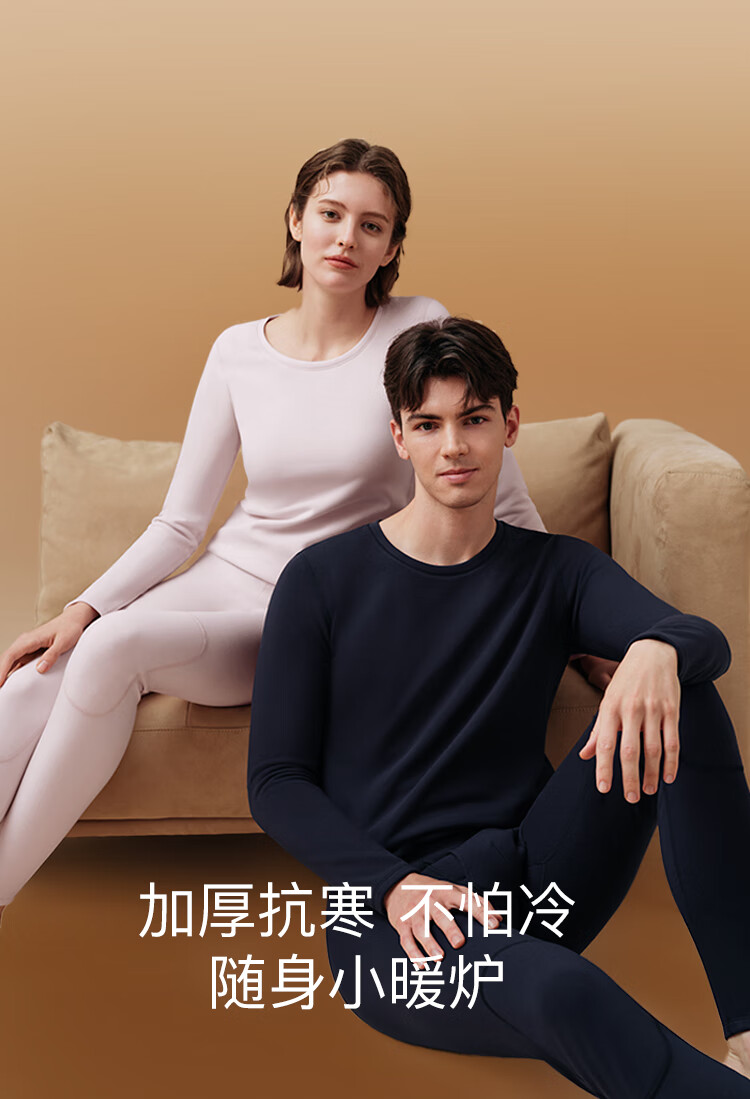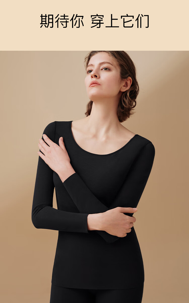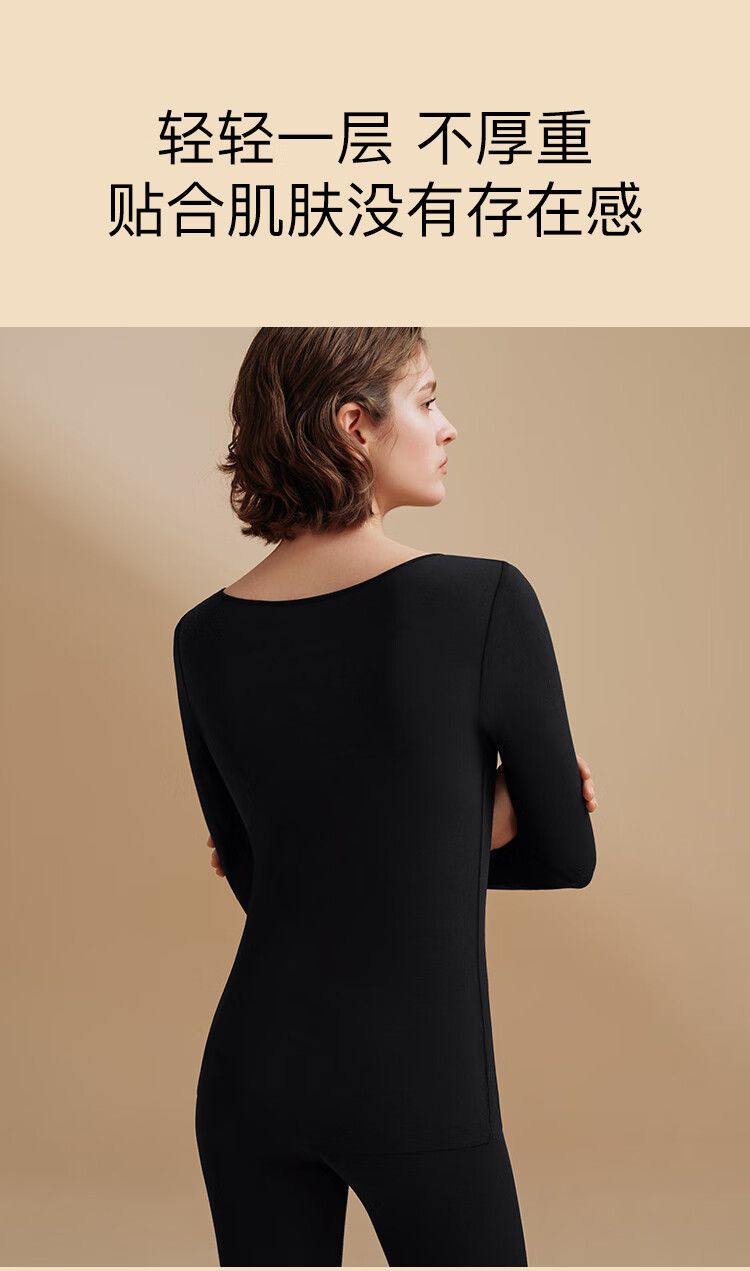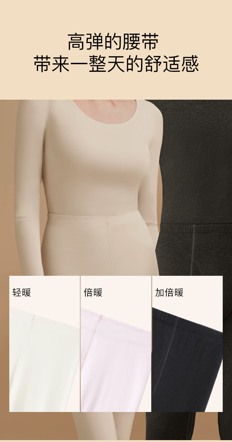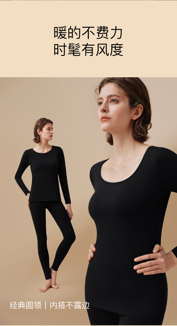 ubras新款加厚柔暖肌底衣套装羽绒化保暖内衣女秋衣秋裤加倍暖-燕麦奶M