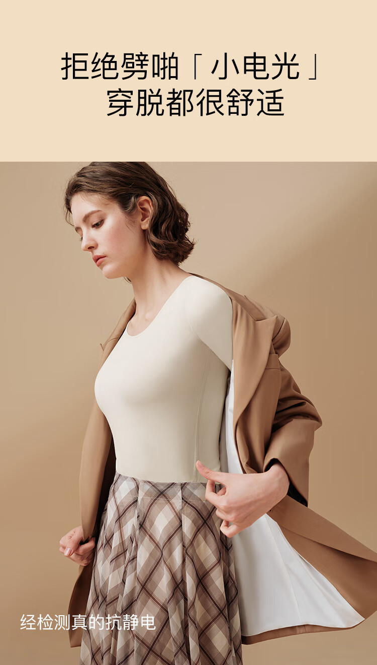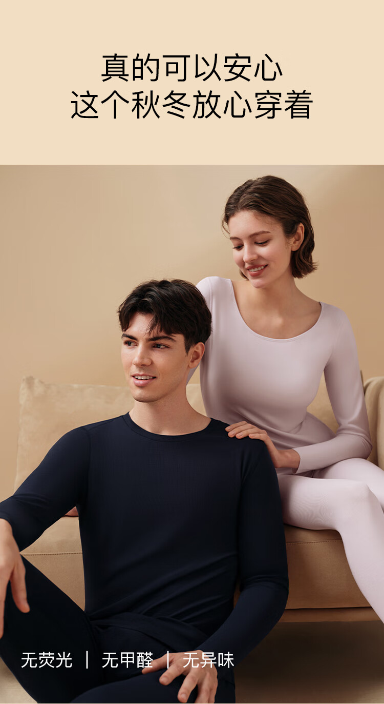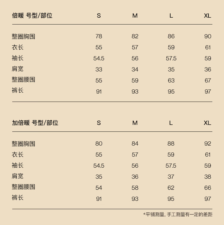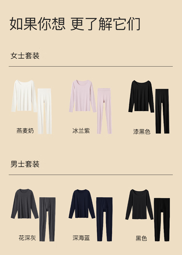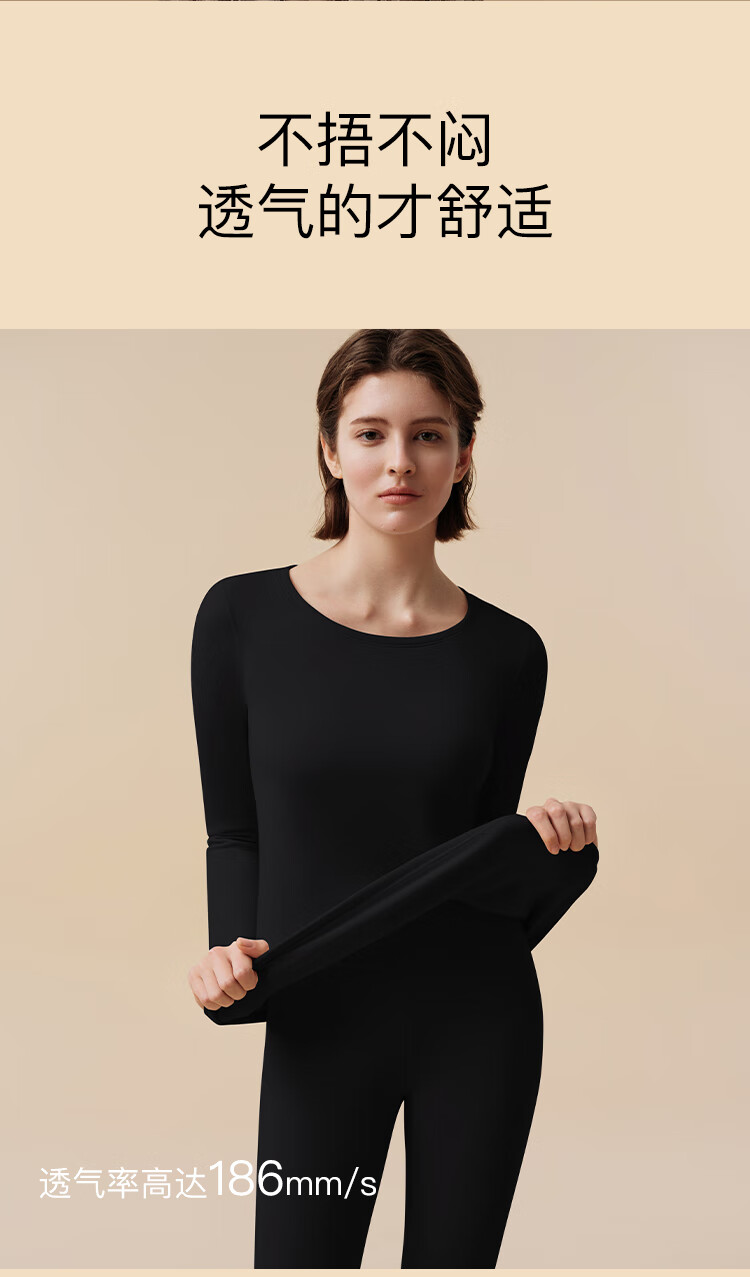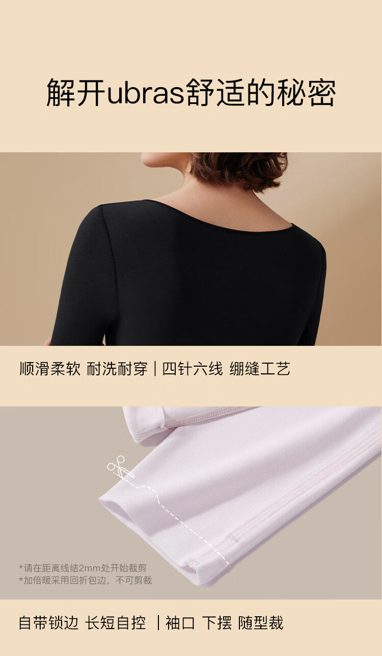 ubras新款加厚柔暖肌底衣套装羽绒化保暖内衣女秋衣秋裤加倍暖-燕麦奶M