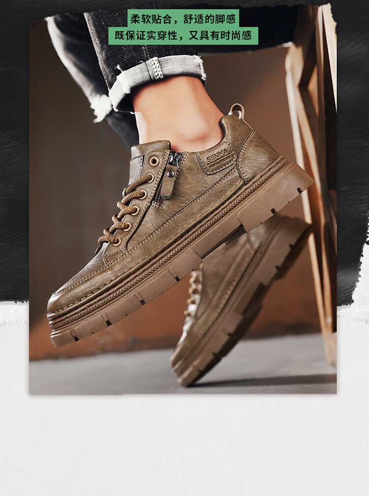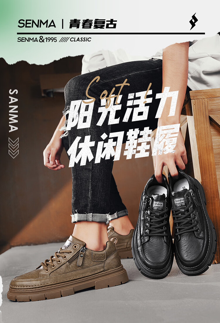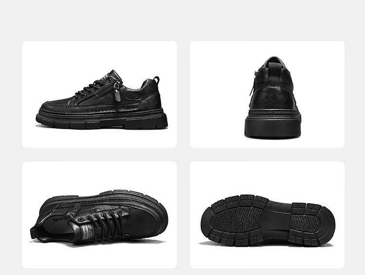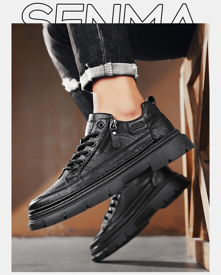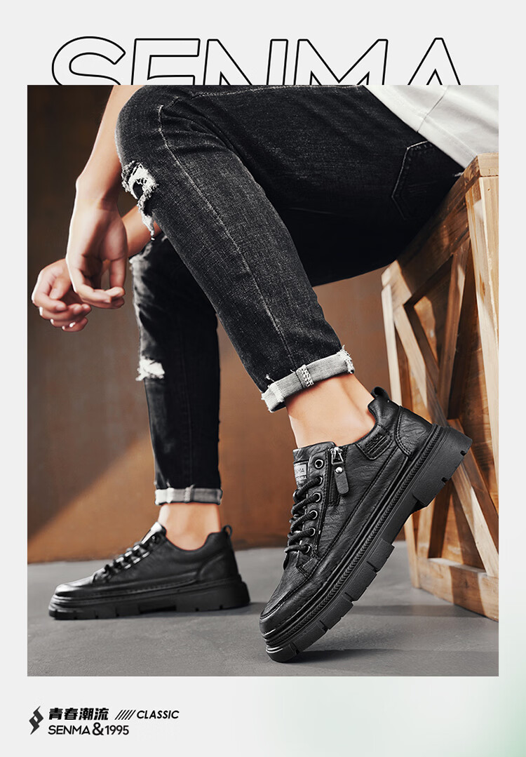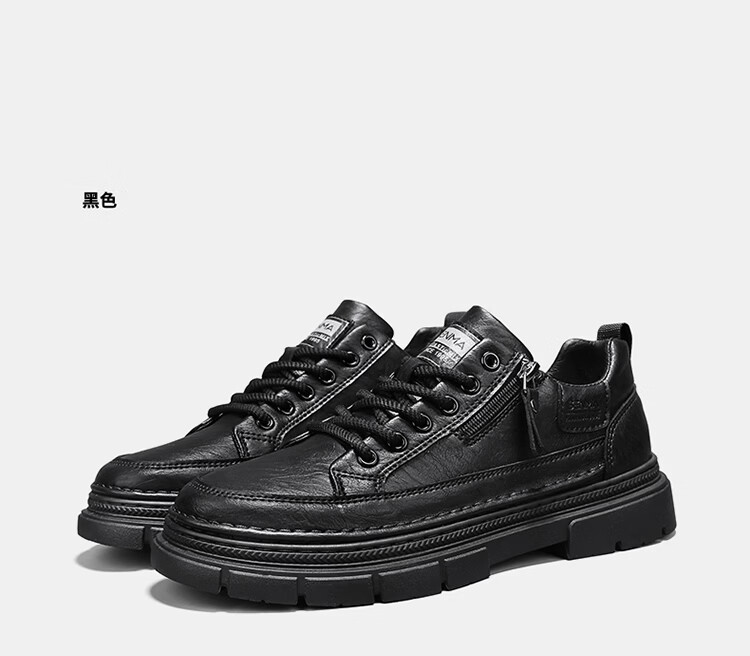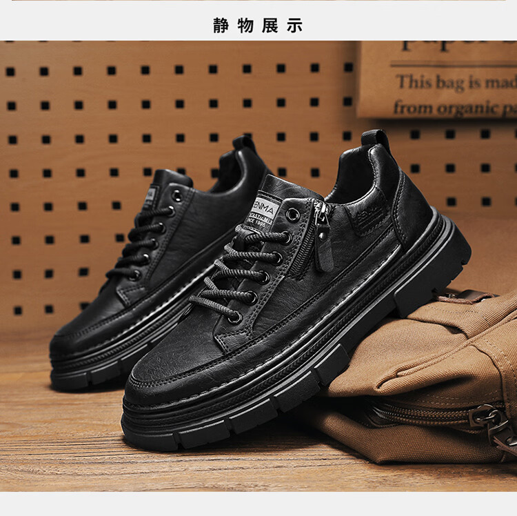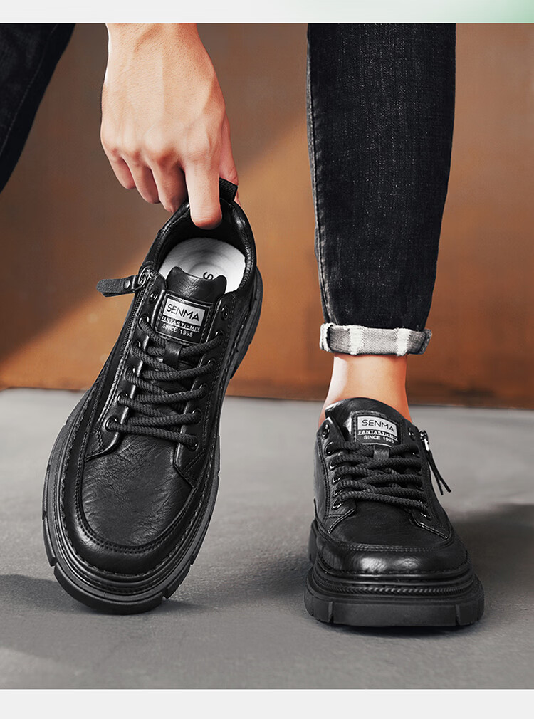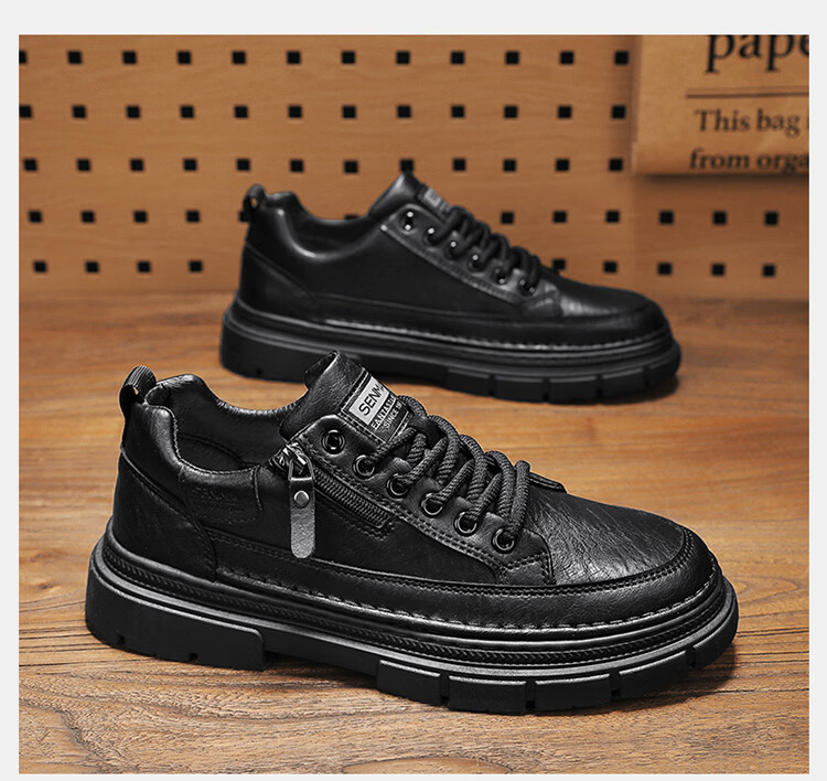 森馬男鞋2026新款春季男士运动休闲板鞋百搭防水软底黑色真皮上班潮鞋 黑色【基础款】 39 标准码数/现货秒发