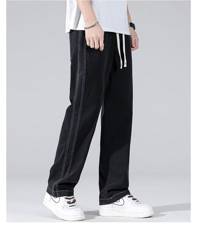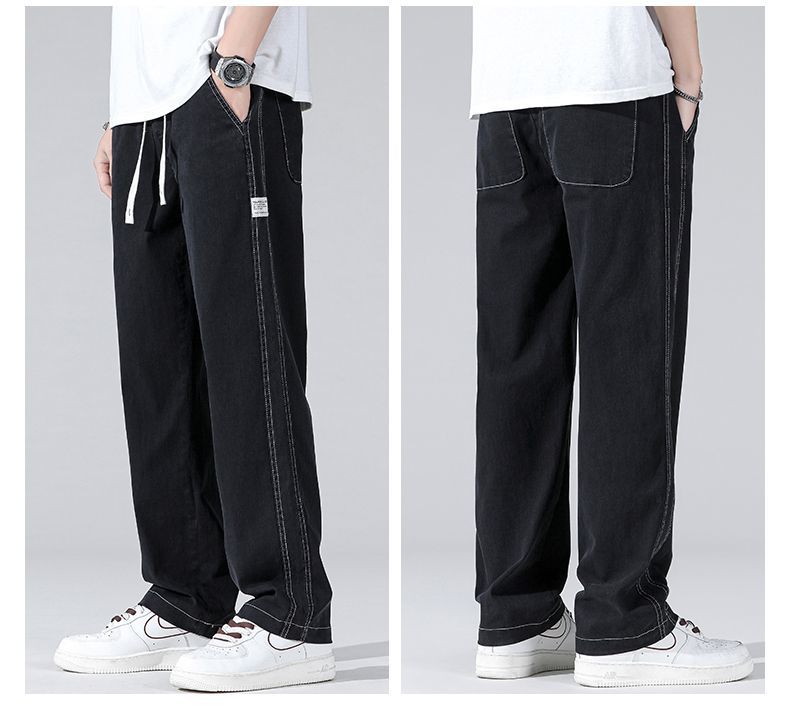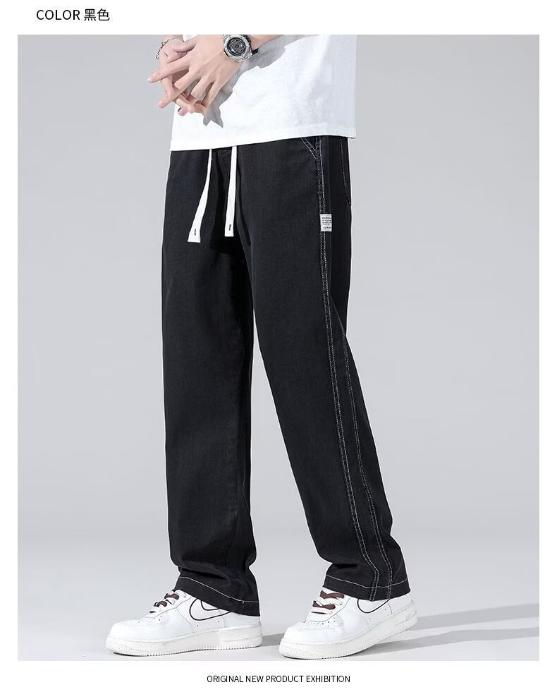 真维斯(Jeanswest)真维斯牛仔裤男士夏季潮牌直筒天丝阔腿裤薄款百搭宽松休闲长裤子 黑色 M 【建议体重90-115】