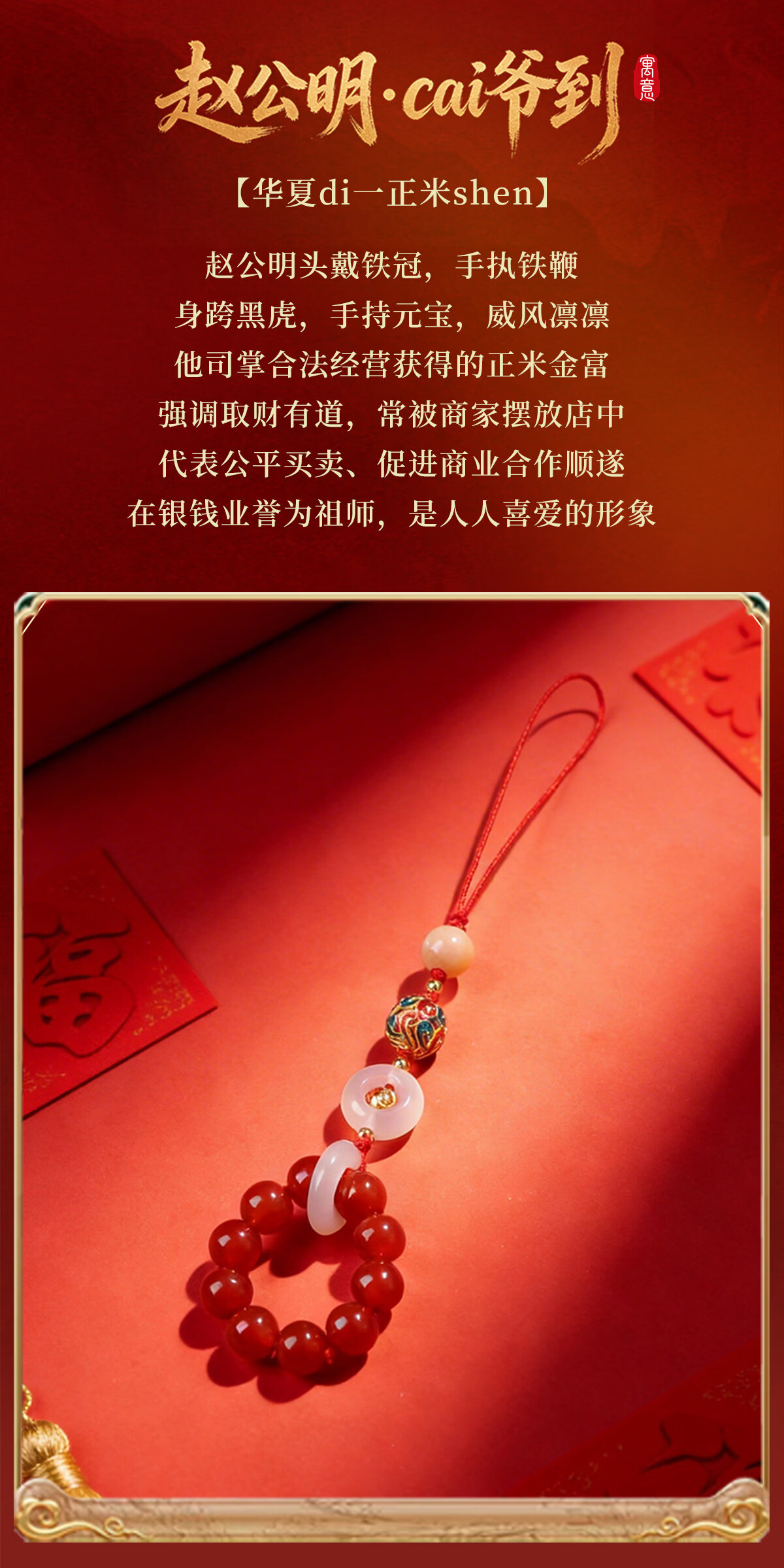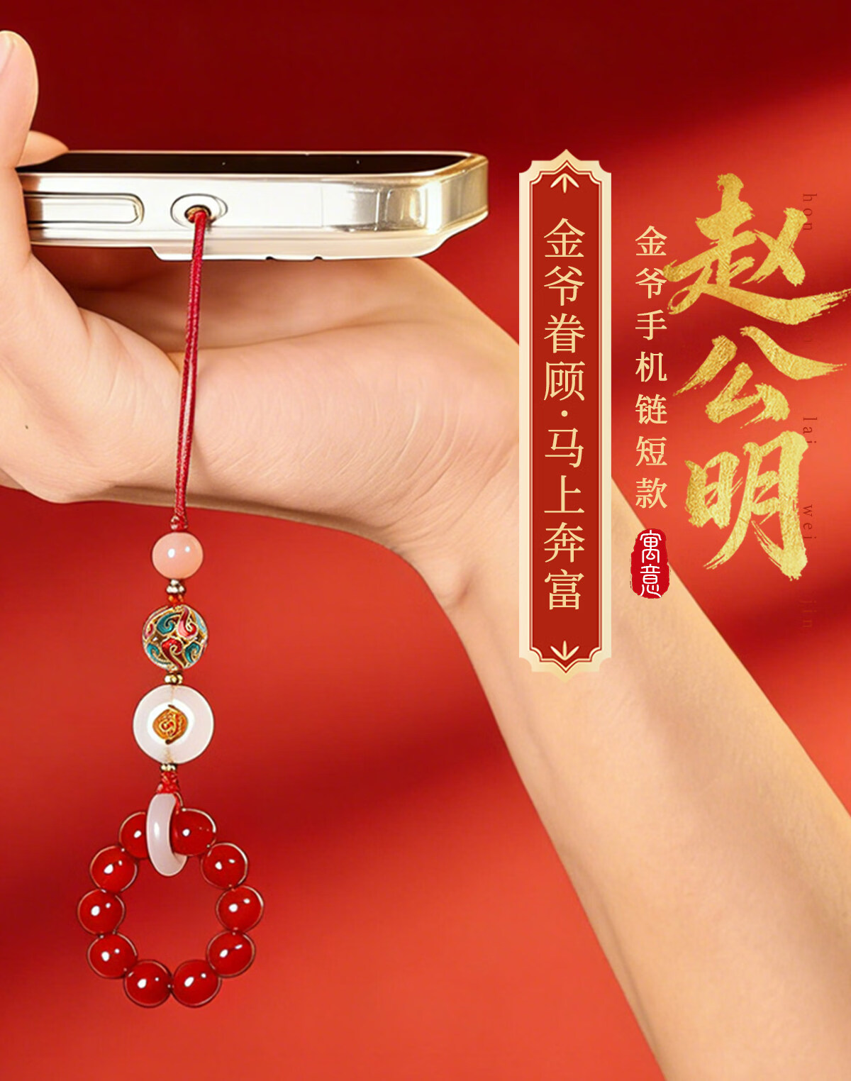 灵机生活馆麦玲玲代言2026马年赵公明招财手机链财神相机防丢挂饰生日礼物 【招财】赵公明金爷手机链【短款】