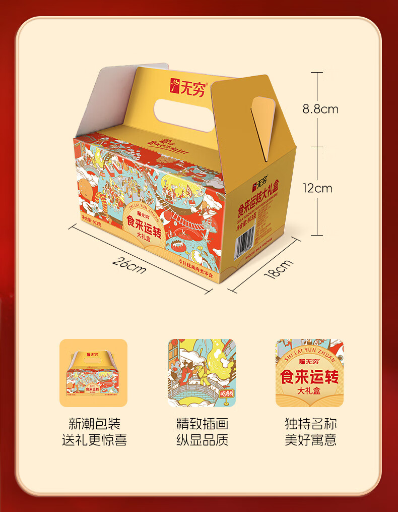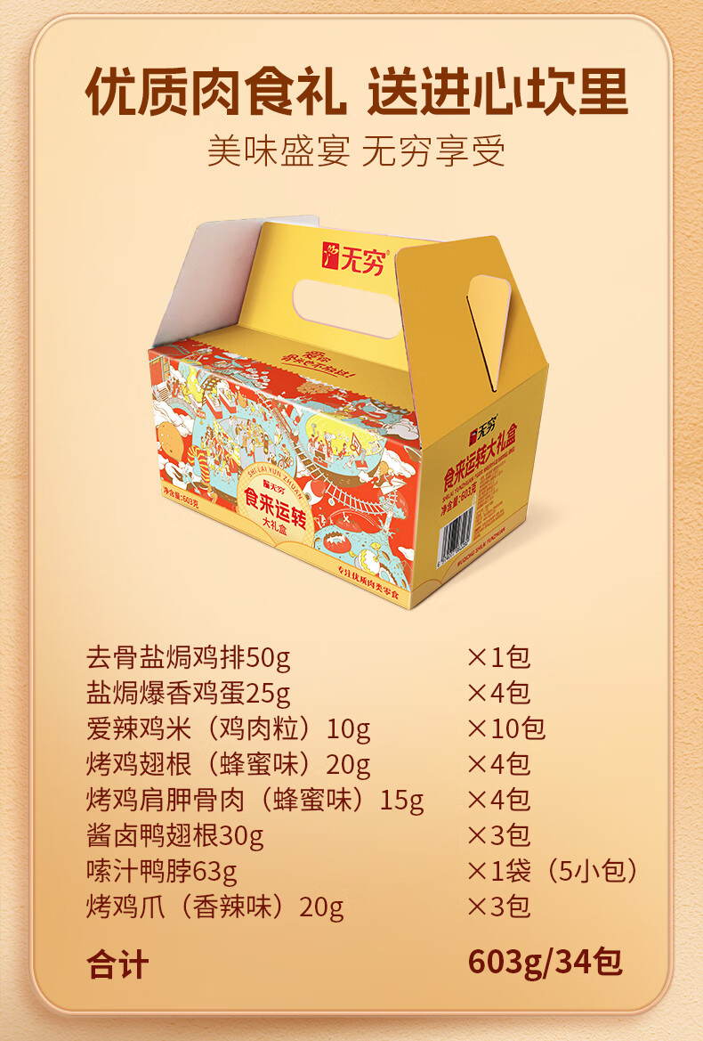 无穷食来运转大礼包年货节日送礼即食蛋肉零食送女友零食大礼盒603g