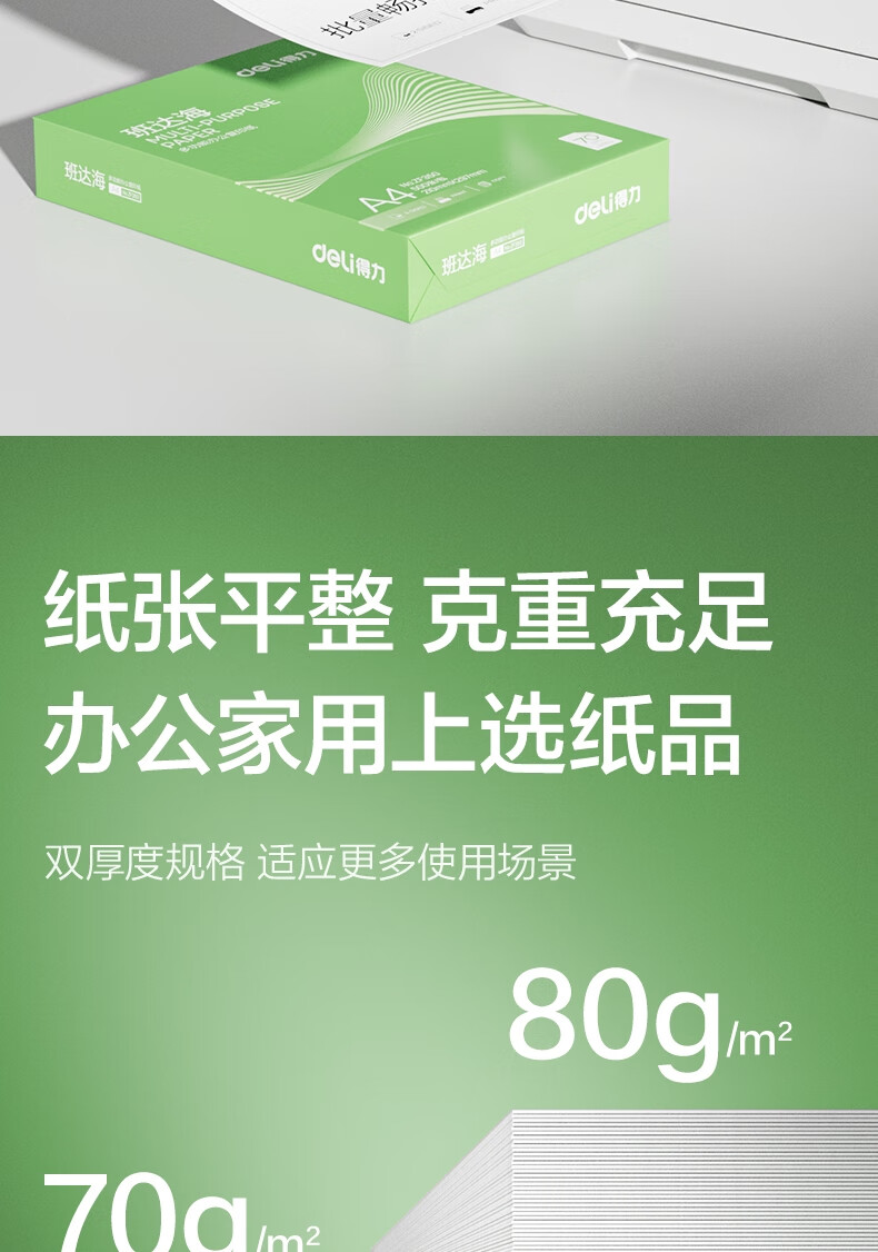 得力(deli)班达海A4打印纸 80g500张*5包一箱 加厚双面复印纸 高性价比草稿纸 整箱2500张ZF362