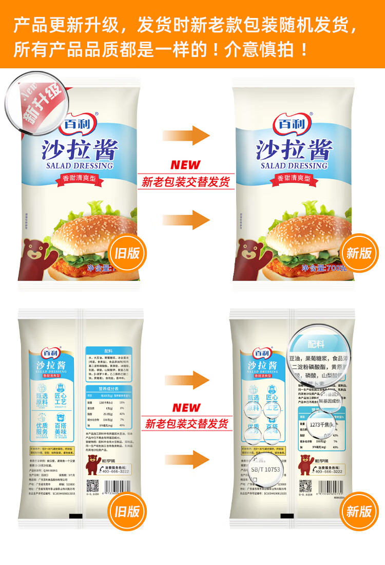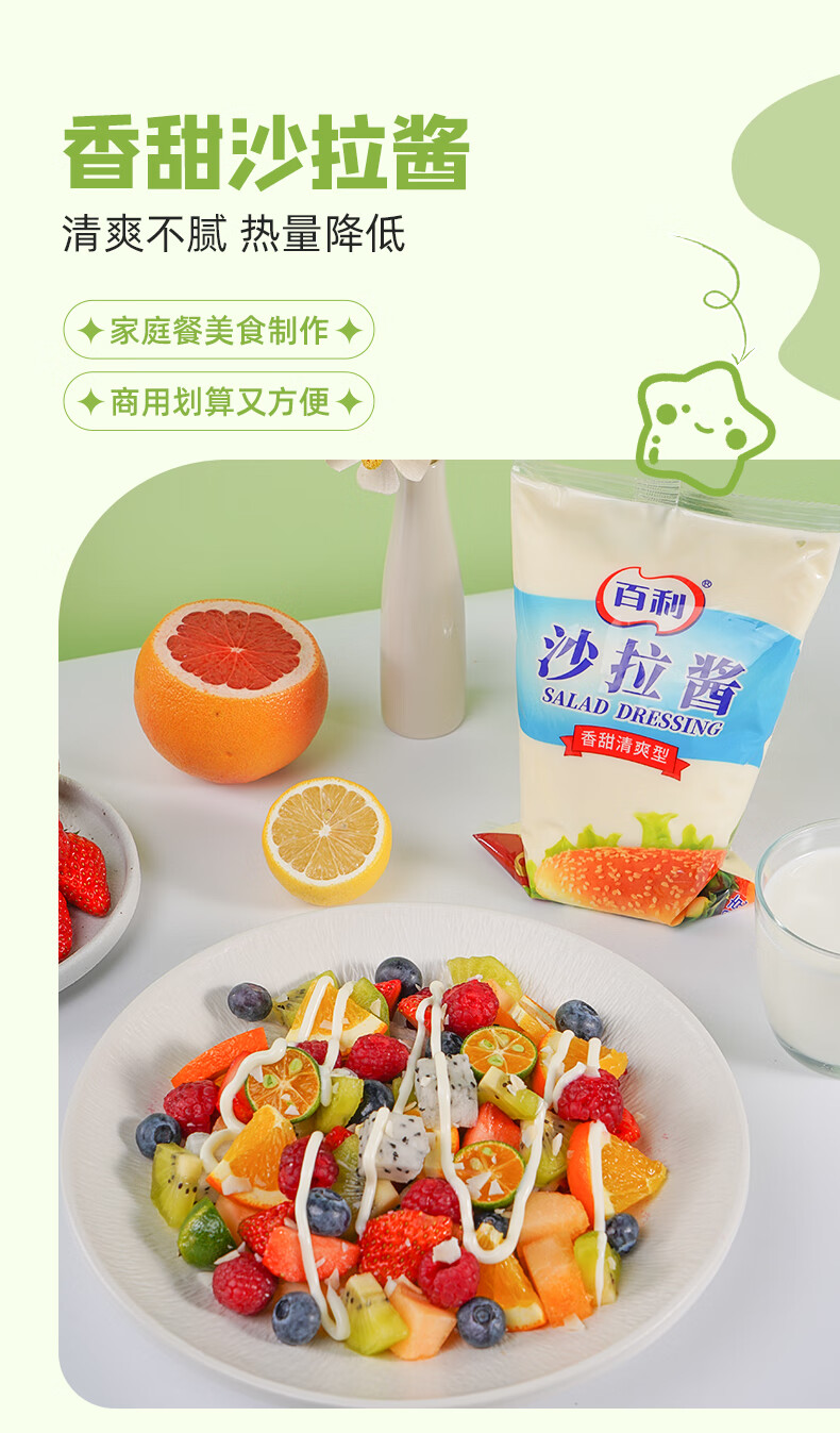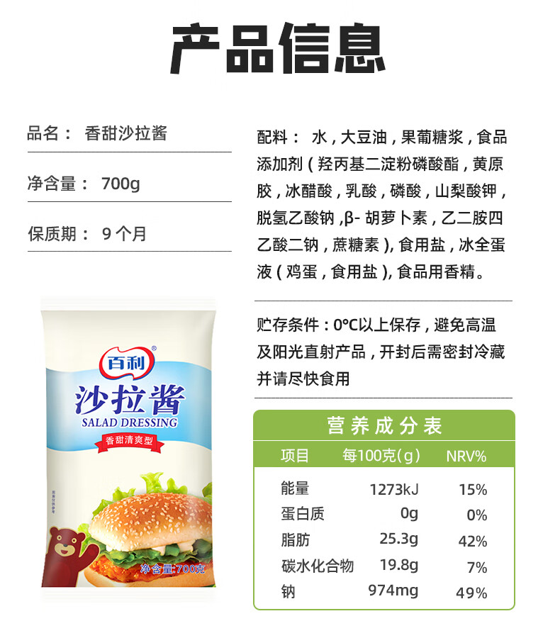 百利 沙拉酱 香甜清爽 酱体浓稠 水果蔬菜汉堡面包家用色拉酱700g