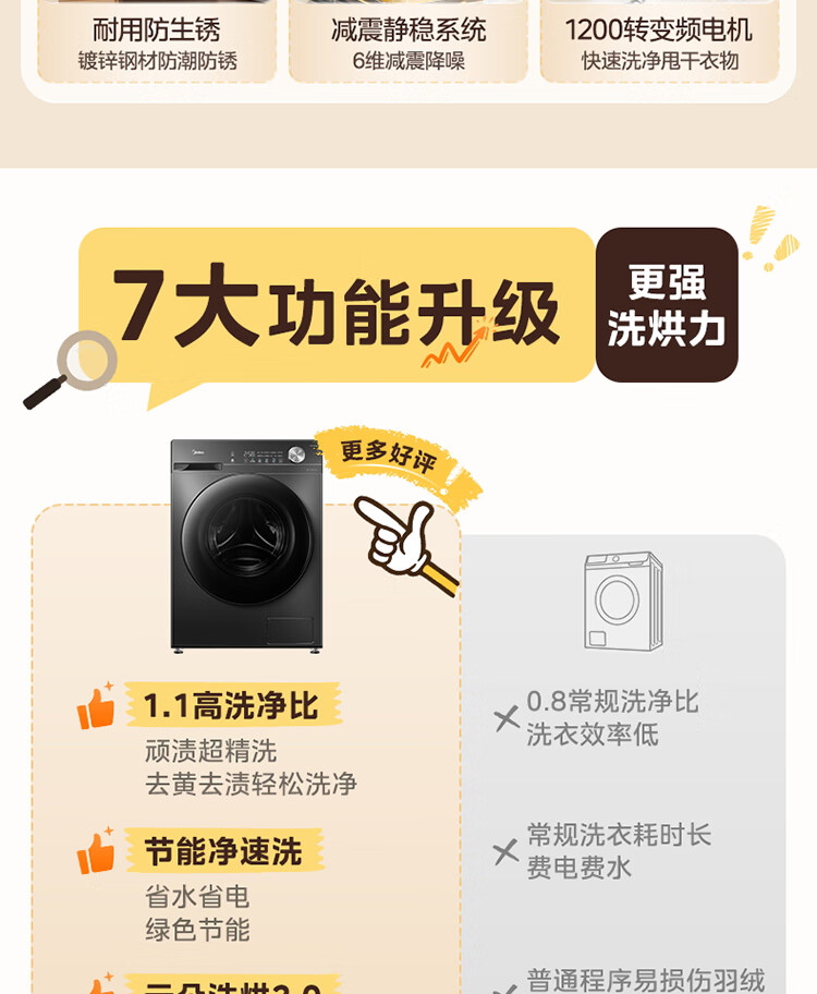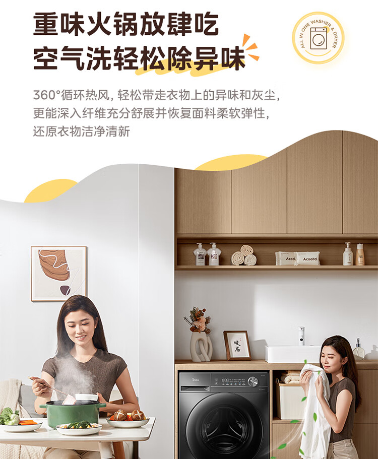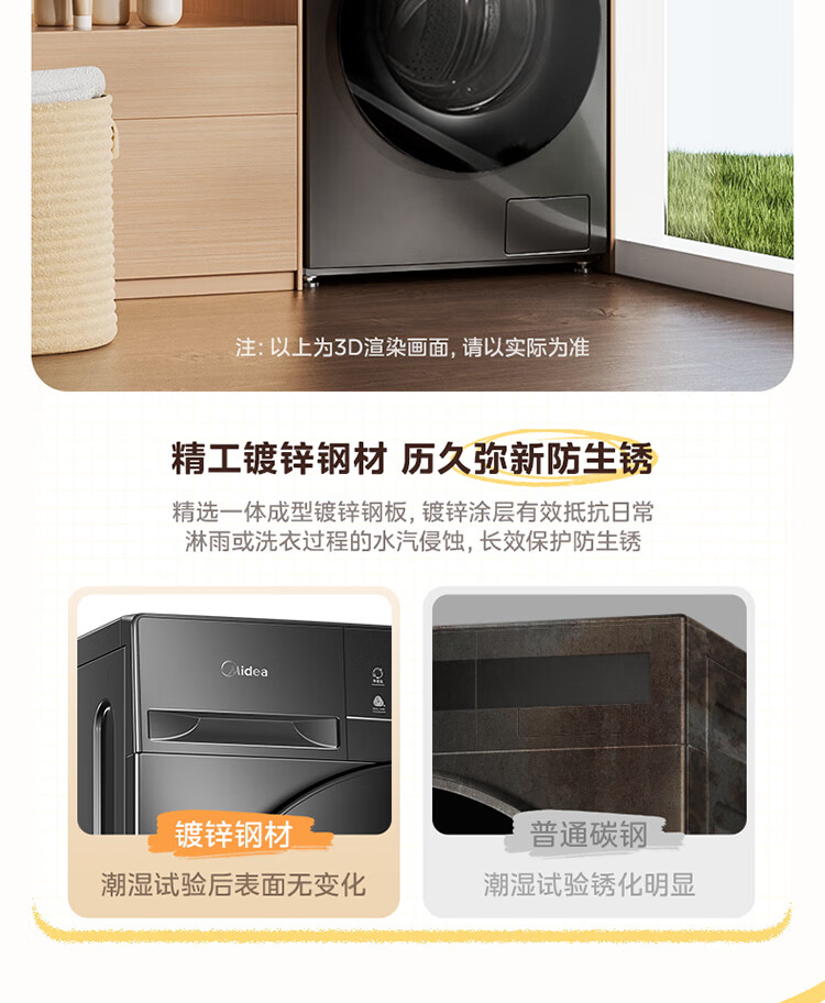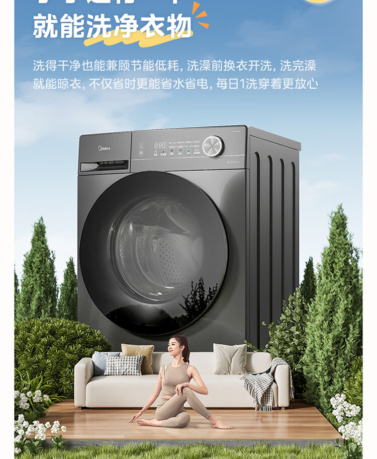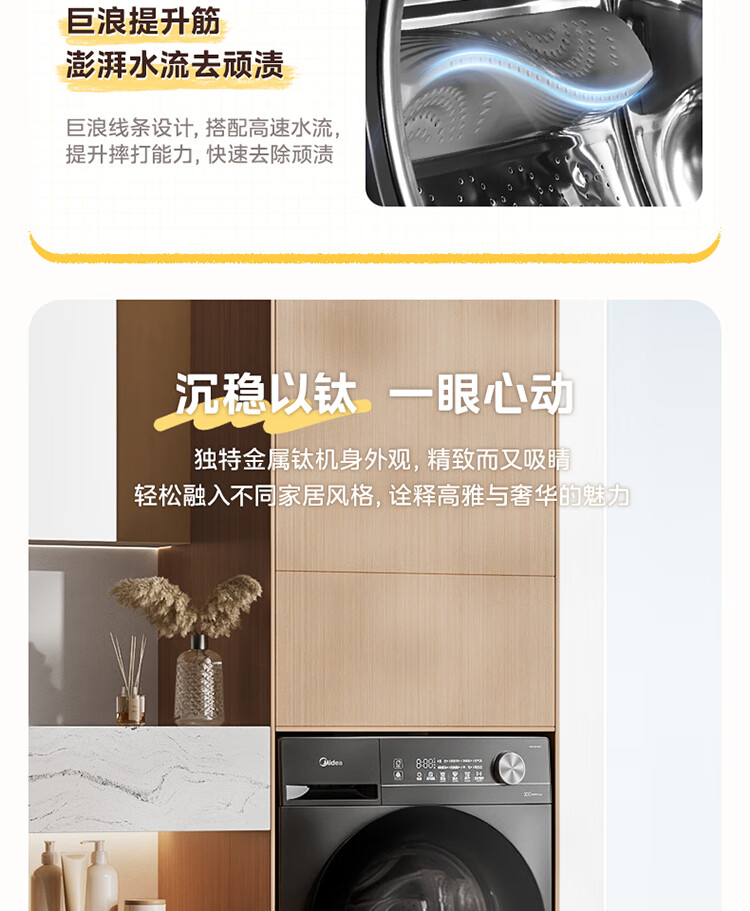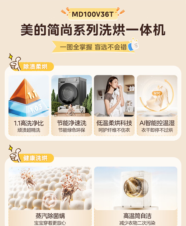 美的(Midea)滚筒洗衣机全自动家用 带烘干洗烘一体 10公斤家用超薄 MD100V36T 以旧换新 国家补贴 一级能效