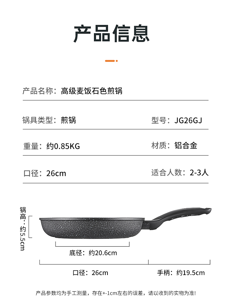 炊大皇平底锅煎锅麦饭石色不粘牛排煎蛋锅26cm磁炉通用高级JG26GJ