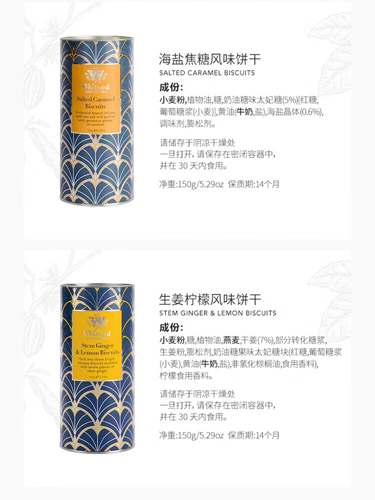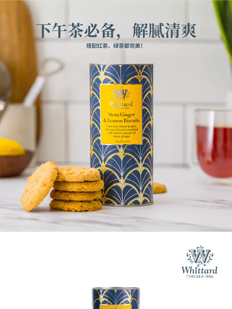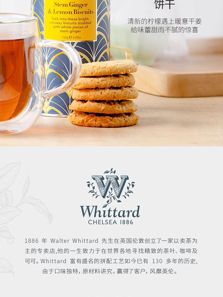 WHITTARD英国进口发现茶系列生姜柠檬夹心饼干150g零食甜点