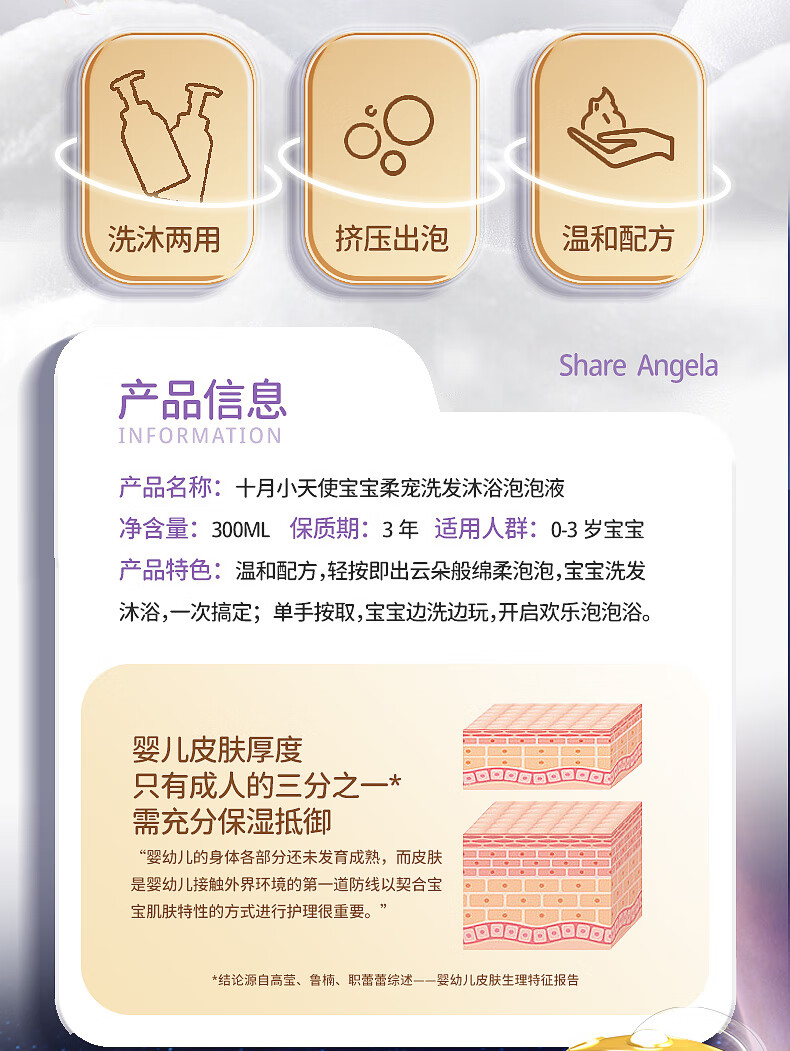 十月天使宝宝柔宠洗发沐浴泡泡婴幼儿洗发沐浴泡泡二合一儿童沐浴露洗发水