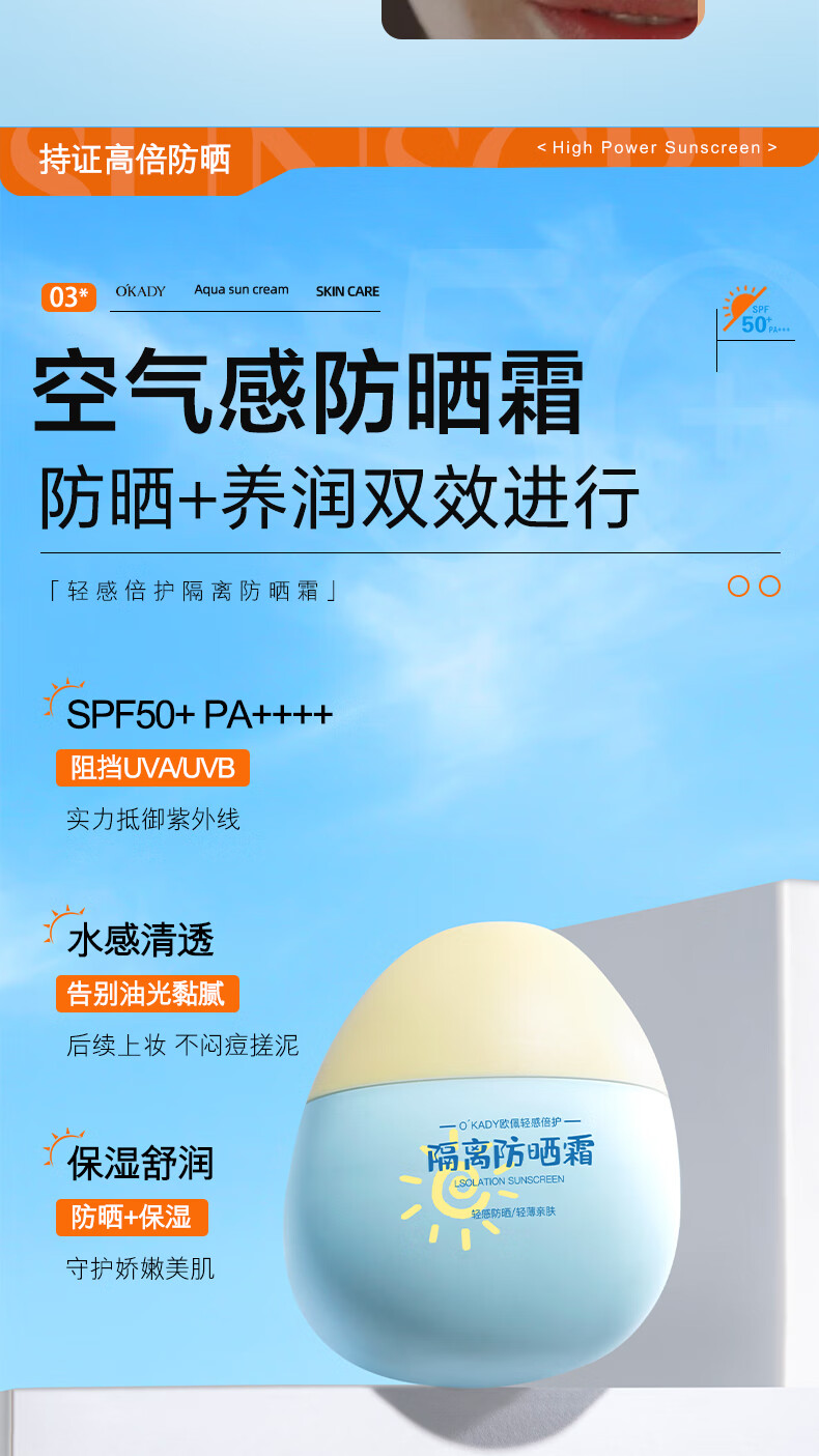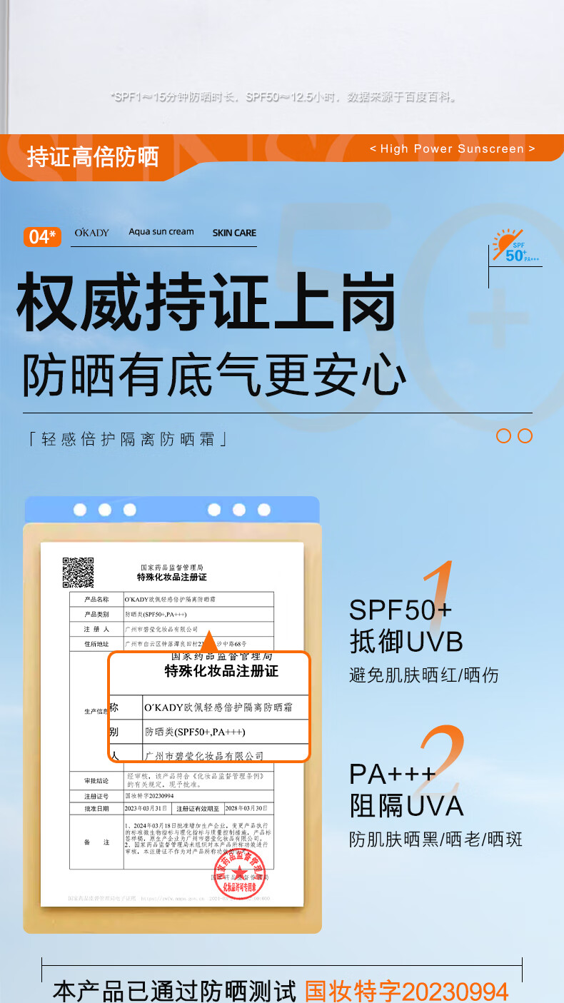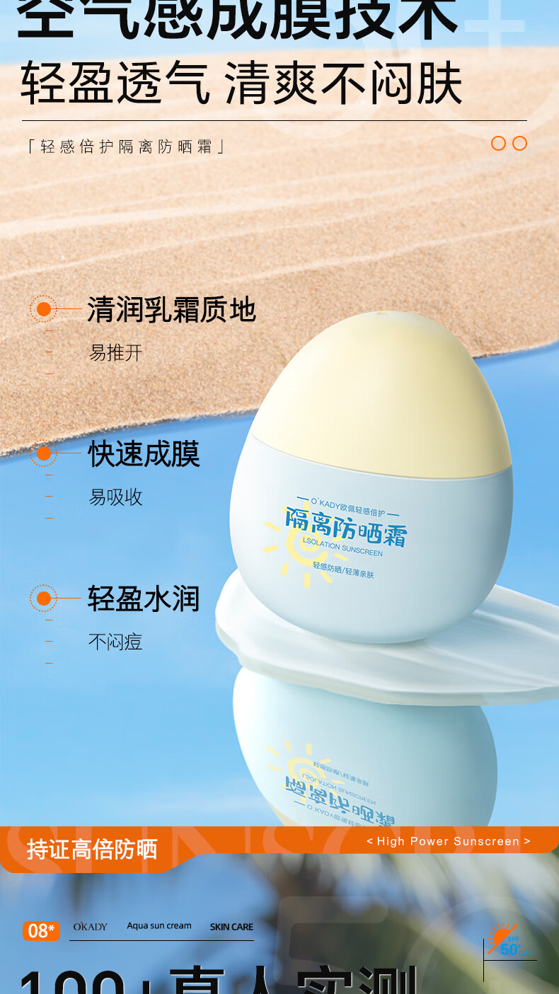 欧佩O'KADY【柳岩推荐】SPF50+++高倍防晒霜男女美白隔离霜遮瑕户外防水防汗 小太阳防晒霜 40g/支