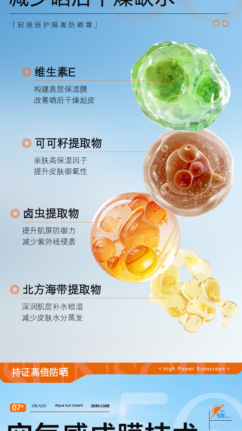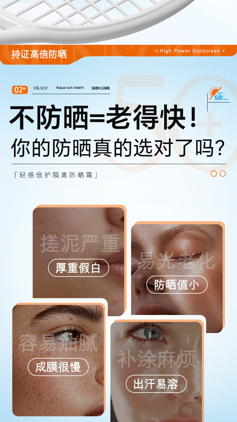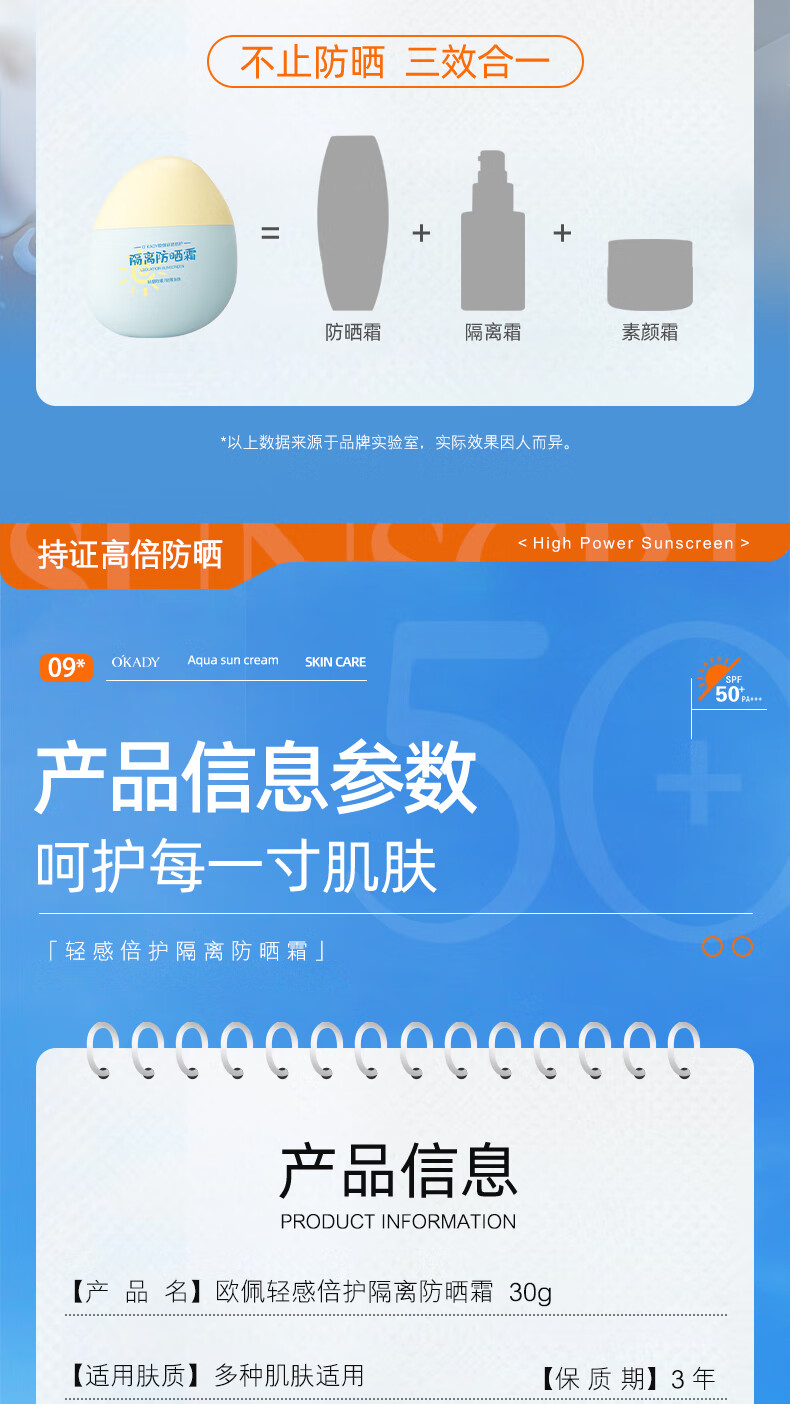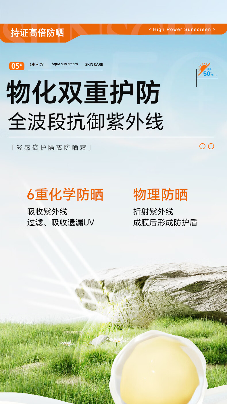 欧佩O'KADY【柳岩推荐】SPF50+++高倍防晒霜男女美白隔离霜遮瑕户外防水防汗 小太阳防晒霜 40g/支