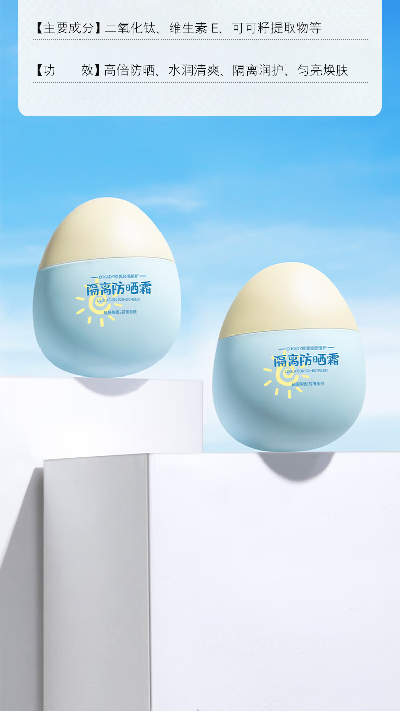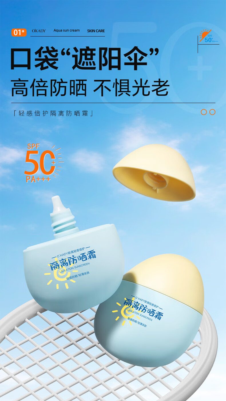 欧佩O'KADYSPF50+高倍防晒霜户外军训防水防汗防紫外线男女美白隔离霜遮瑕 小蛋蛋防晒霜 30g/支