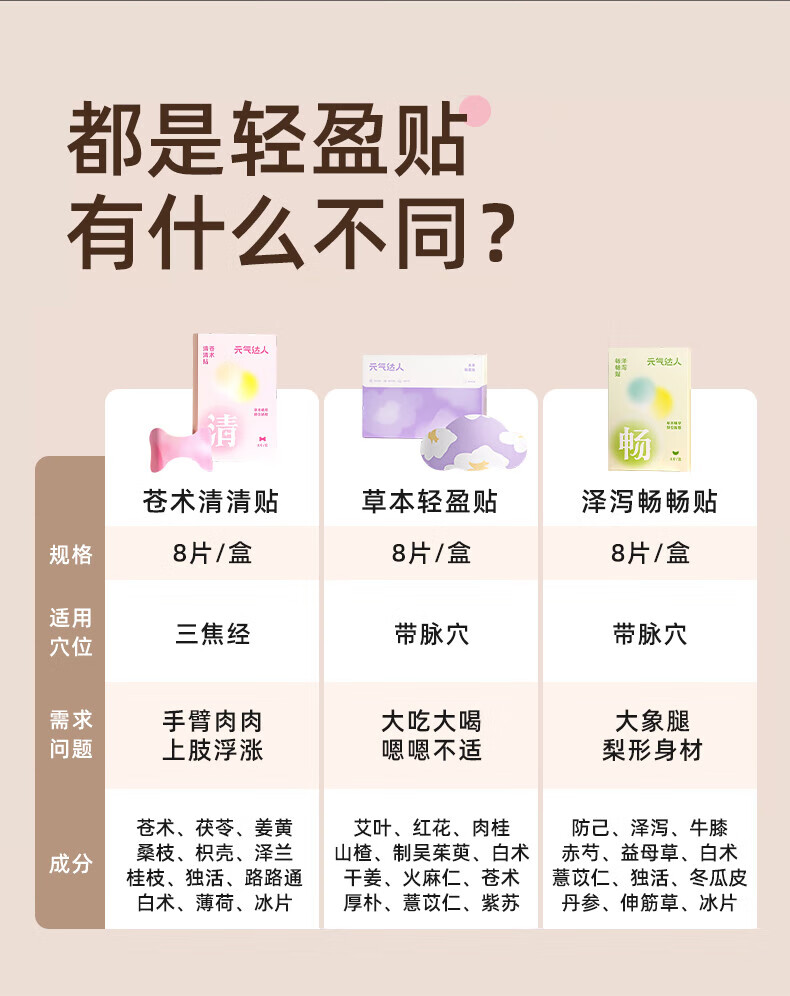 元气达人官方正品草本轻盈贴肚脐贴通下焦委中穴泽泻防己穴位热敷贴 艾灸贴三焦养出漫画腿8贴*1盒