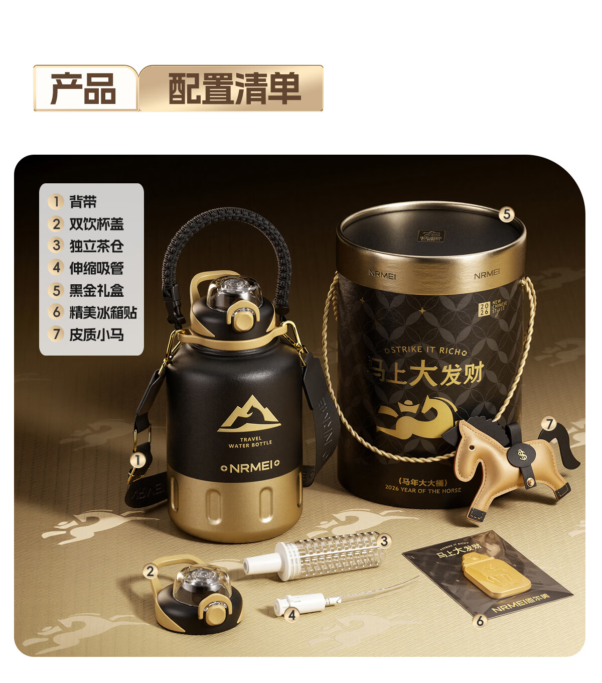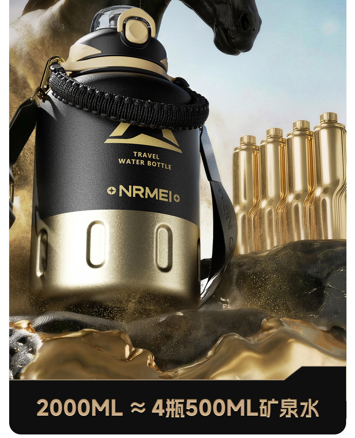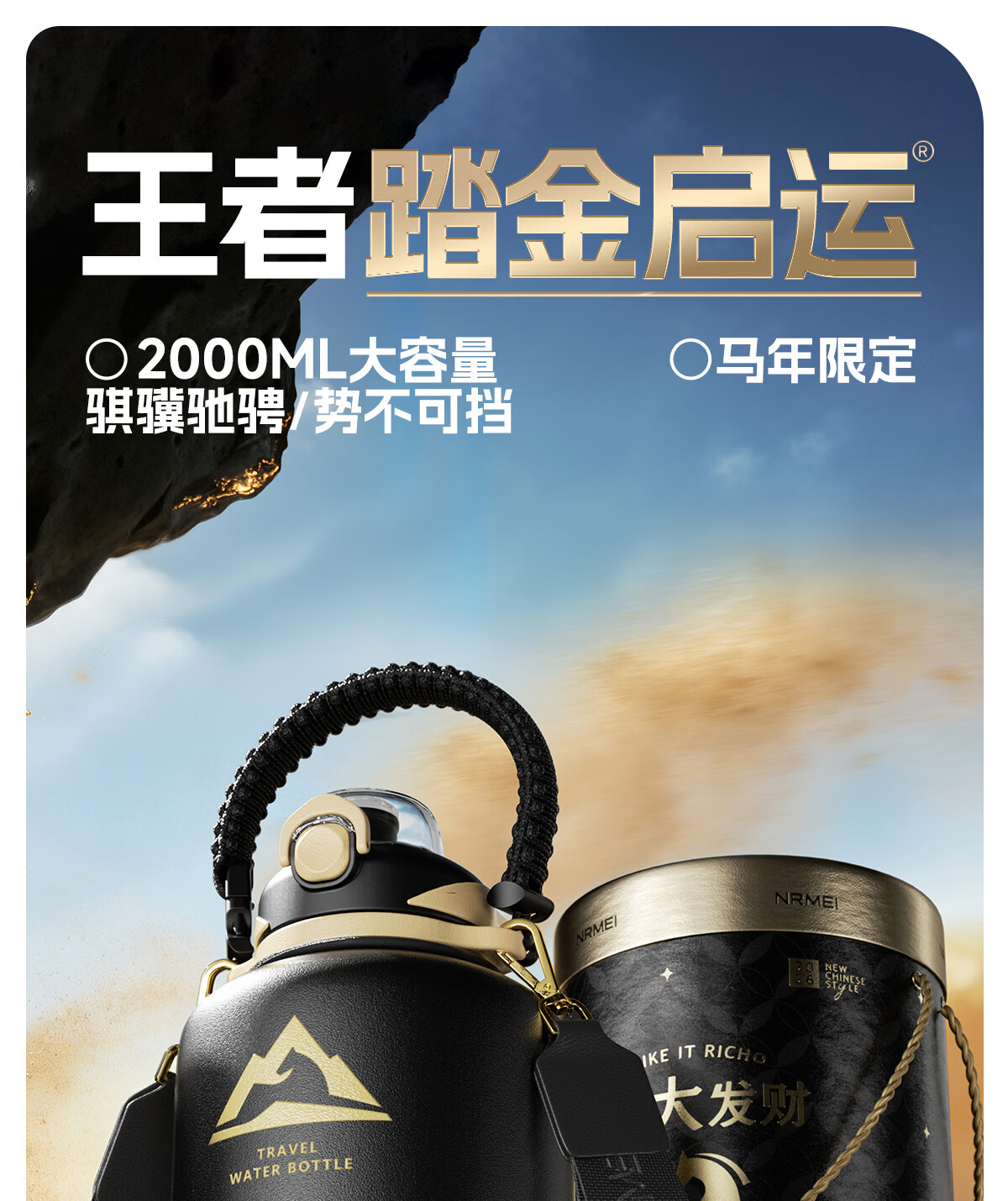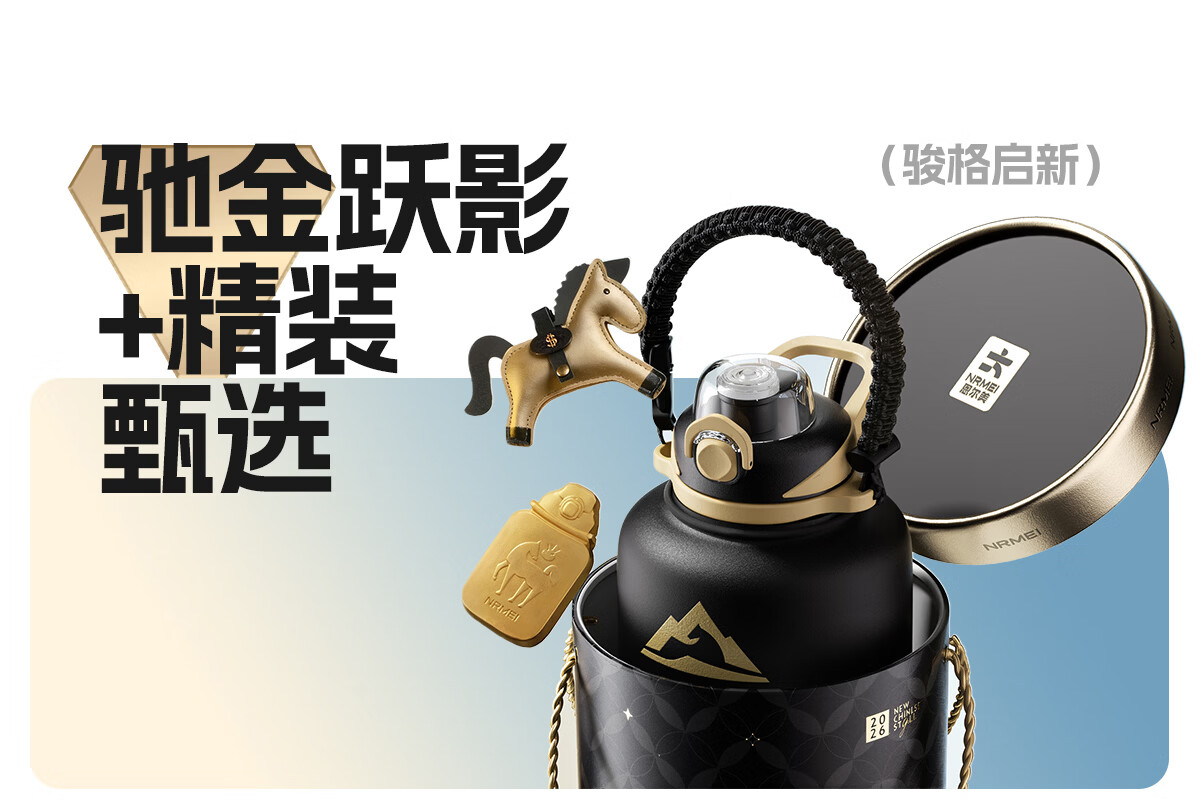 恩尔美(nRMEi)马年限定大大桶保温杯大容量2026新款保温水壶节日送礼新年礼物盒 【马年大发财】驰金跃影2000ml【送皮革小马/冰箱贴】