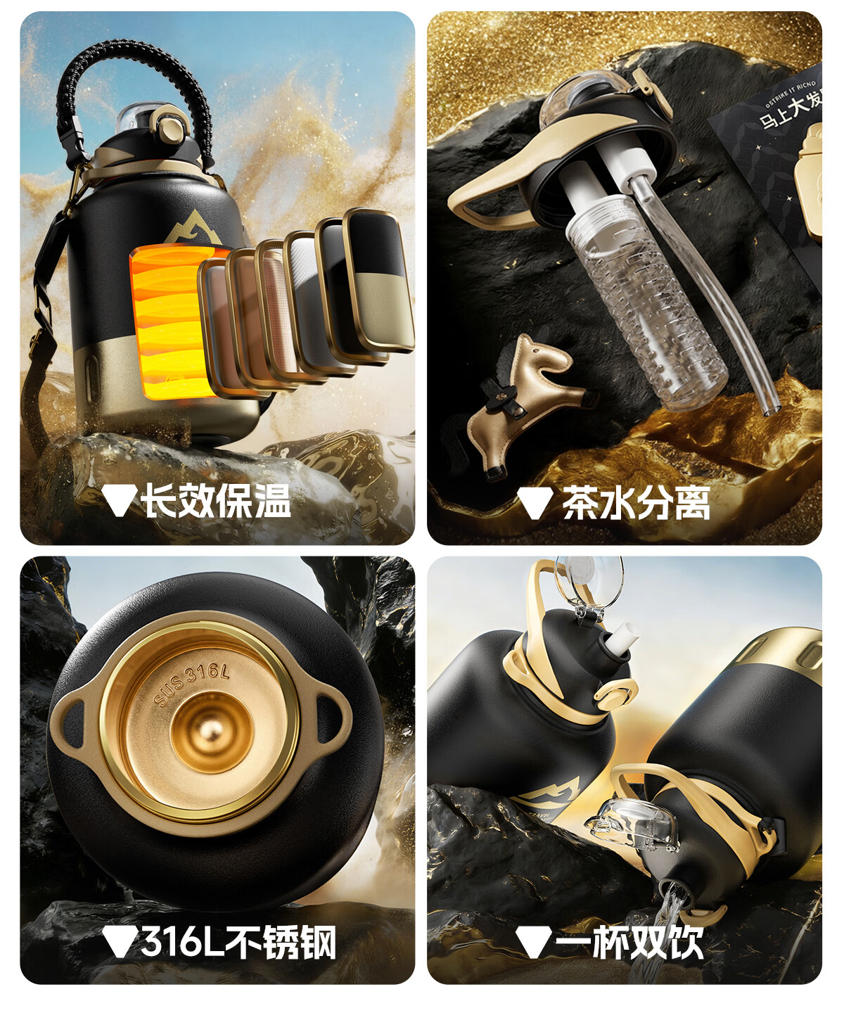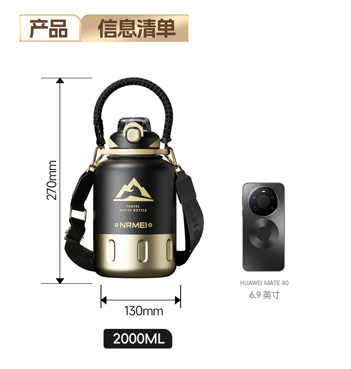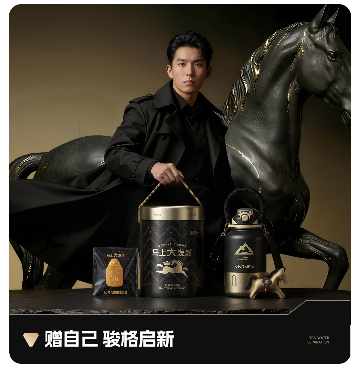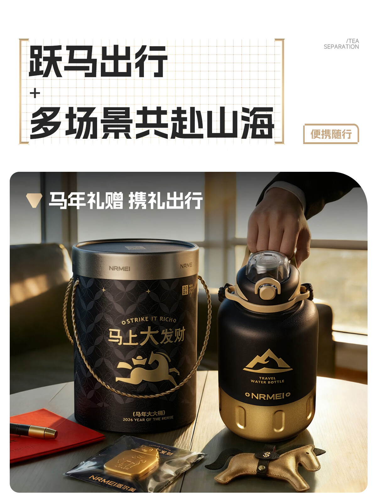 恩尔美(nRMEi)马年限定大大桶保温杯大容量2026新款保温水壶节日送礼新年礼物盒 【马年大发财】驰金跃影2000ml【送皮革小马/冰箱贴】