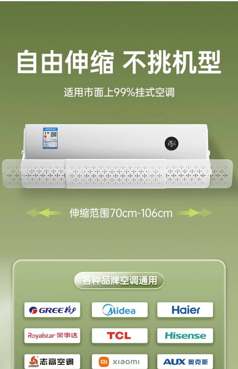 好又帮格力空调挡风板防直吹冷气出口遮风板导风板防尘罩壁挂式通用挡板 前挂款|挂机通用易安装