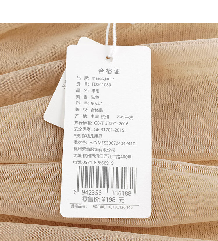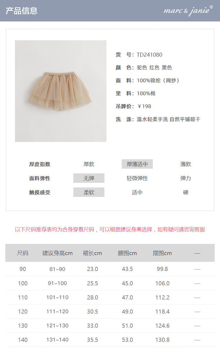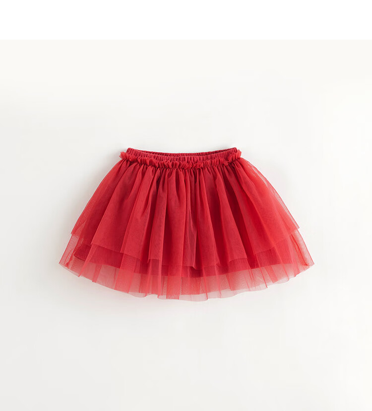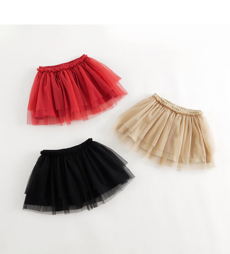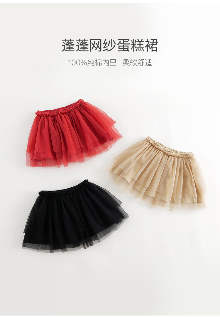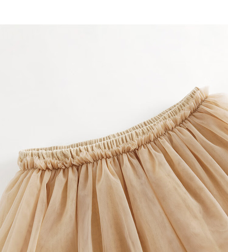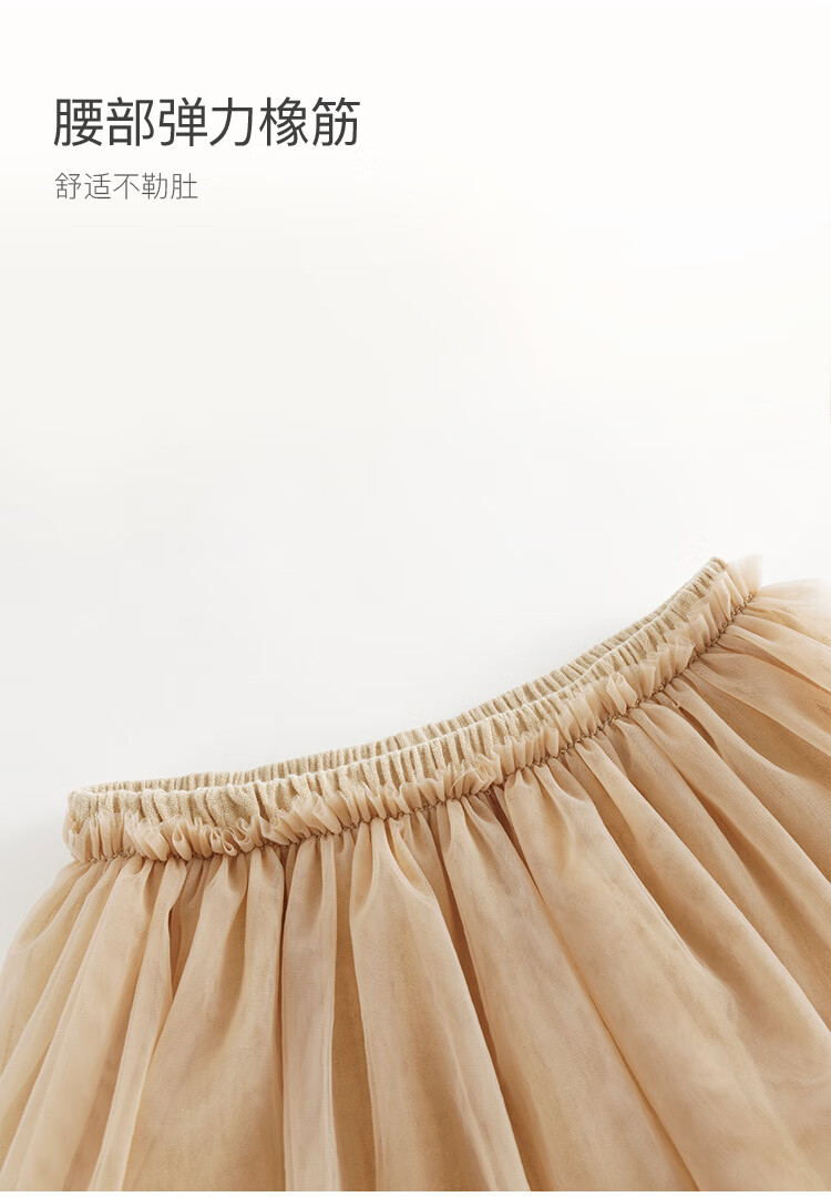马克珍妮女童网纱短裙半身裙蛋糕裙儿童新年红裙子秋冬新款241080 驼色 100