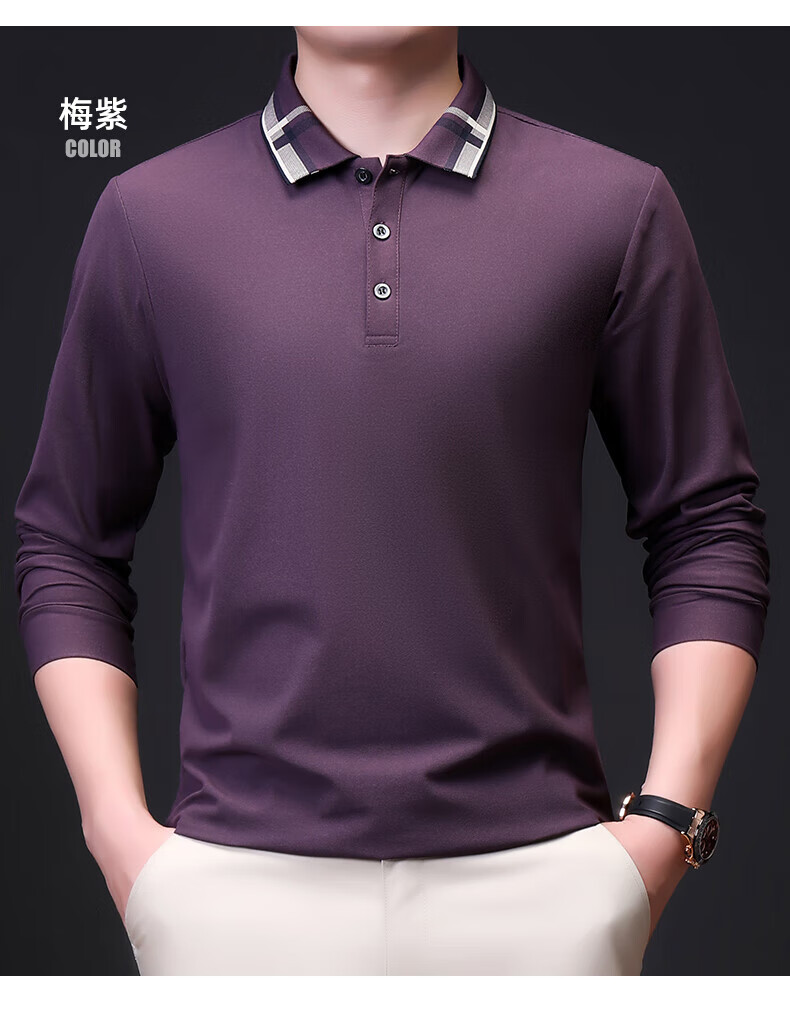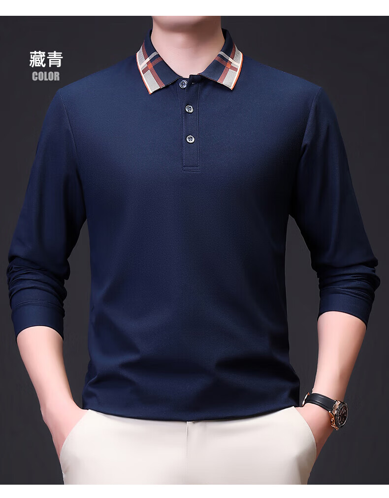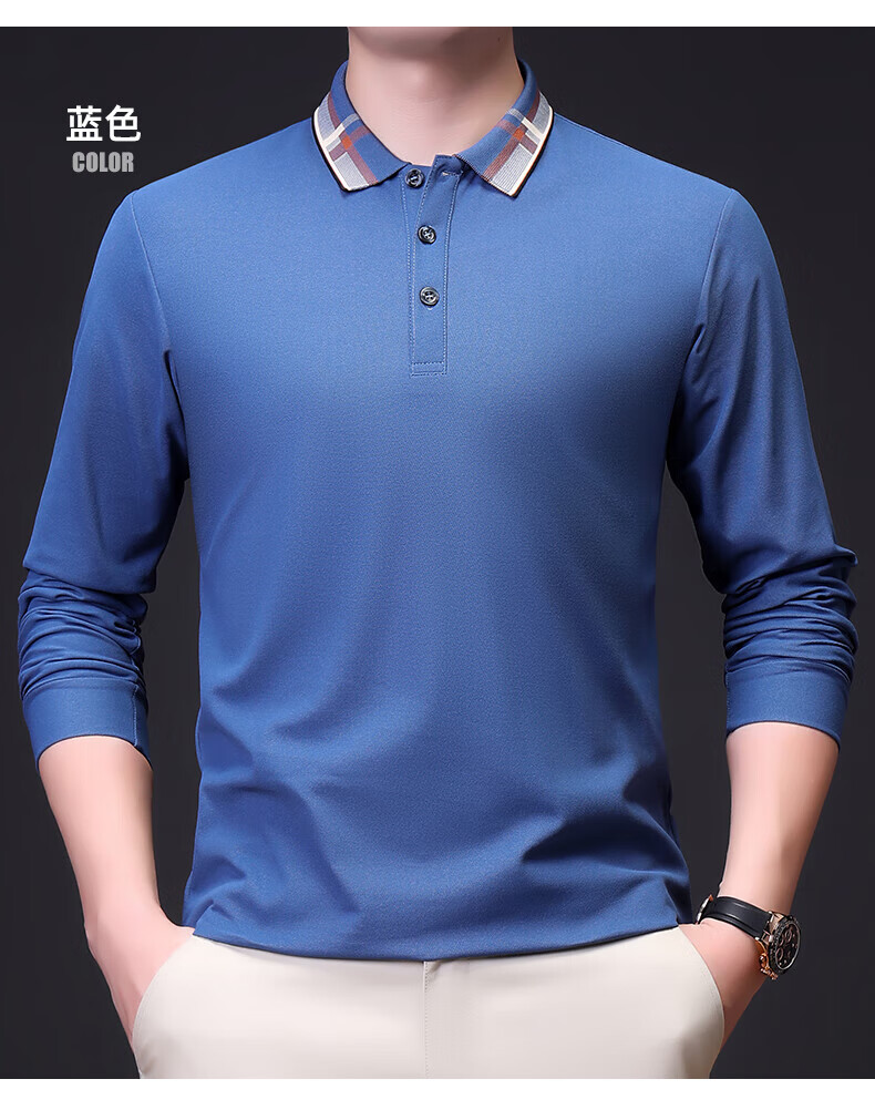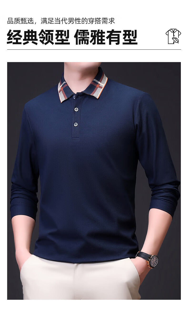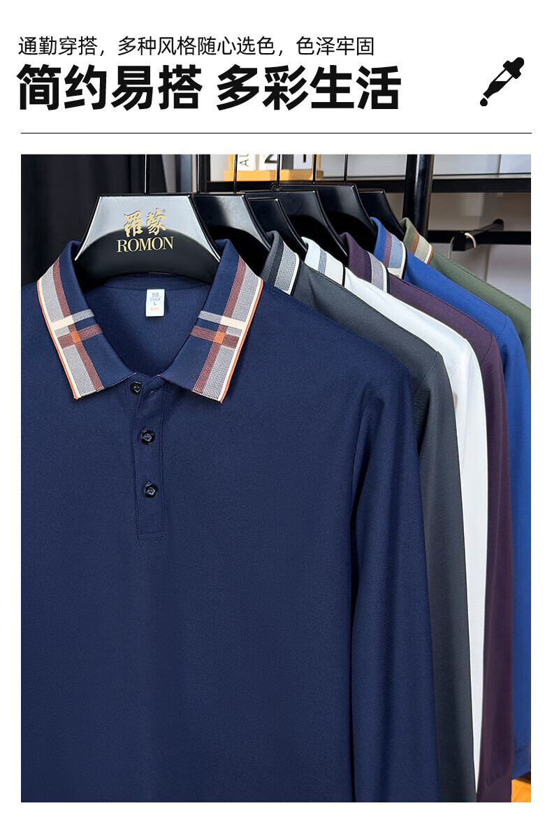 罗蒙(ROMON)男士长袖POLO衫中青年秋季新款经典商务休闲透气舒适百搭翻领T恤 蓝色 L (175) 【建议120-140斤】