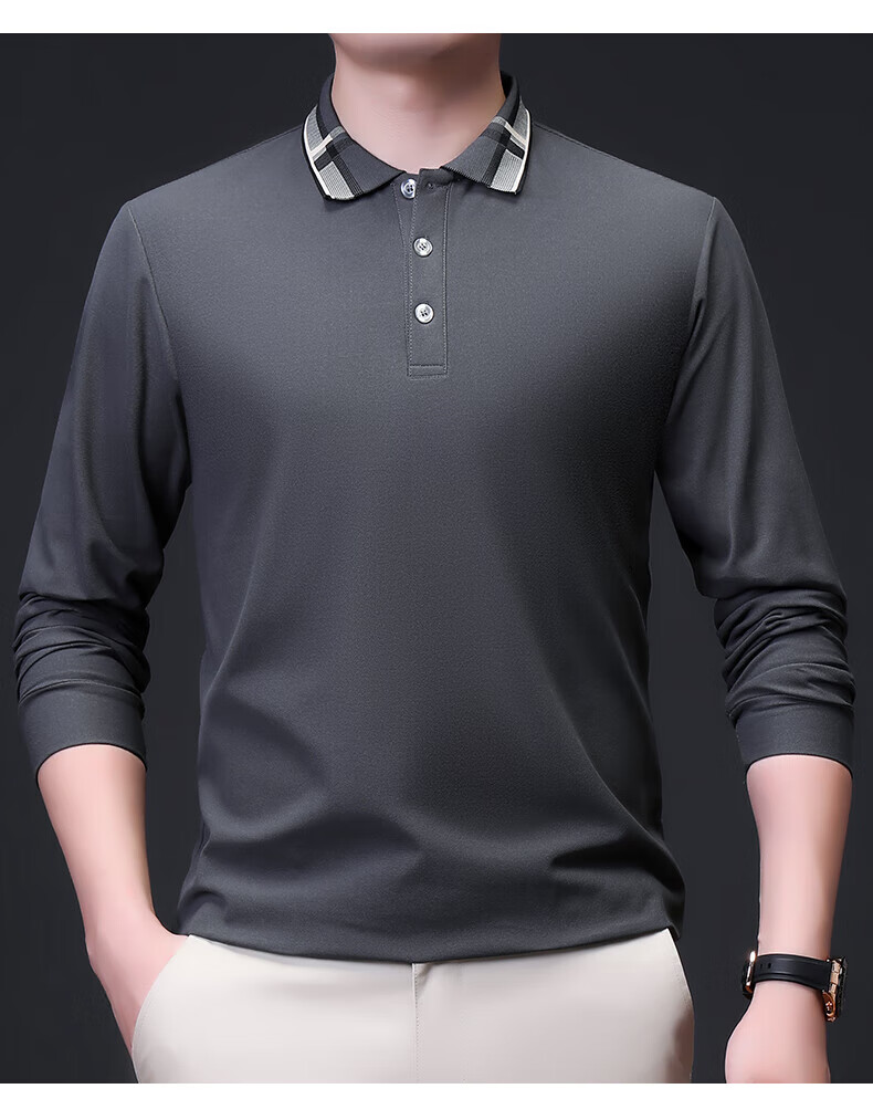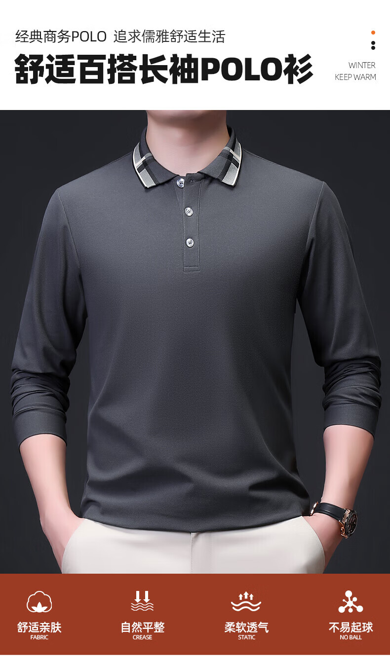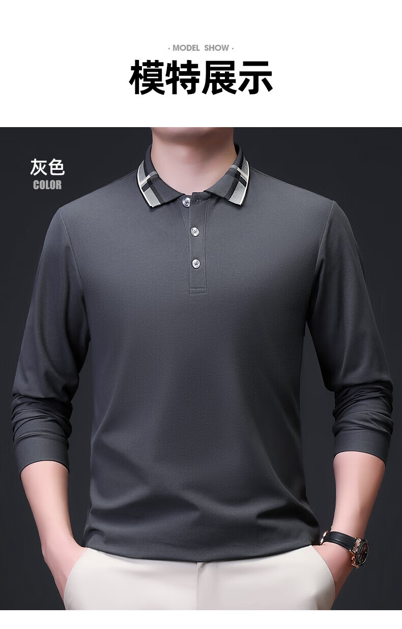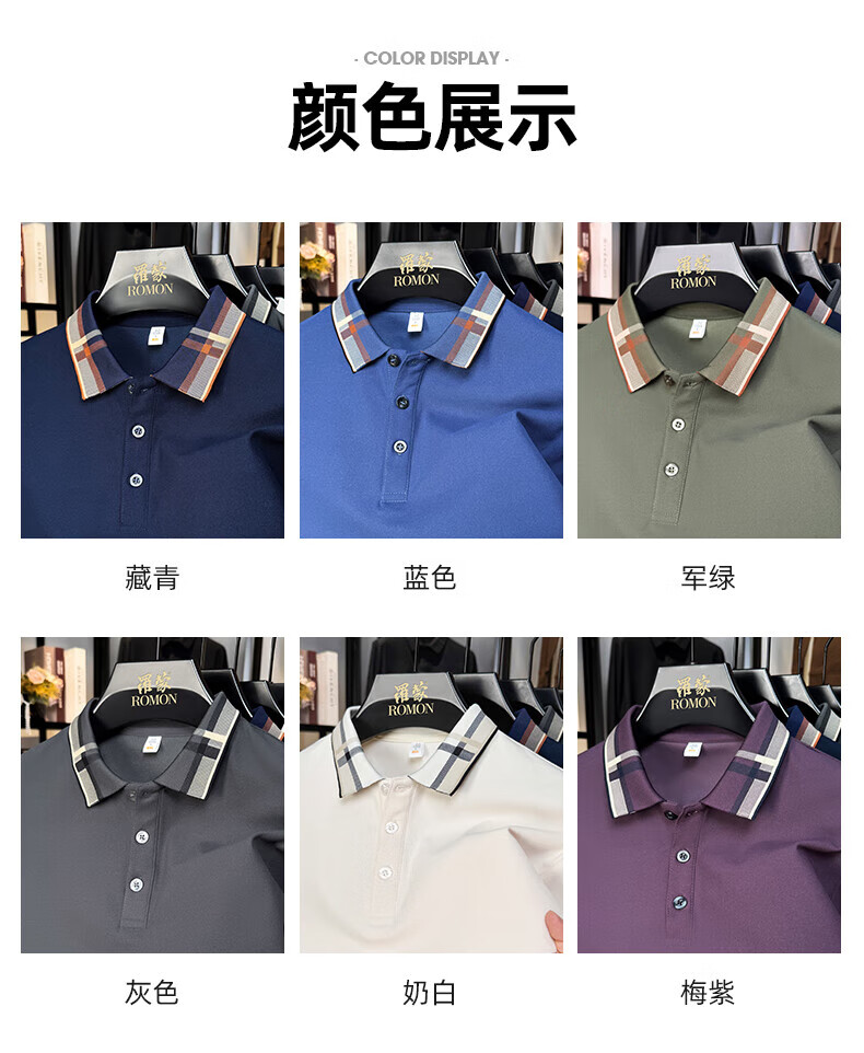 罗蒙(ROMON)男士长袖POLO衫中青年秋季新款经典商务休闲透气舒适百搭翻领T恤 蓝色 L (175) 【建议120-140斤】