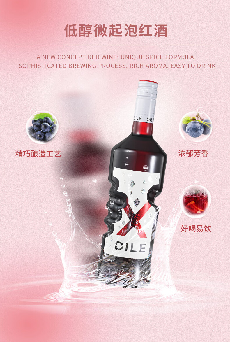 DILE帝力天使之手 低醇红起泡葡萄酒配制酒 750ml*1支 热门商品