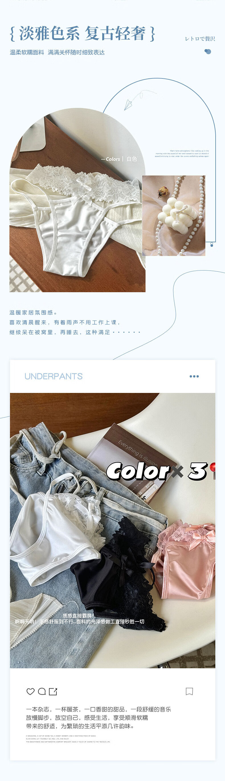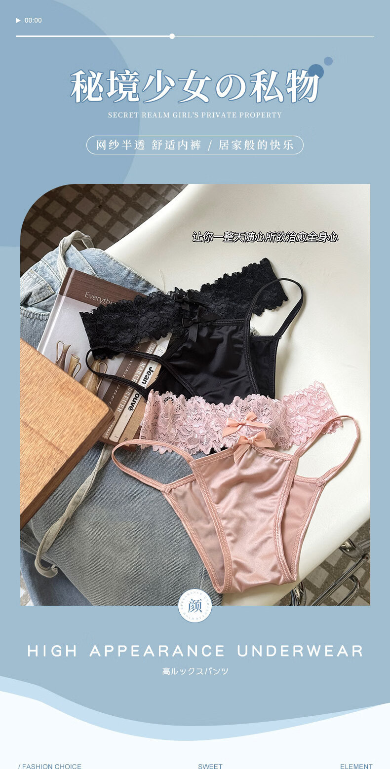 俞兆林(YUZHAOLIN)性感蕾丝纯棉裆缎面镂空少女丁字裤包臀纯欲女士低腰三角裤 NK5068【混色3条装】 均码 (80-120斤)