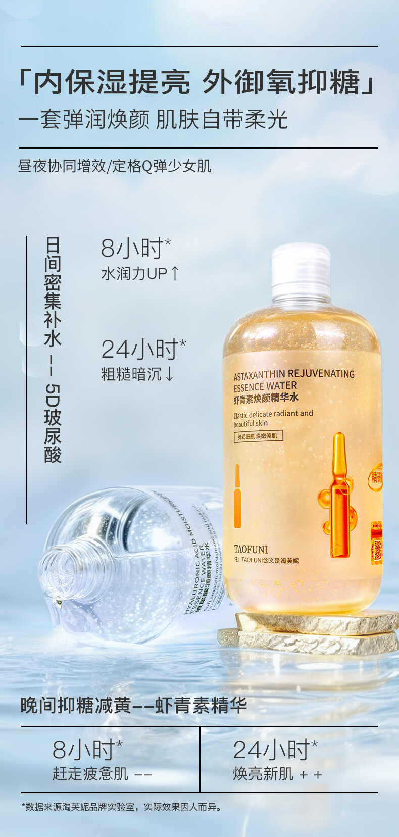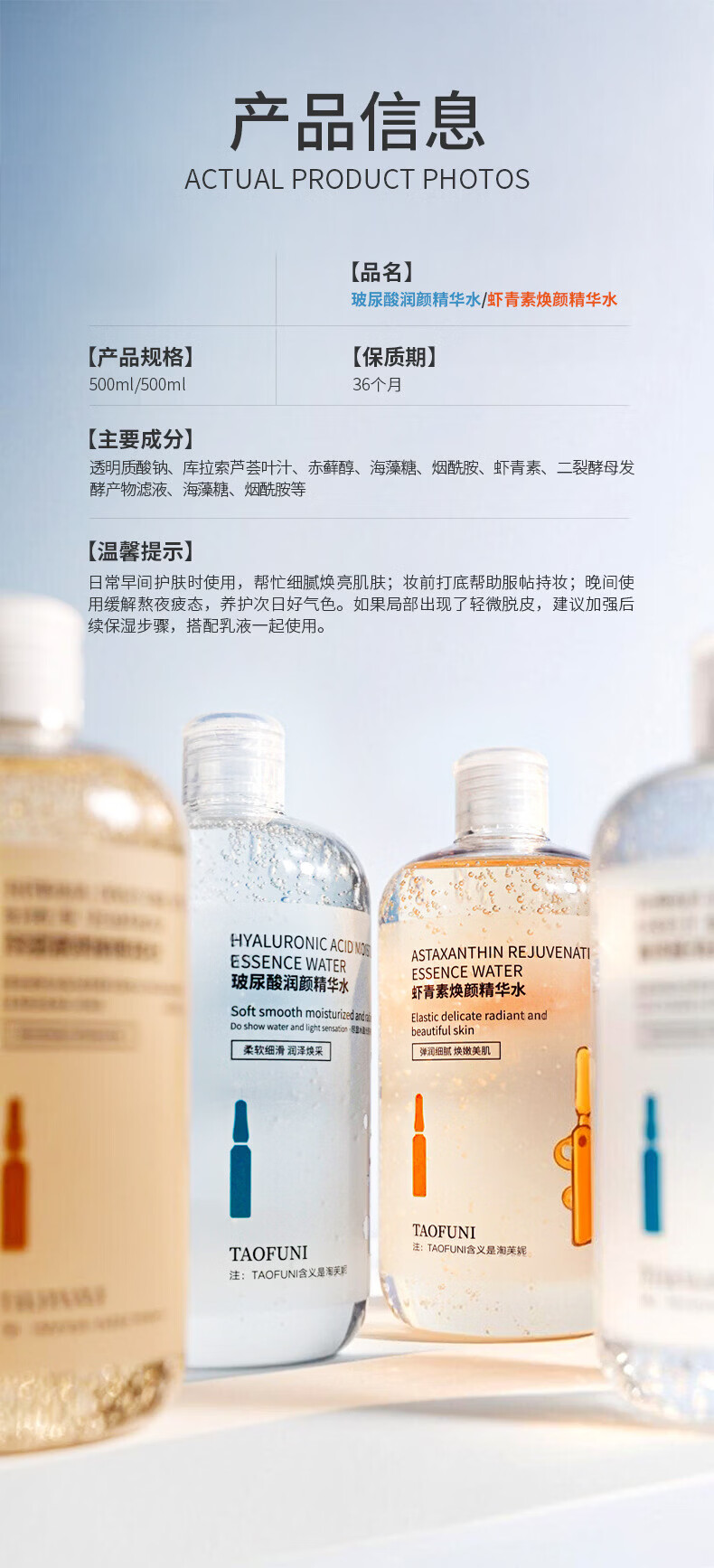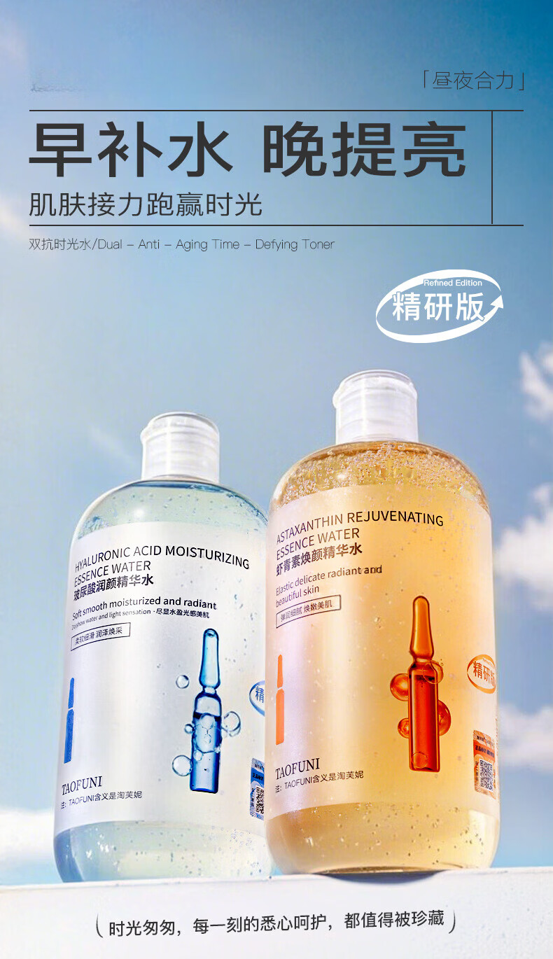 【精选】早晚双抗精华水500ml玻尿酸精华发光爽肤水虾青素熬夜急 500ml 玻尿酸精华水/瓶