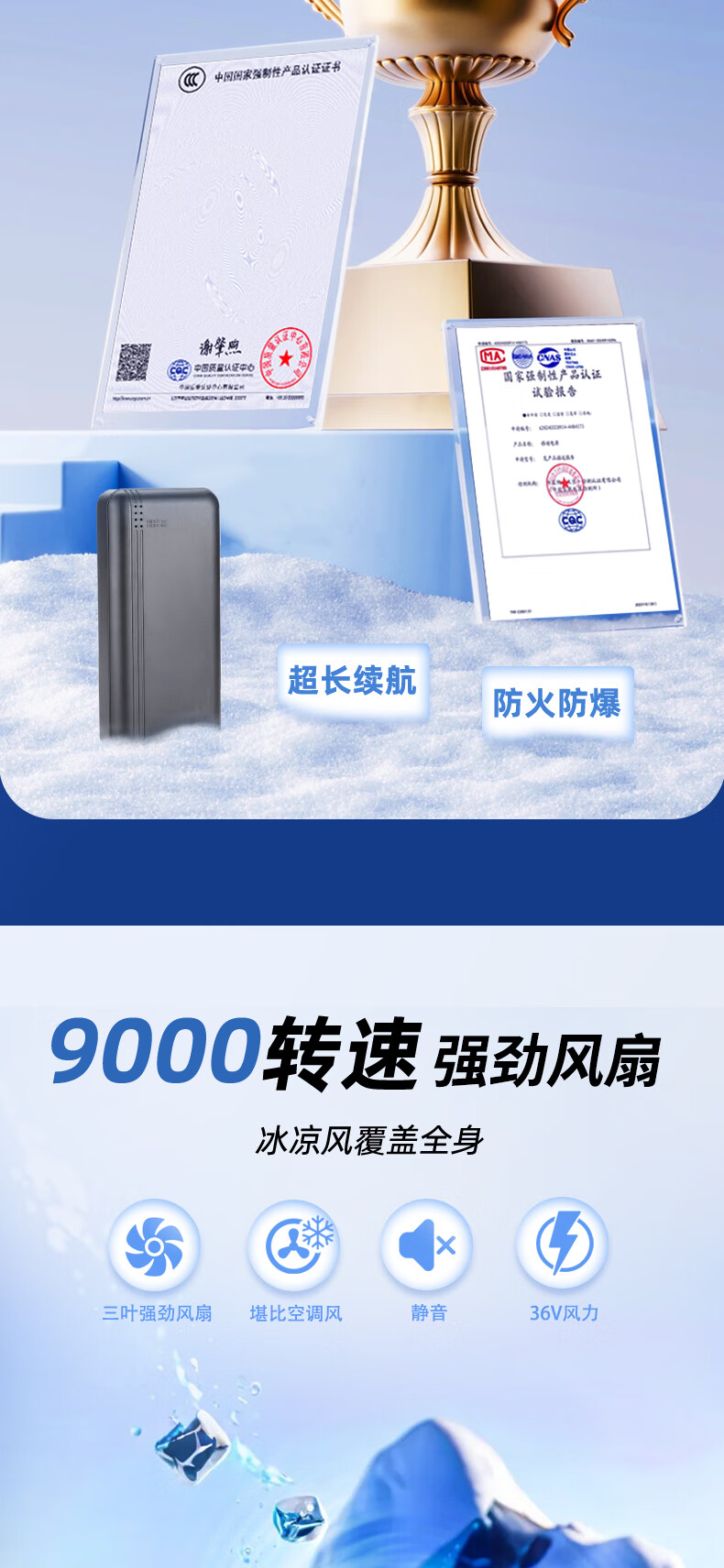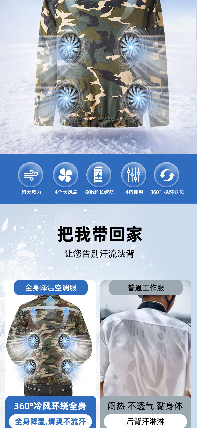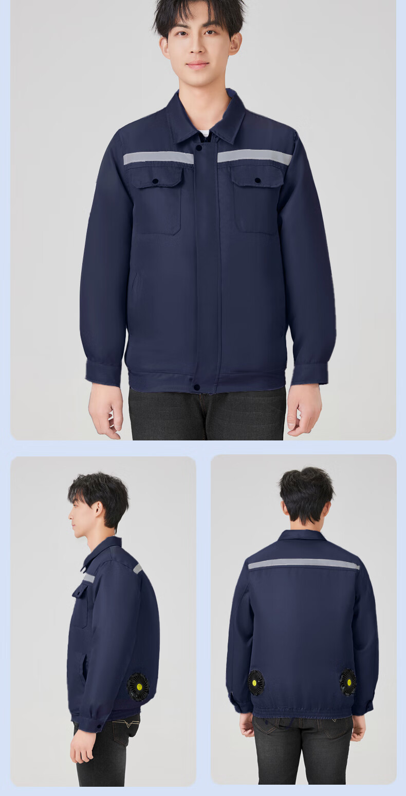 浔印夏季降温空调服男款带风扇的衣服户外劳保防暑充电制冷工地工作服 2风扇藏青2件+1个电池36V配件1套 M 【建议100-115斤】