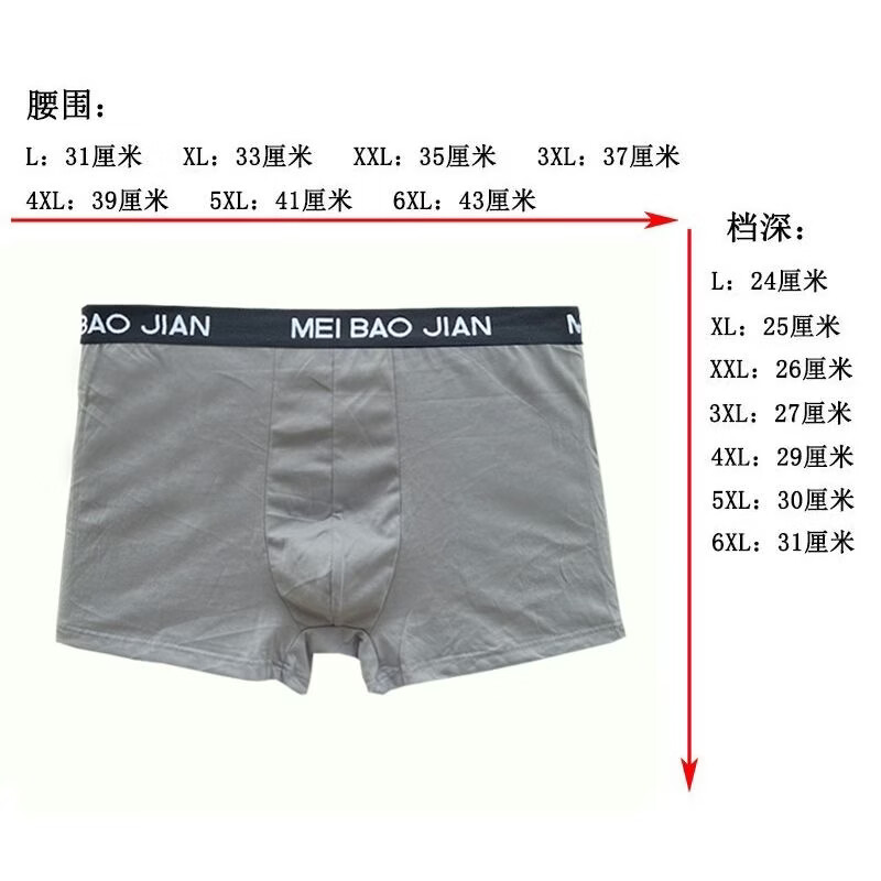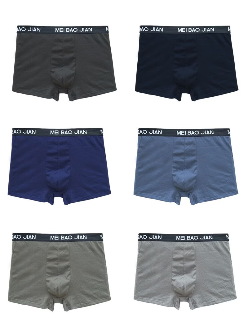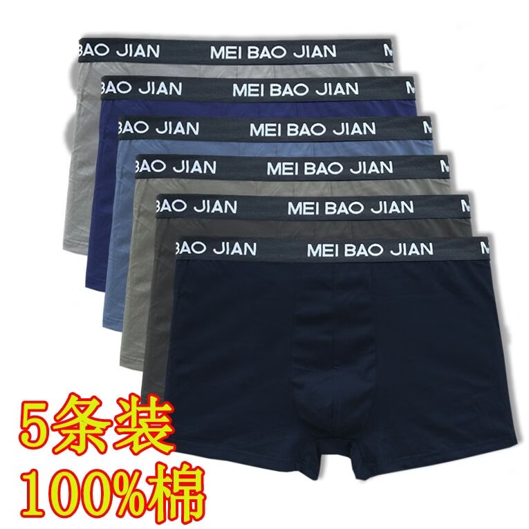 美宝健100%纯棉男士内裤平角透气中腰吸湿排汗大码宽松青中年男生四角裤 5条装)多颜色搭配(吸湿排汗) 6XL (体重190-220斤)100%纯棉