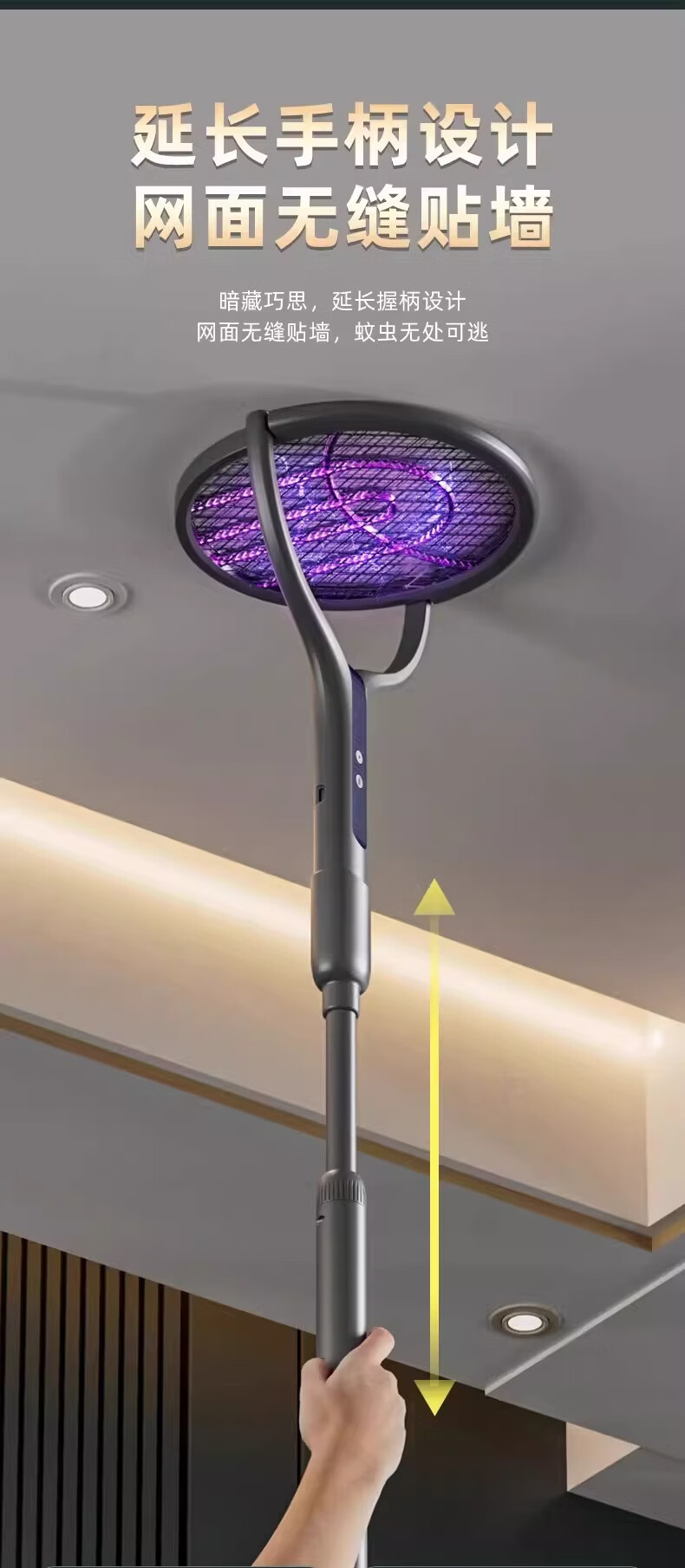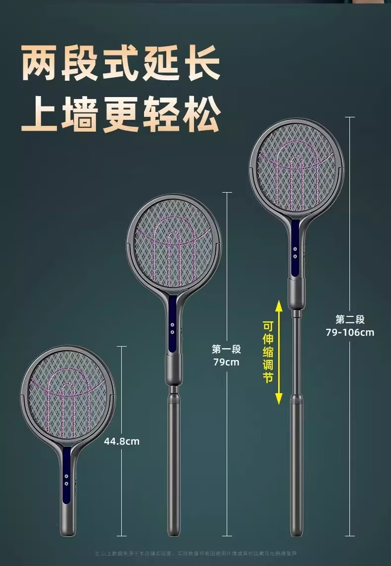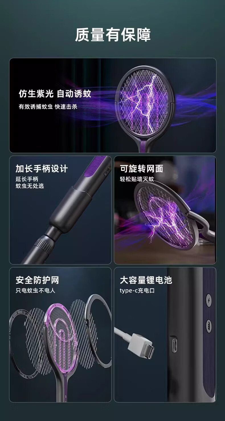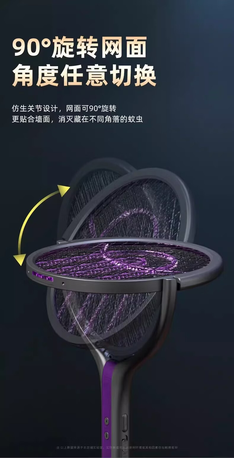 ZYUO日本电蚊拍充电式家用二合一自动诱蚊可伸缩强力密苍蝇拍驱蚊神器 【基础手柄款】锂电池+紫光诱蚊灯+90°旋转折叠