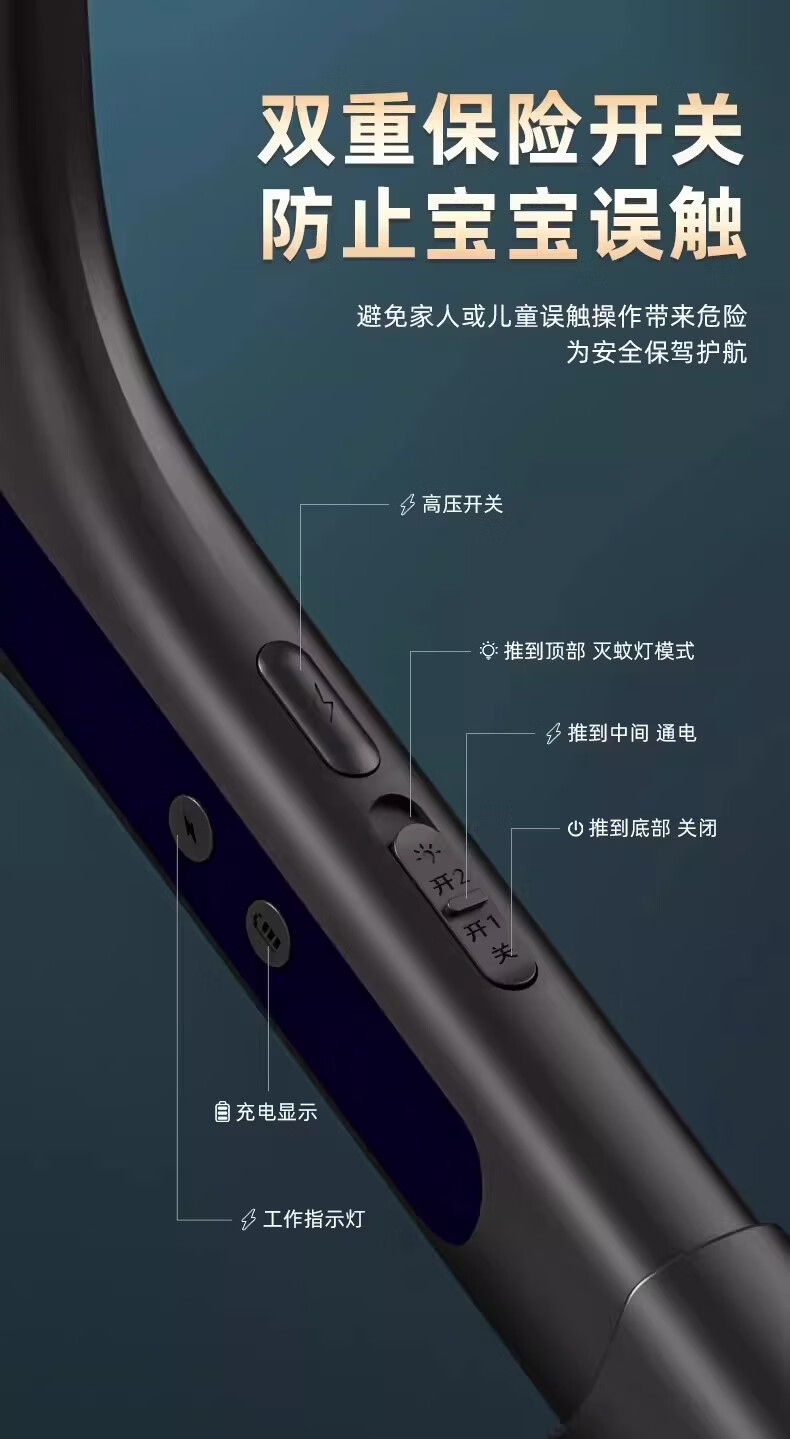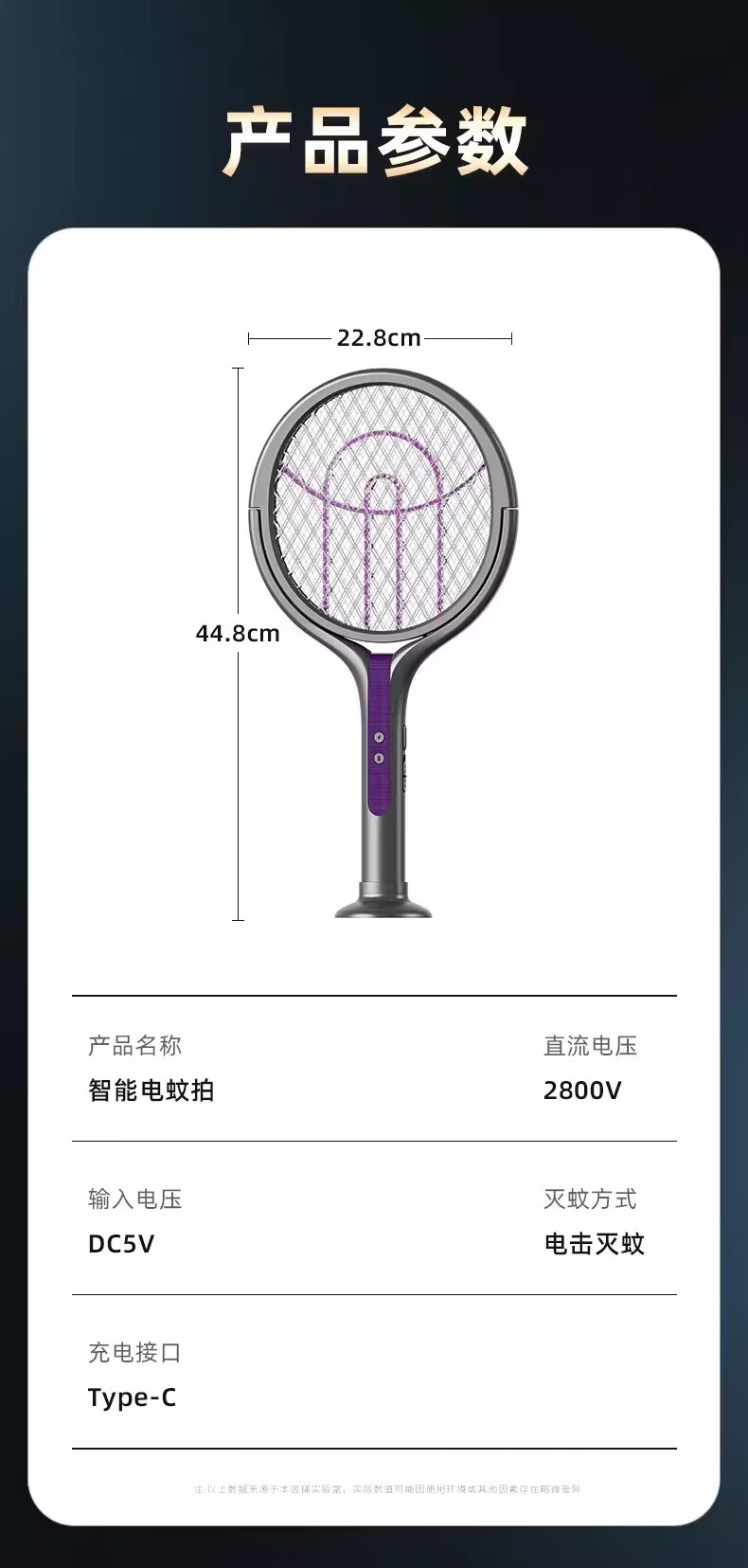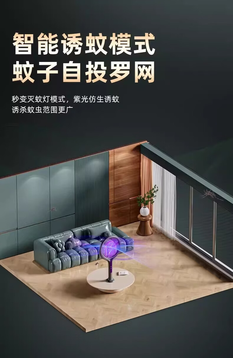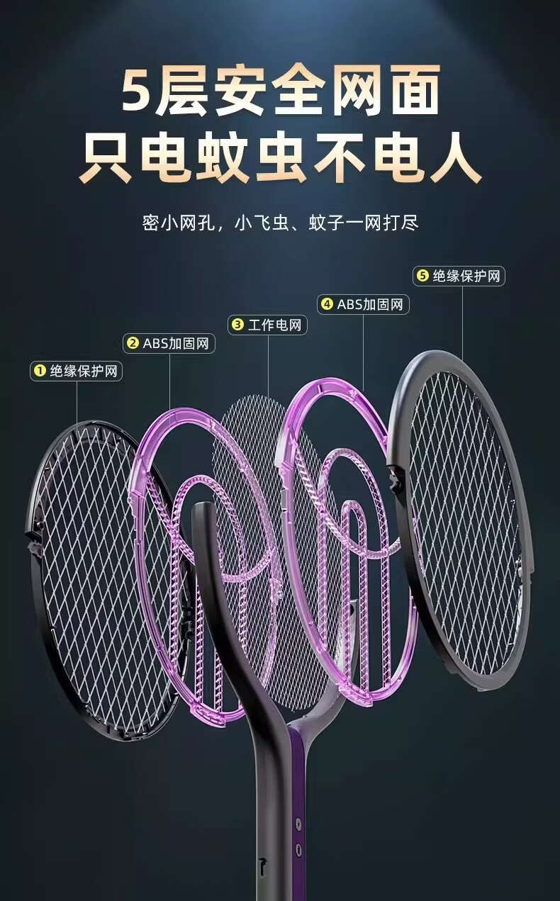 ZYUO日本电蚊拍充电式家用二合一自动诱蚊可伸缩强力密苍蝇拍驱蚊神器 【基础手柄款】锂电池+紫光诱蚊灯+90°旋转折叠