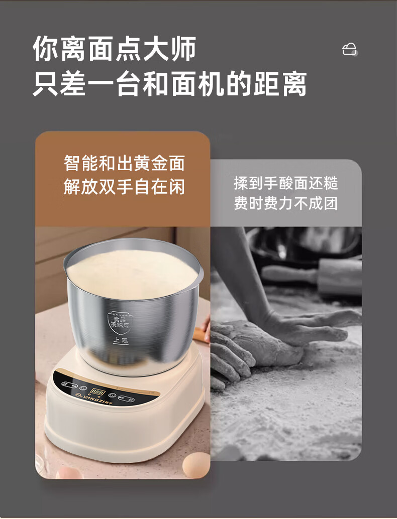 扬子(YANGZI)和面机家用全自动和面揉面一体机厨师机全自动多功能智能和面搅面机 面包面粉发酵醒面 【直播同款】 5L 中式西式+醒面发酵