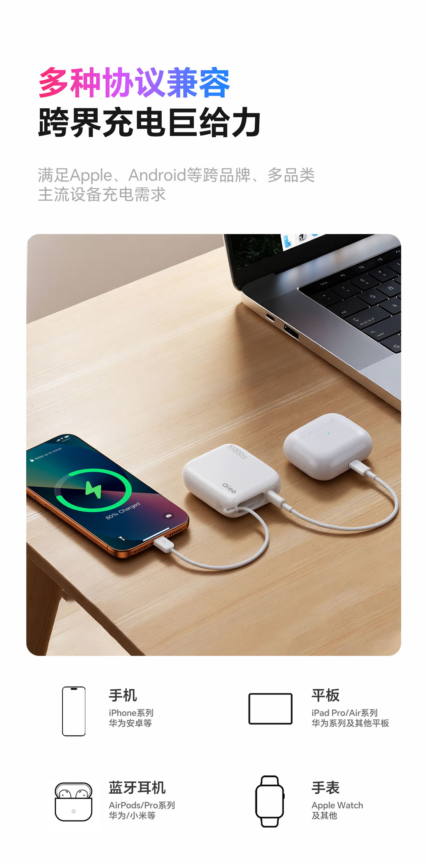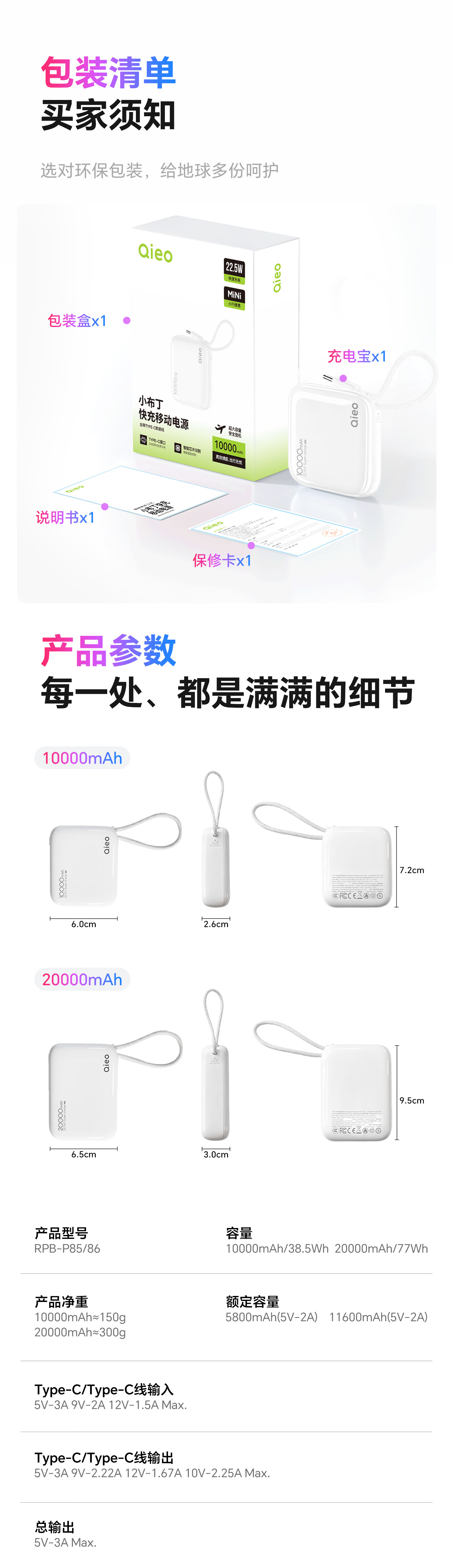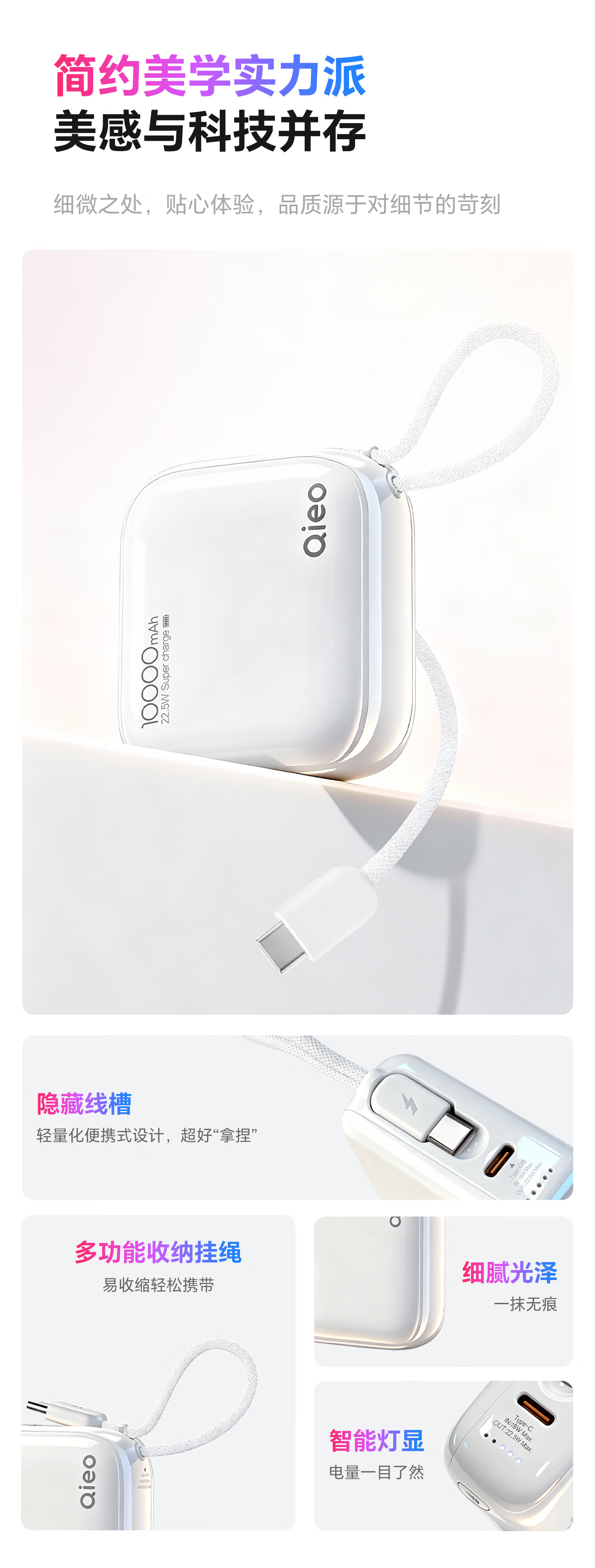 Qieo【新3c认证丨胖东商超爆卖】充电宝20000毫安 可上飞机小巧便携自带线超大容量 快充小米华为苹果 新3C【10000mAh|超小巧】旗舰版 云雾白
