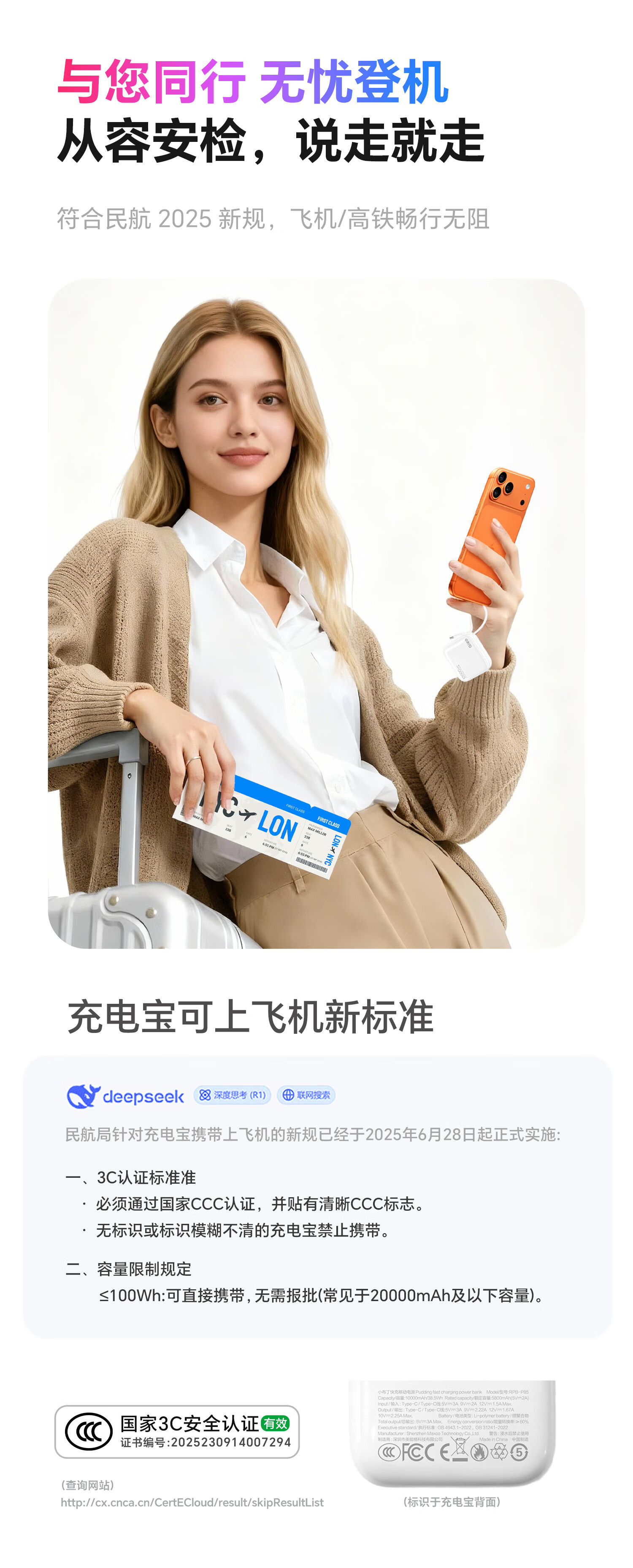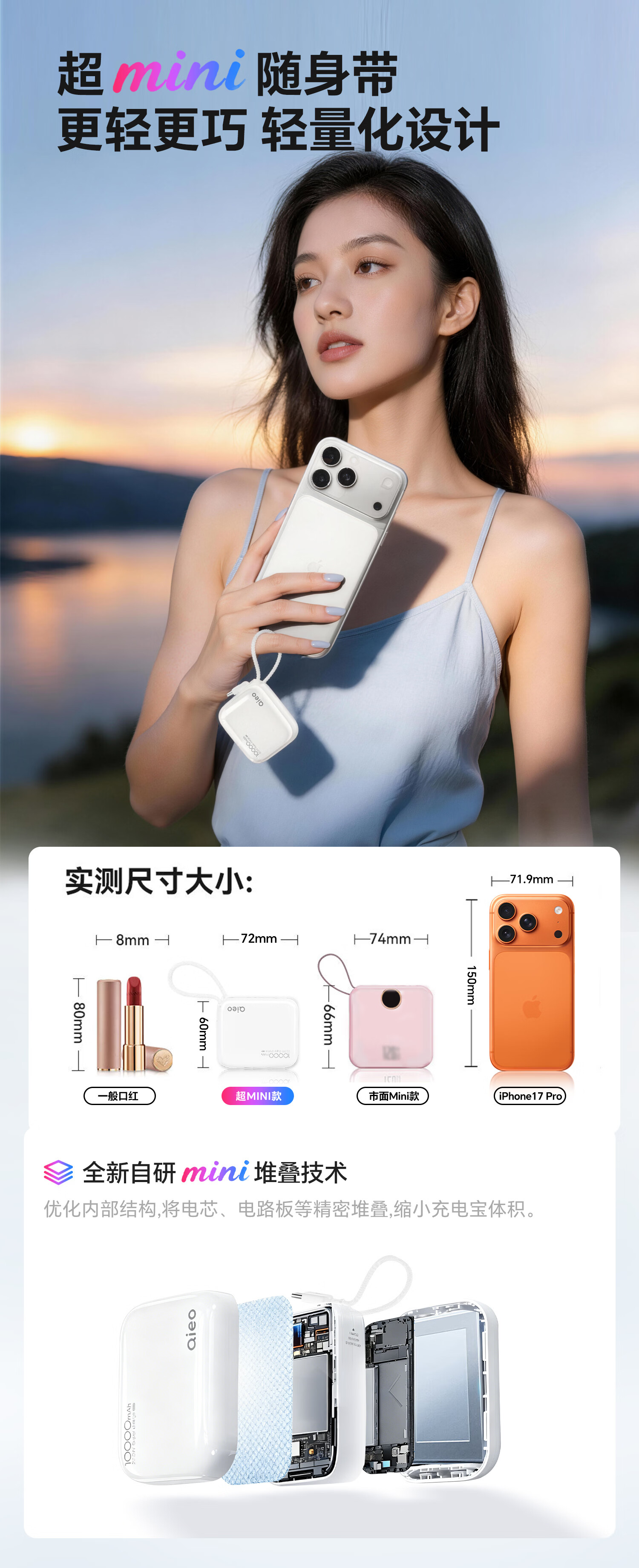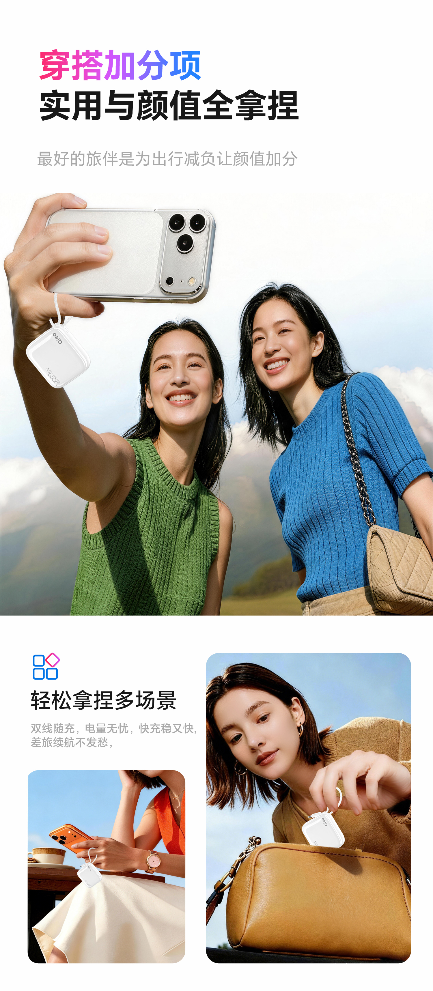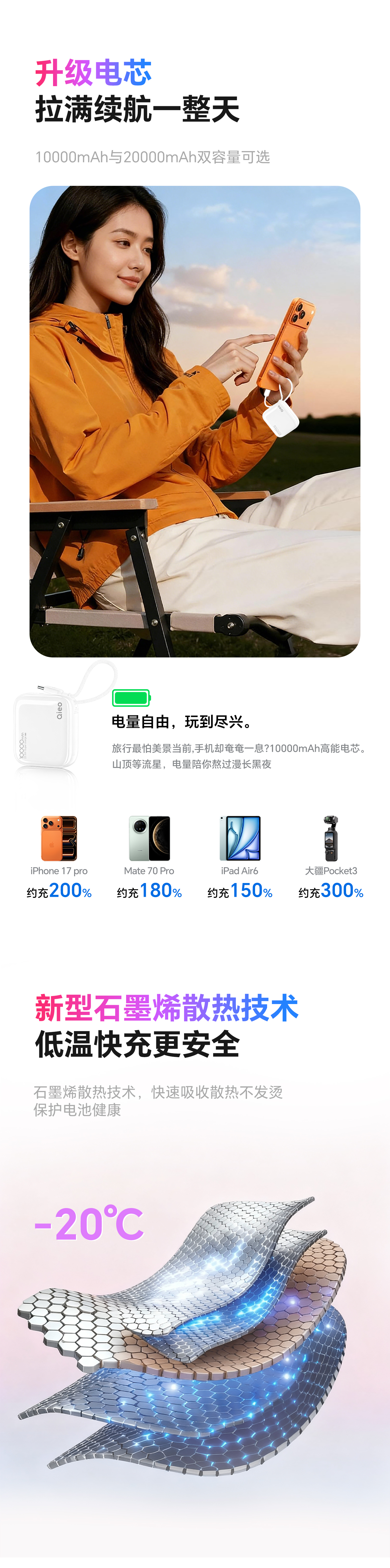 Qieo【新3c认证丨胖东商超爆卖】充电宝20000毫安 可上飞机小巧便携自带线超大容量 快充小米华为苹果 新3C【10000mAh|超小巧】旗舰版 云雾白