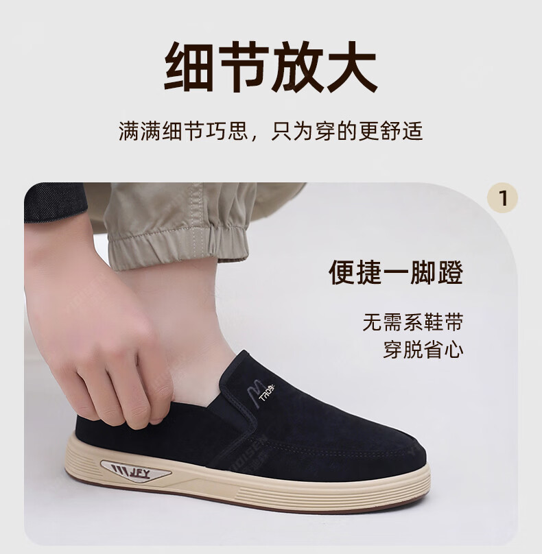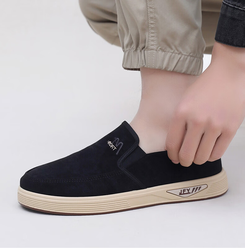 意迪森春季新款百搭懒人鞋防滑软底板鞋轻便透气舒适休闲鞋中老年爸爸鞋 黑色 单层 39 (245mm)