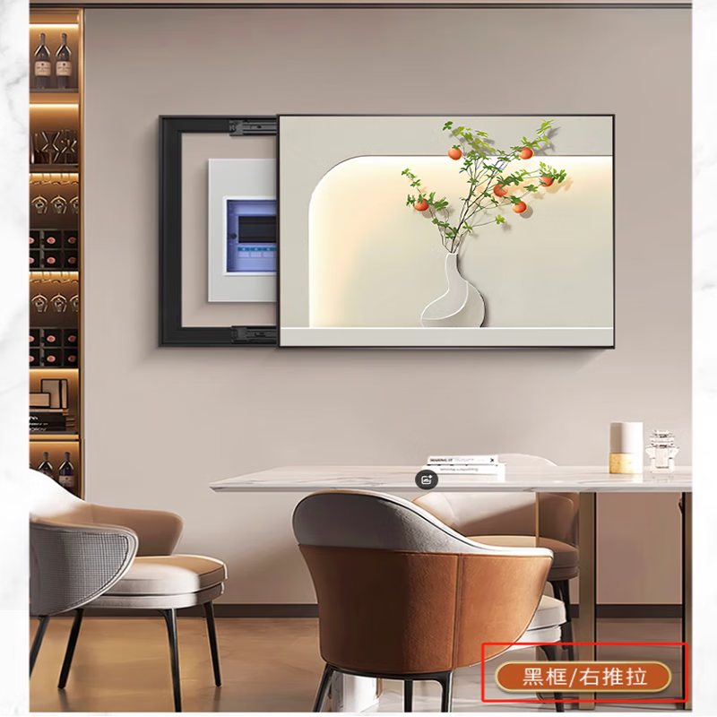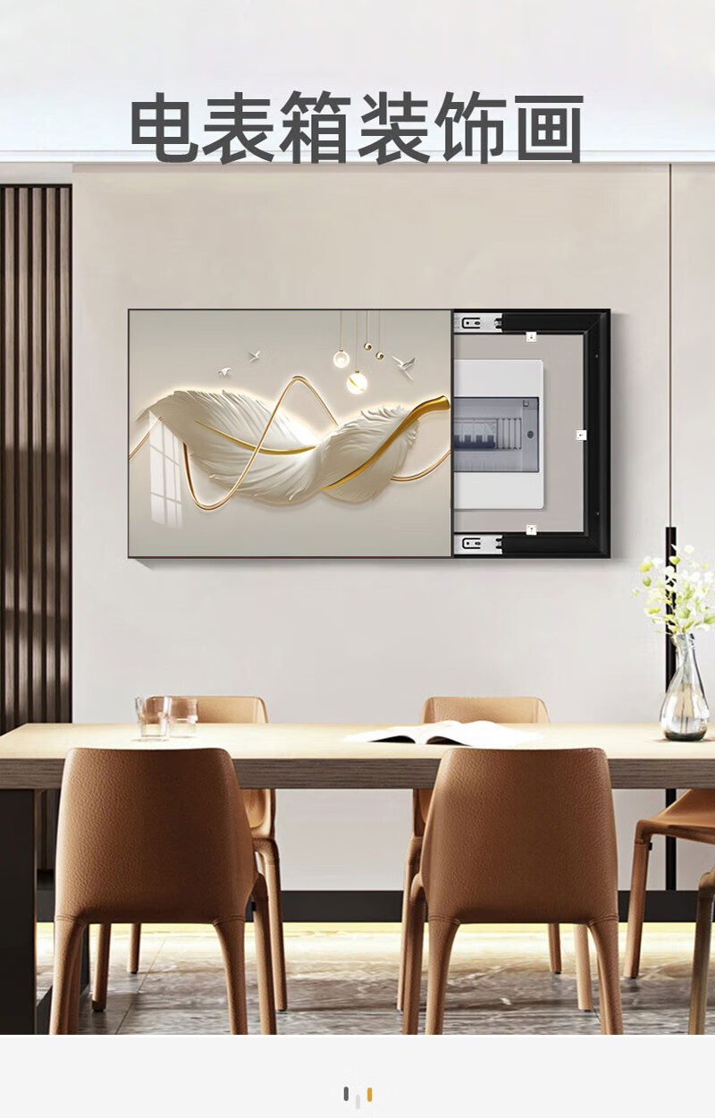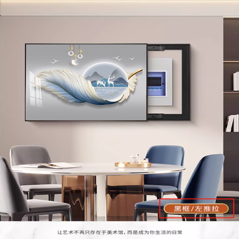 柳莺花燕现代轻奢电表箱装饰画新款遮挡画电闸箱配电箱壁画客厅电表盒挂画 A-翎羽天成 55X45遮盖45cmX35cm表箱 左推拉款