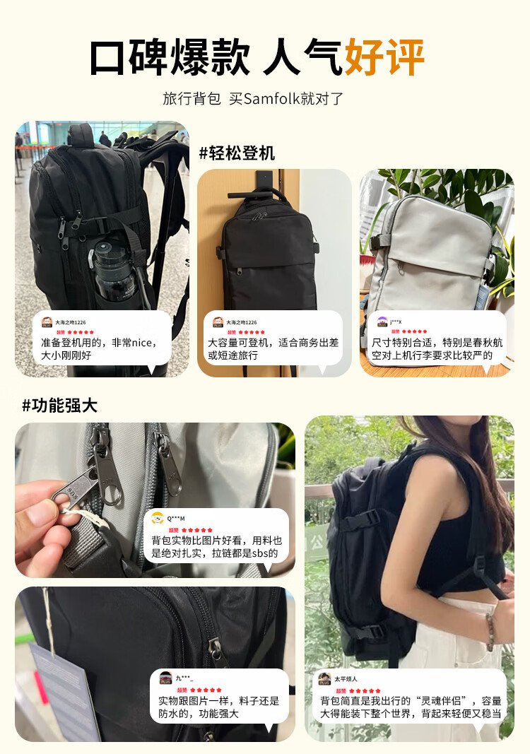 Samfolk双肩包大容量旅行背包 登机免托运 电脑包商务出差书包男女球拍包 灰色