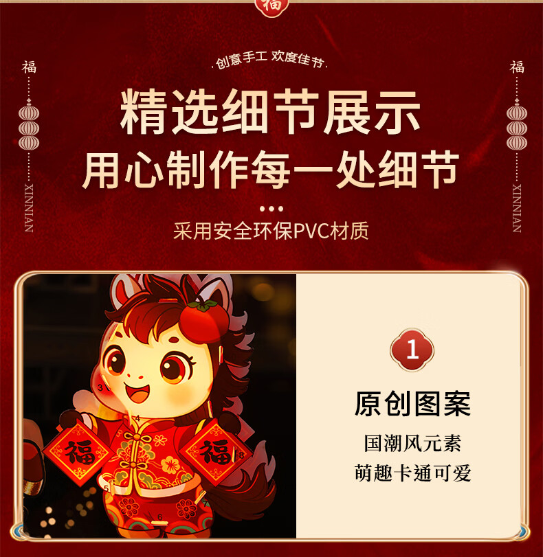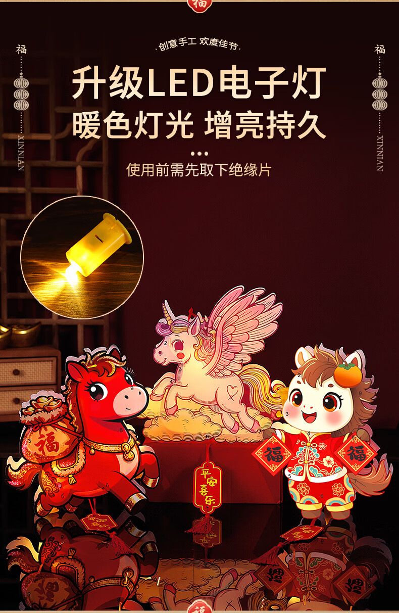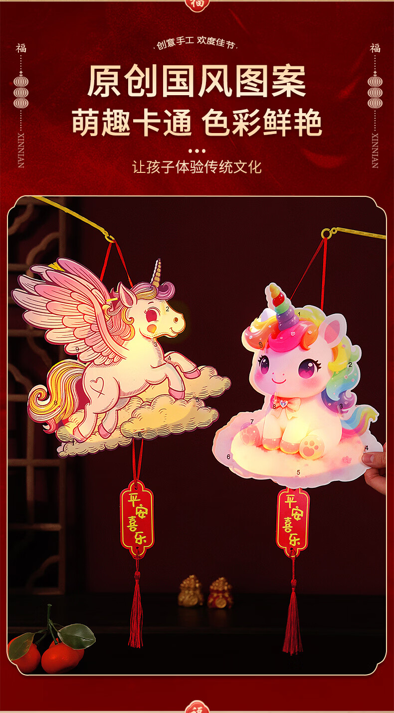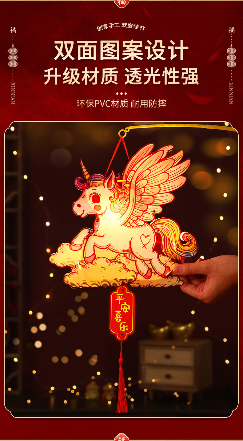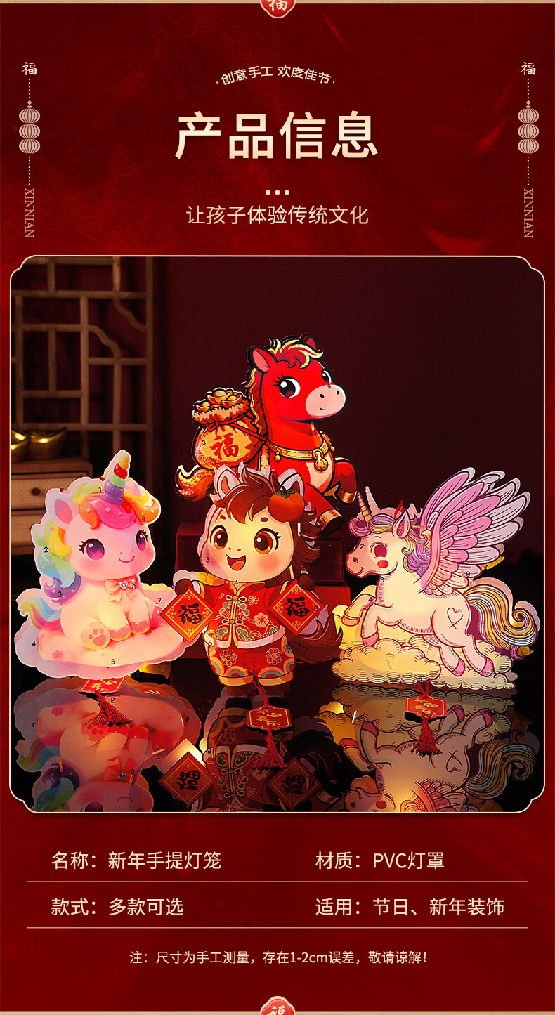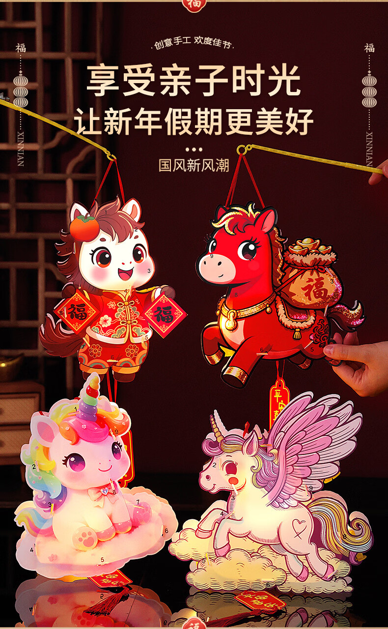 溥畔2026新年元旦卡通马年灯笼儿童春节手提花灯手工diy材料制作发光 【马上有福+彩虹马】马年卡通手提灯 无规格