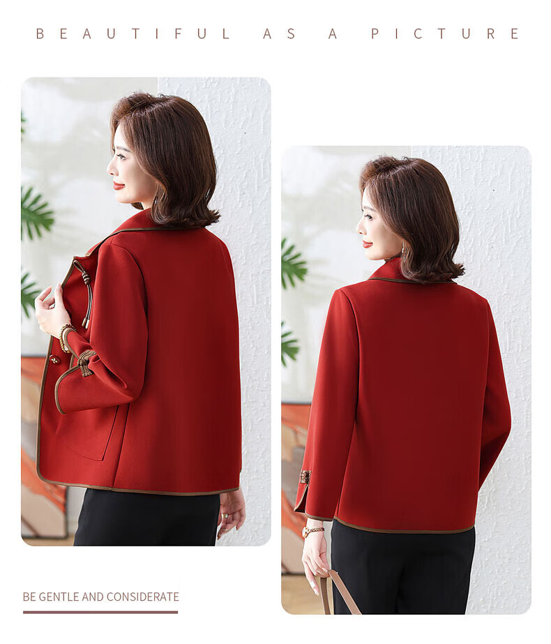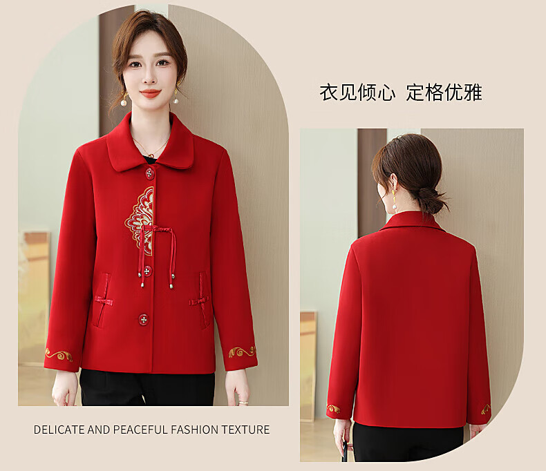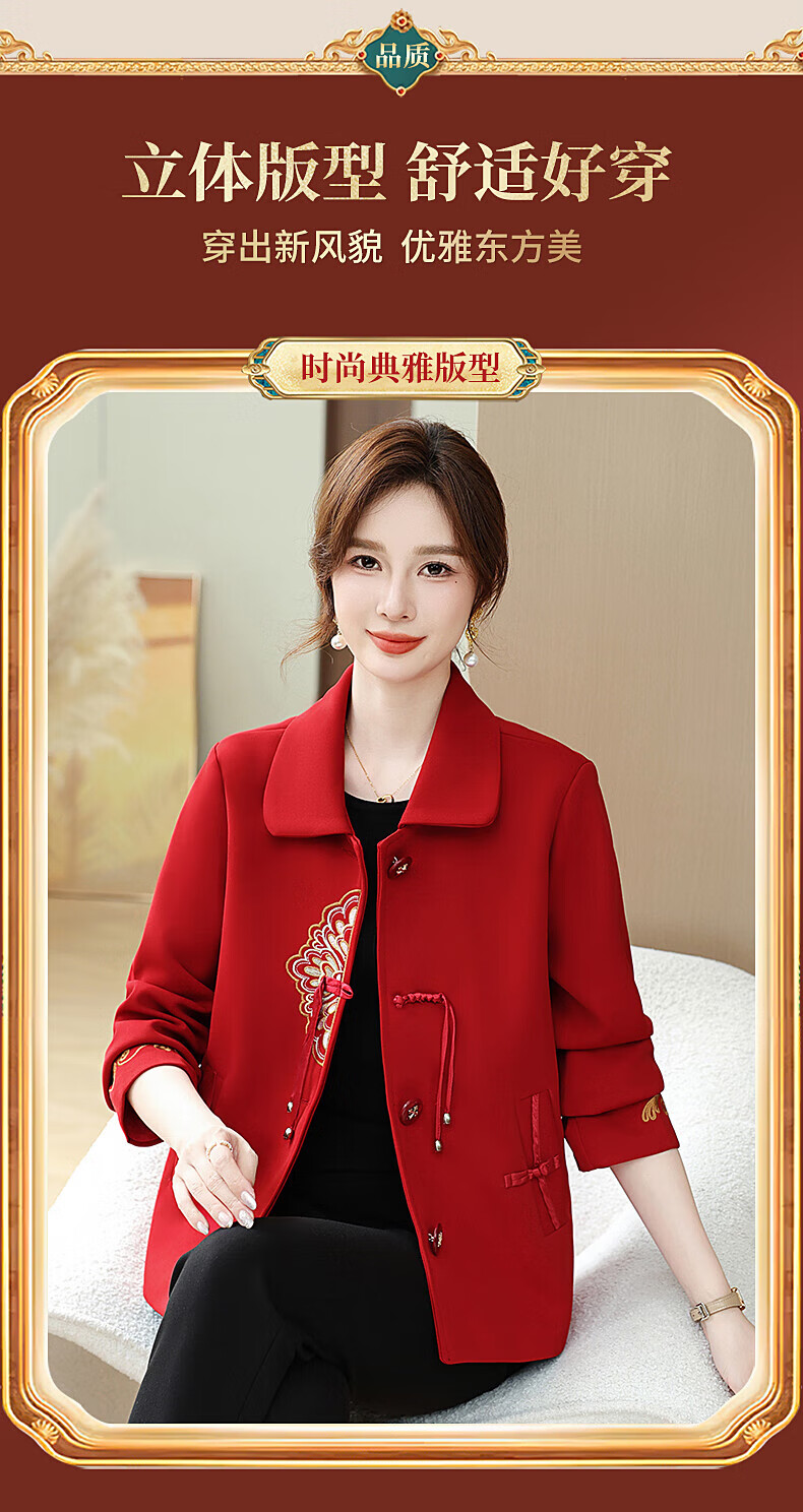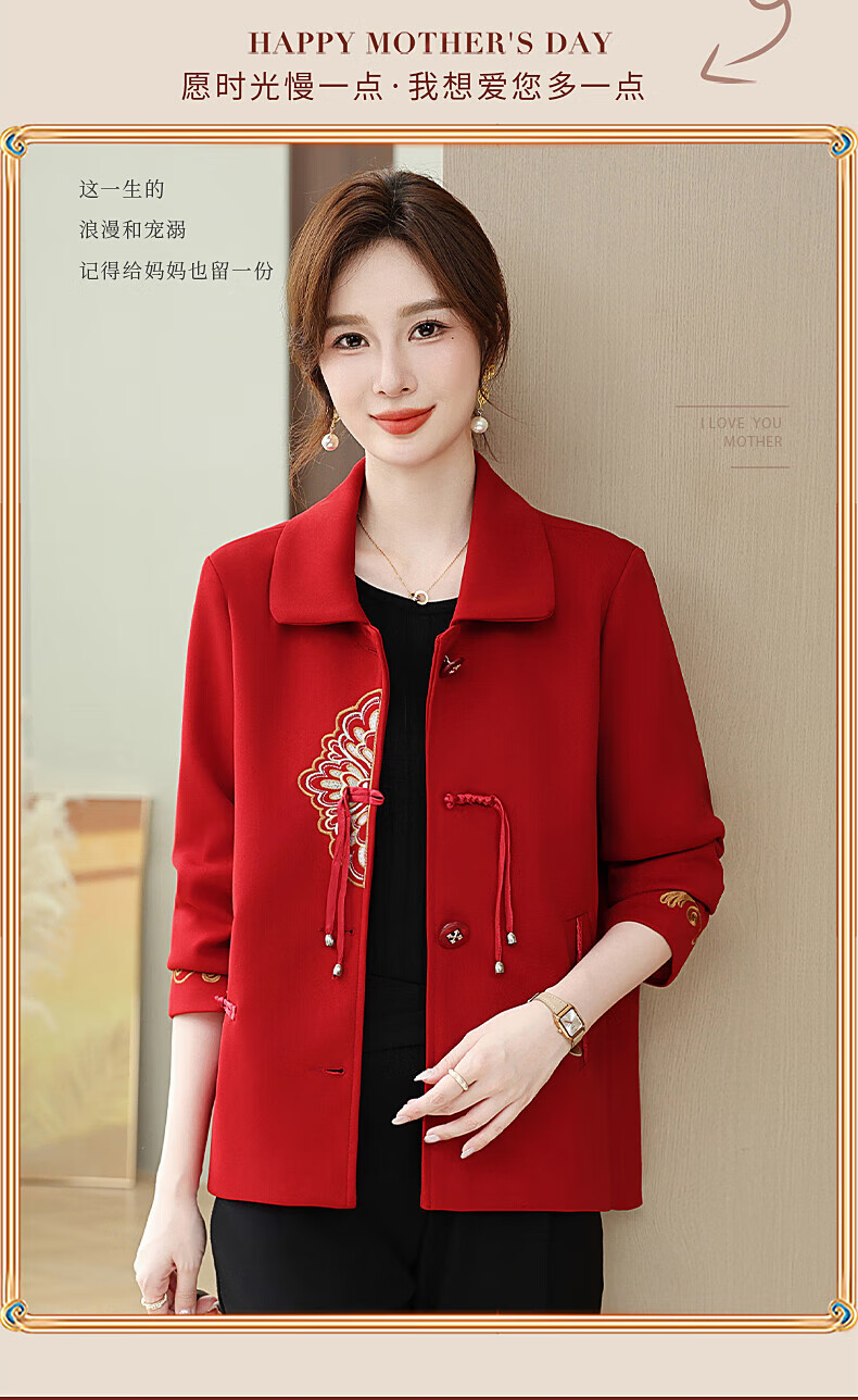 孜颜中老年女装春装女2026新款50-60岁洋气妈妈装春秋外套新中式衣服 红色 XL 【建议80-100斤】