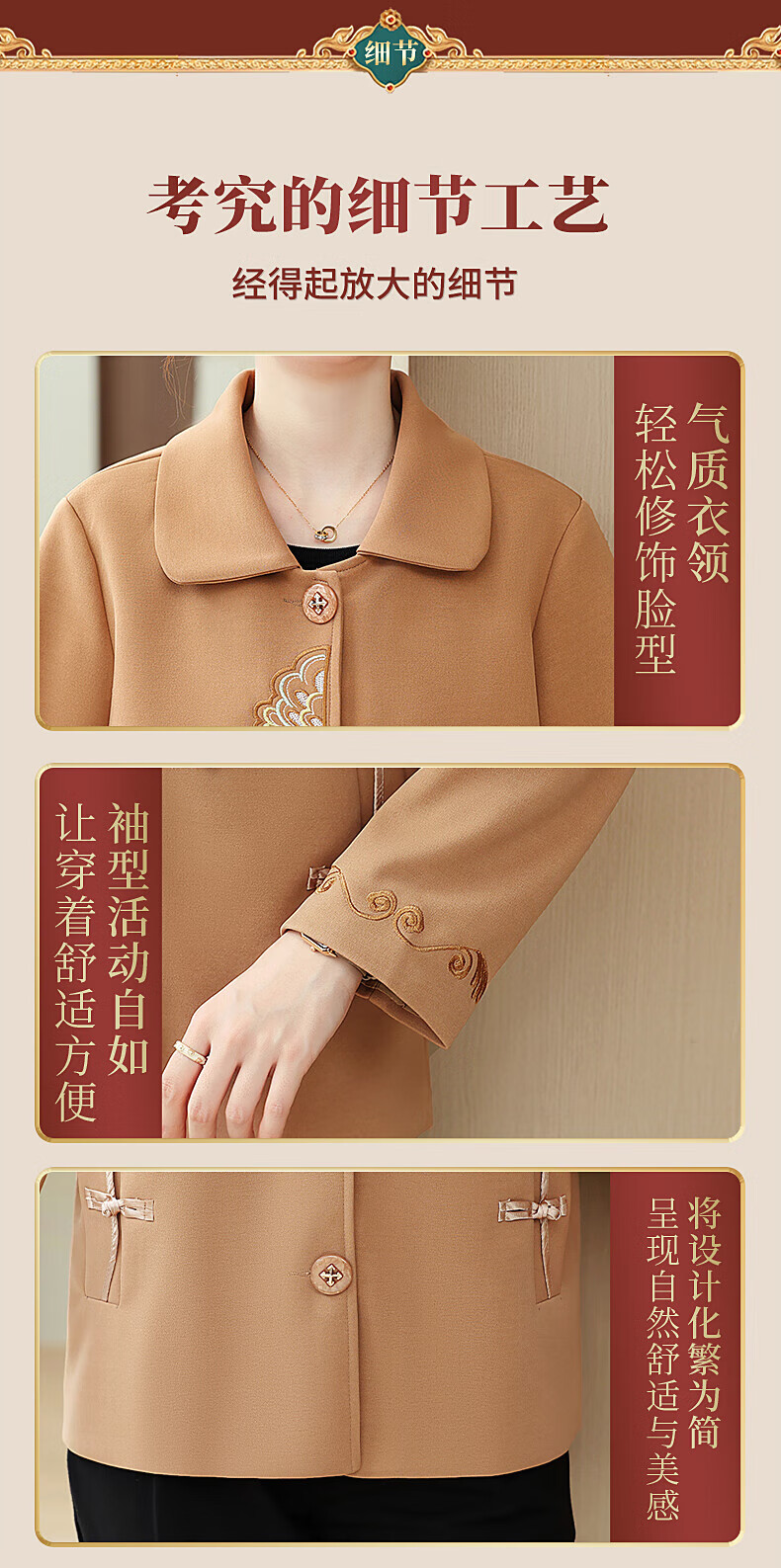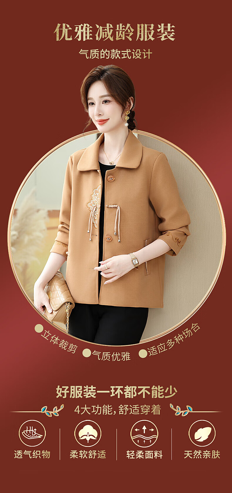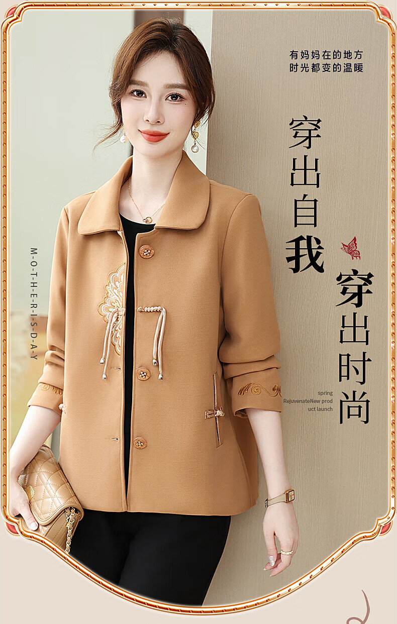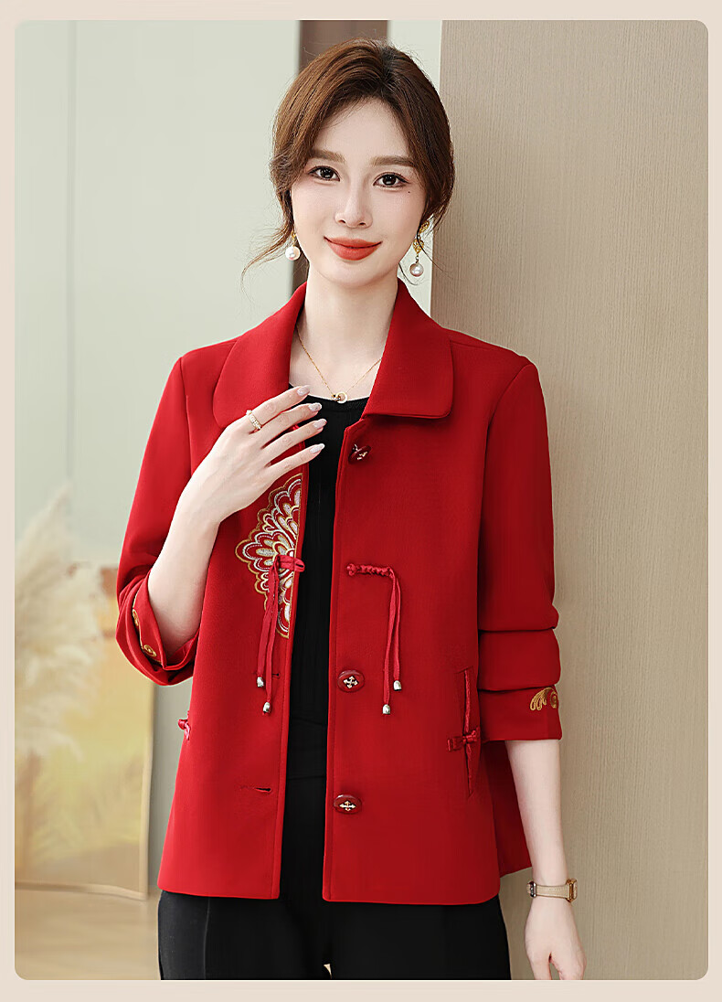 孜颜中老年女装春装女2026新款50-60岁洋气妈妈装春秋外套新中式衣服 红色 XL 【建议80-100斤】