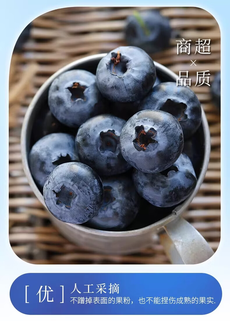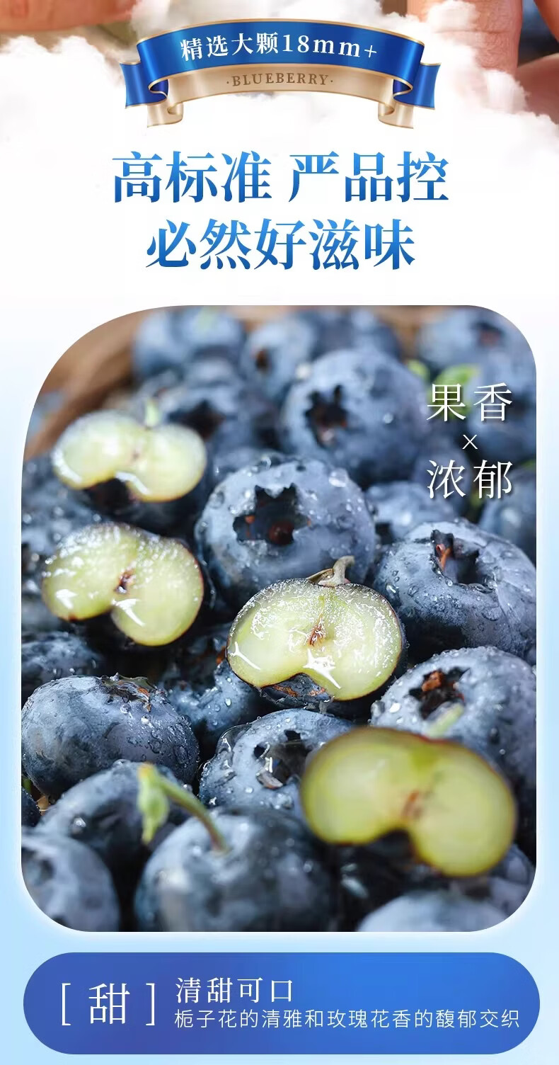 爱莓庄云南鲜梗蓝莓 脆甜新鲜手采现摘 22mm+12盒装 约125g/盒 源头直发