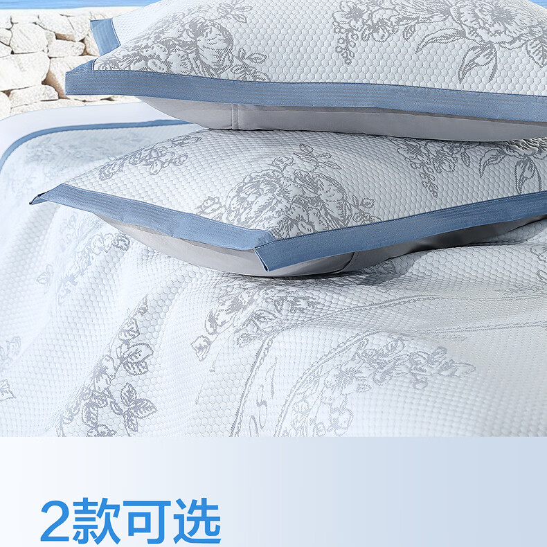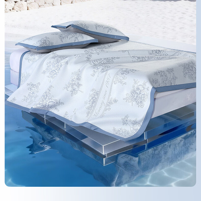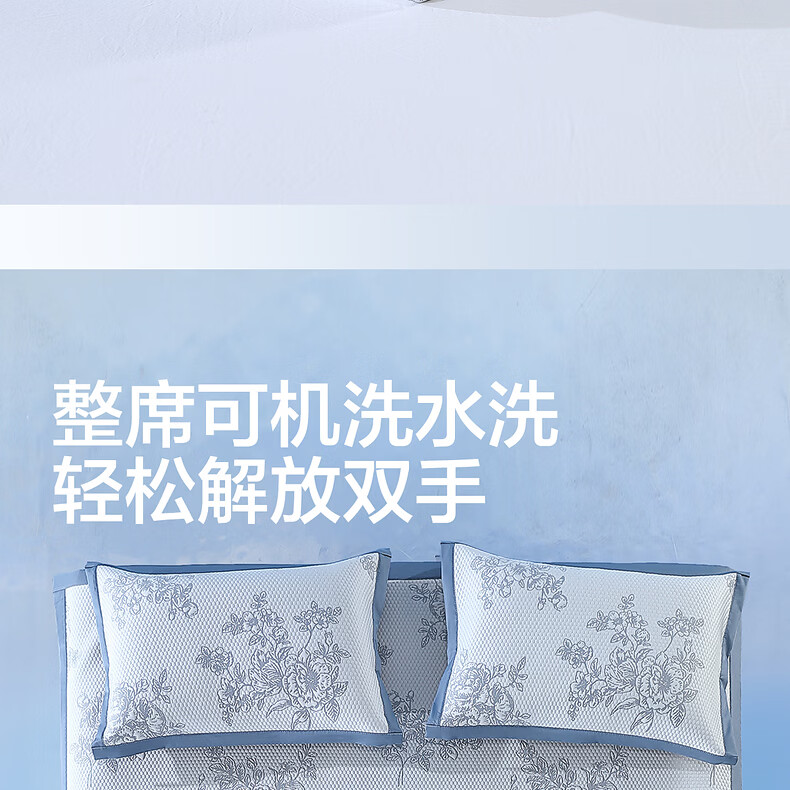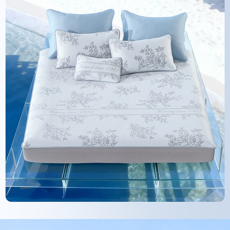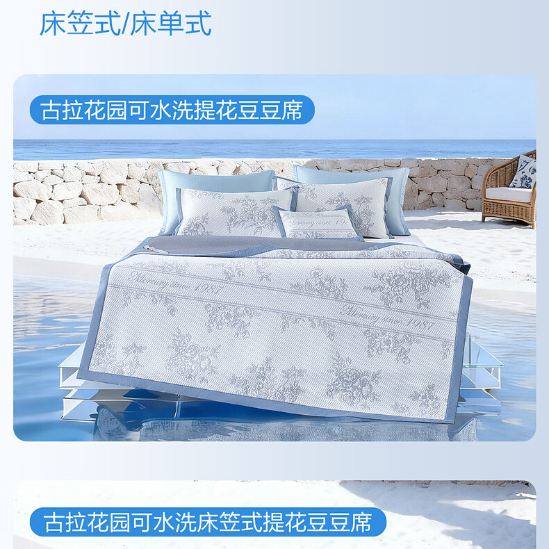 水星家纺古拉花园可水洗提花豆豆席 古拉花园可水洗提花豆豆席两件套(浅灰蓝) 90cm*195cm