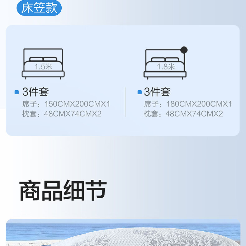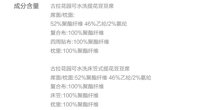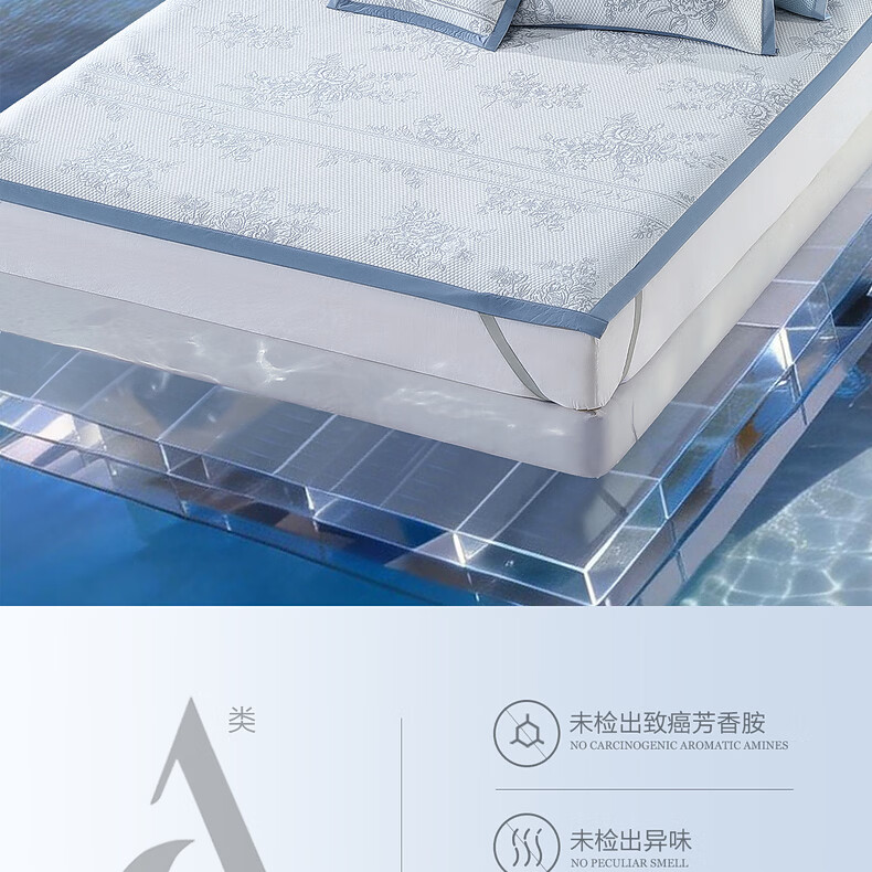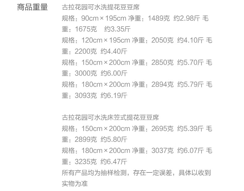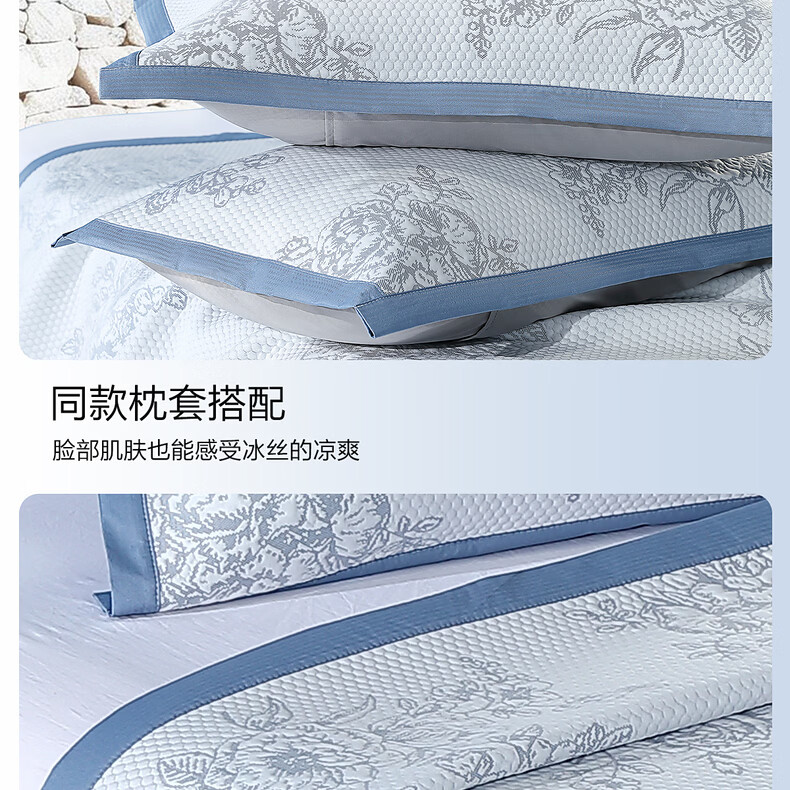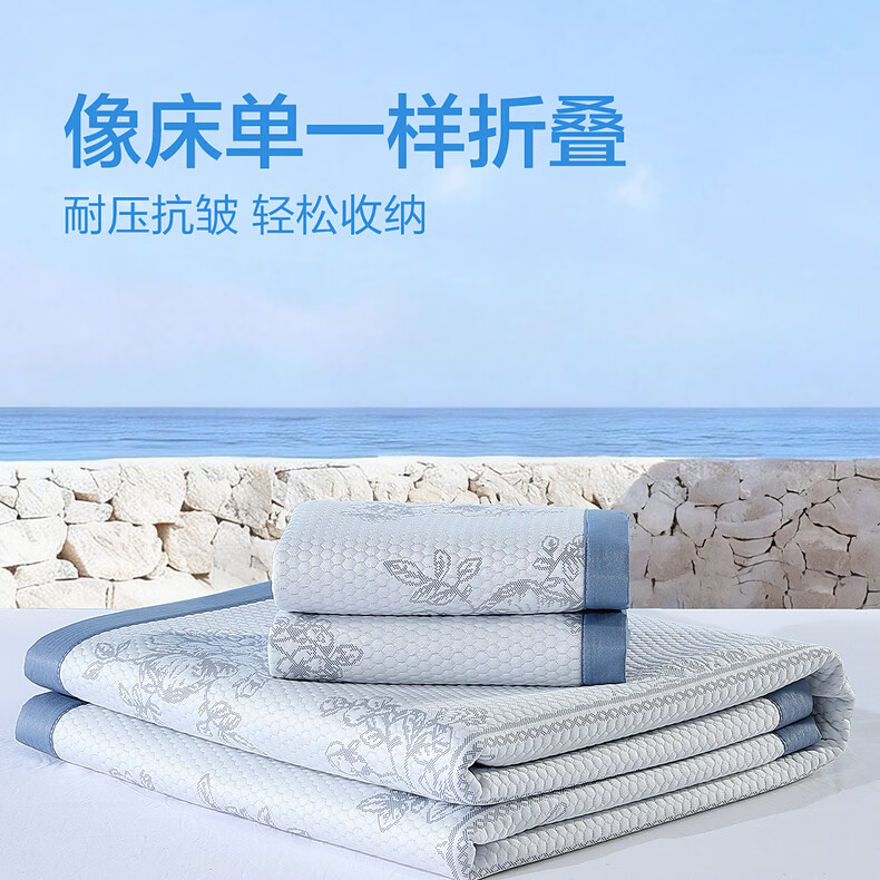 水星家纺古拉花园可水洗提花豆豆席 古拉花园可水洗提花豆豆席两件套(浅灰蓝) 90cm*195cm
