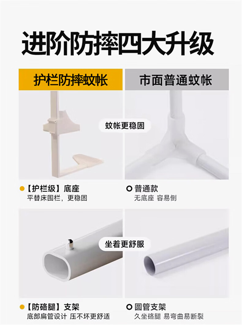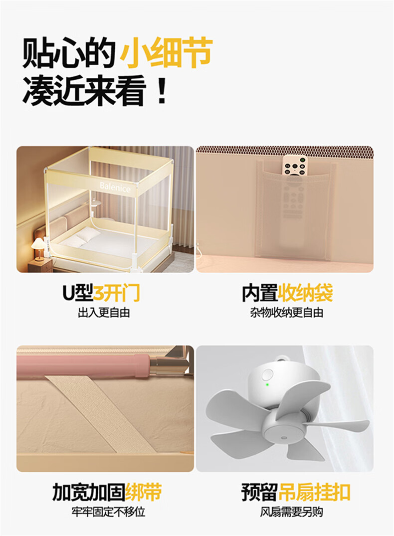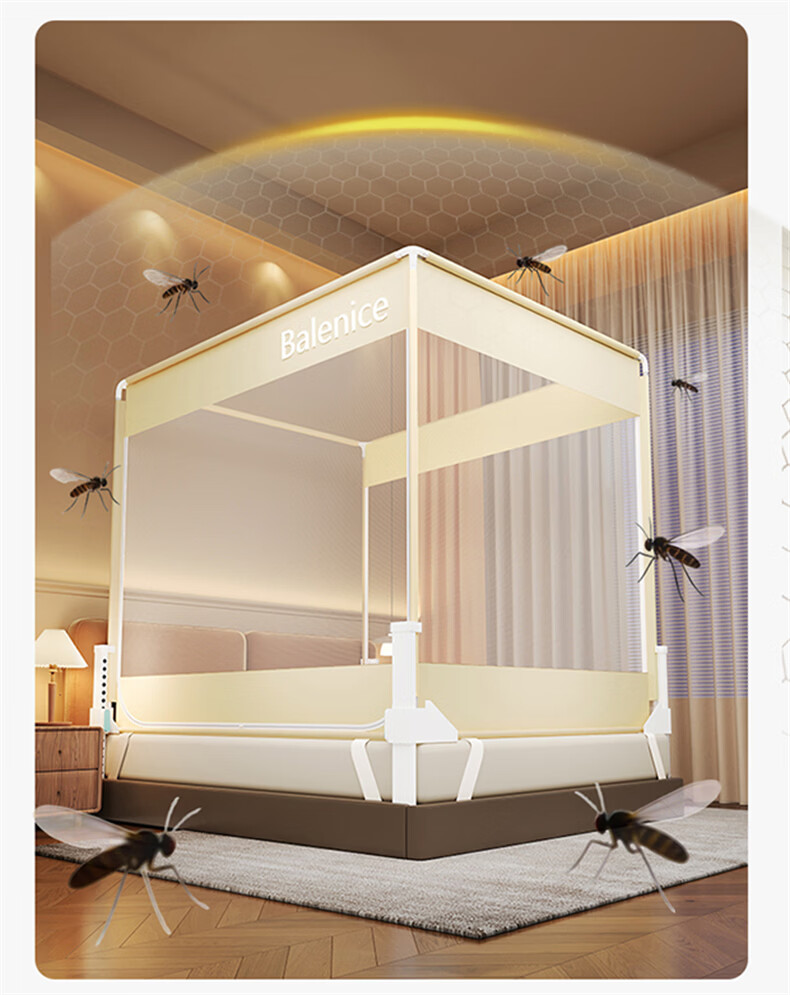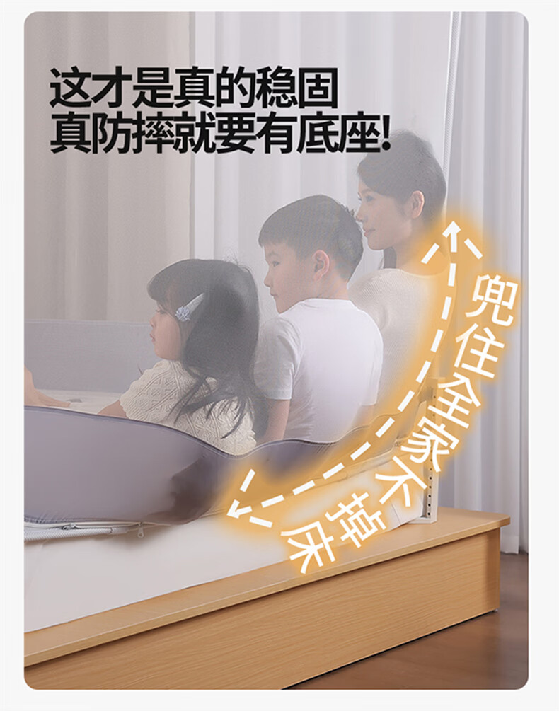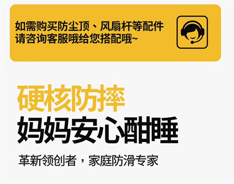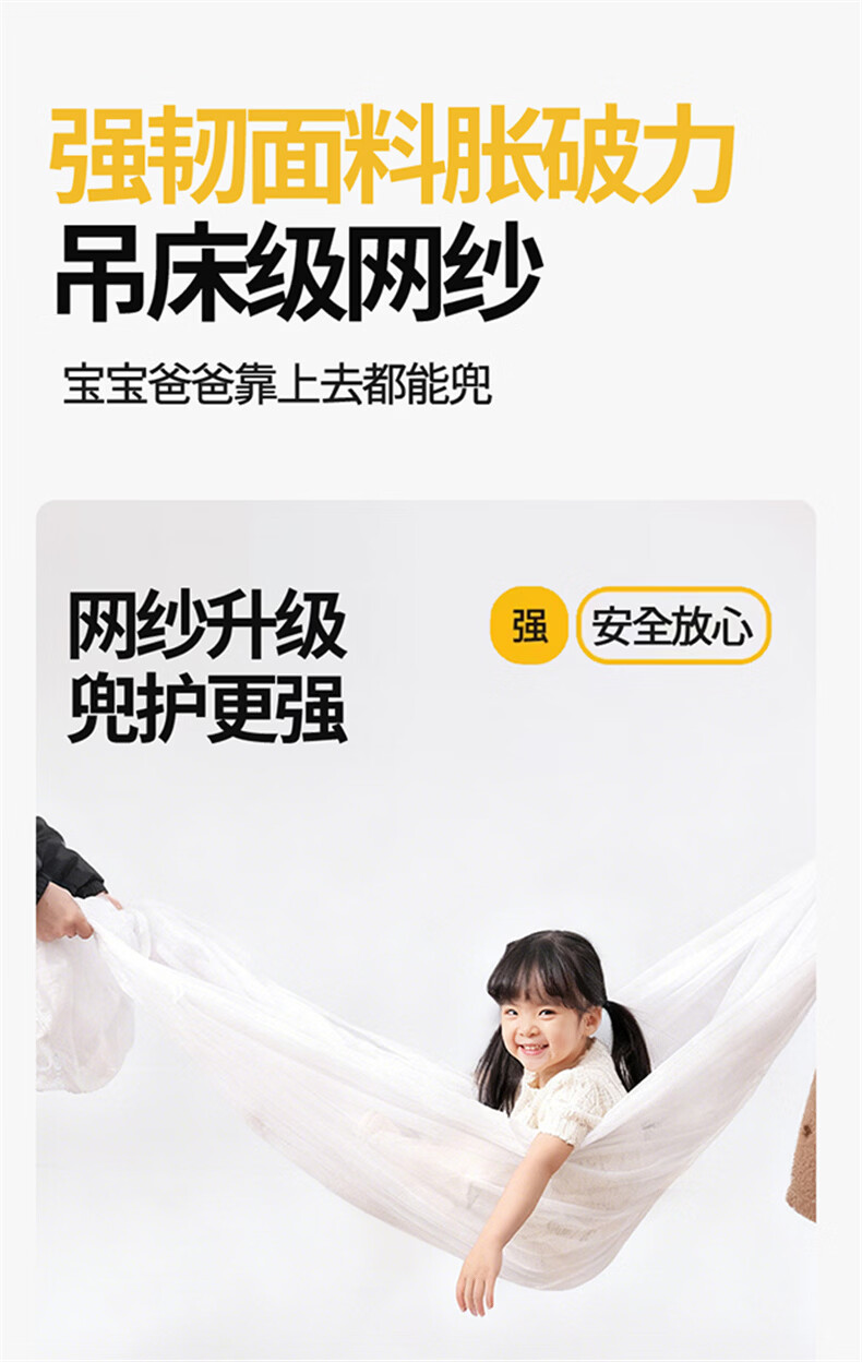 无印良品婴儿防摔蚊帐1.8x2米家用一体式免安装儿童防掉床围栏蚊帐二合一 光年-黄【围栏支架+防尘顶+风扇杆】 1.8m床-宽180x长200x高170cm