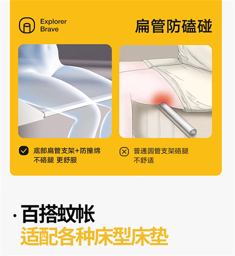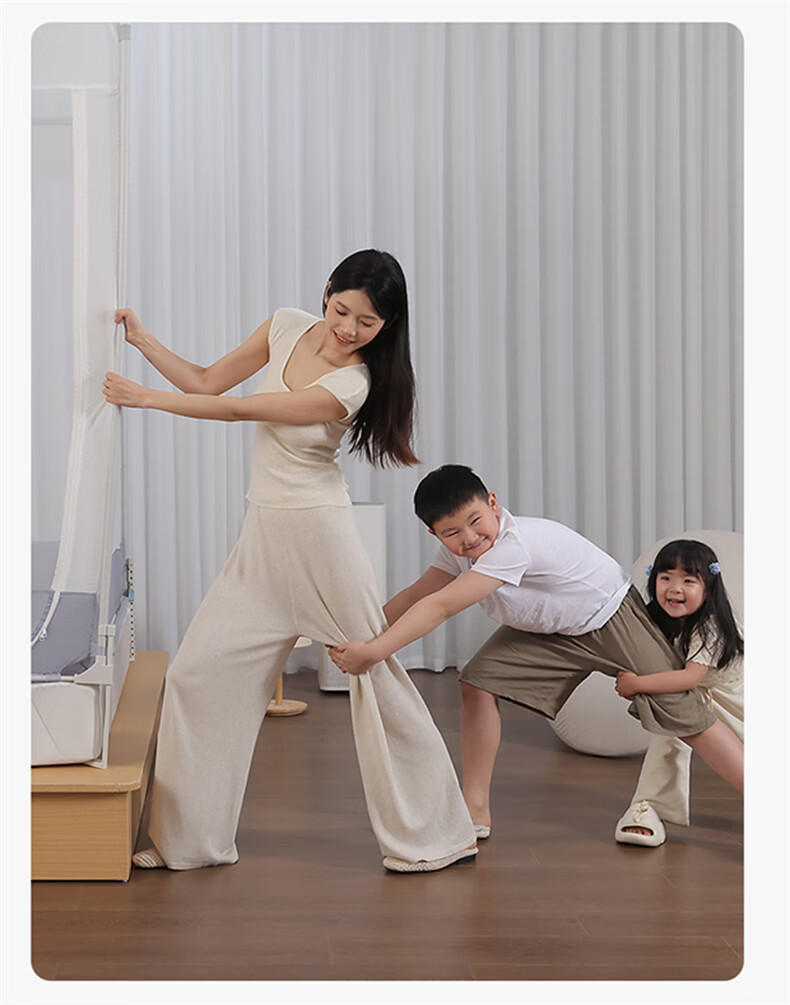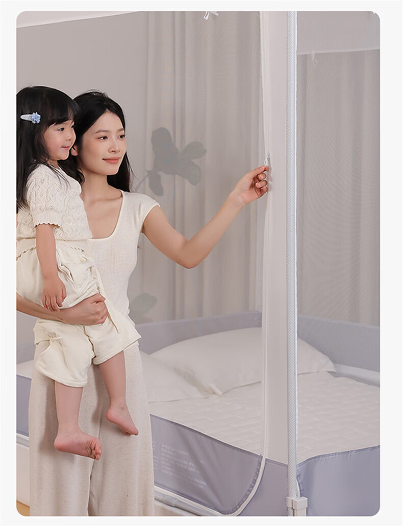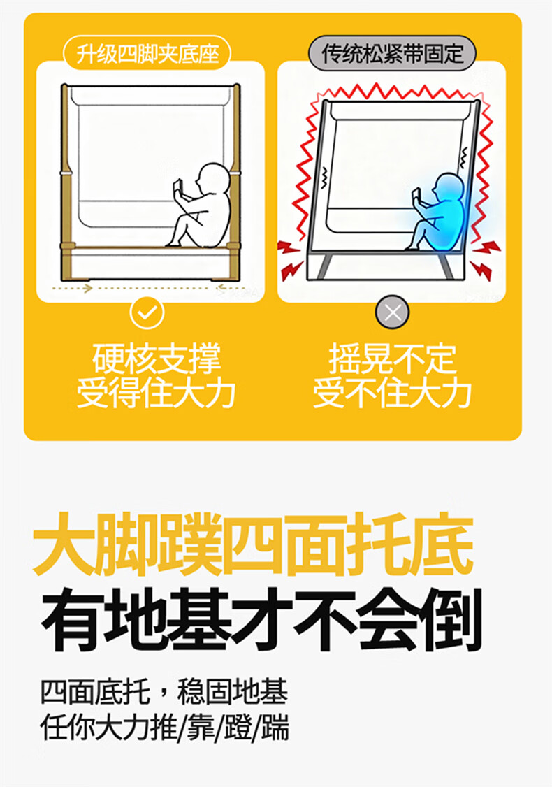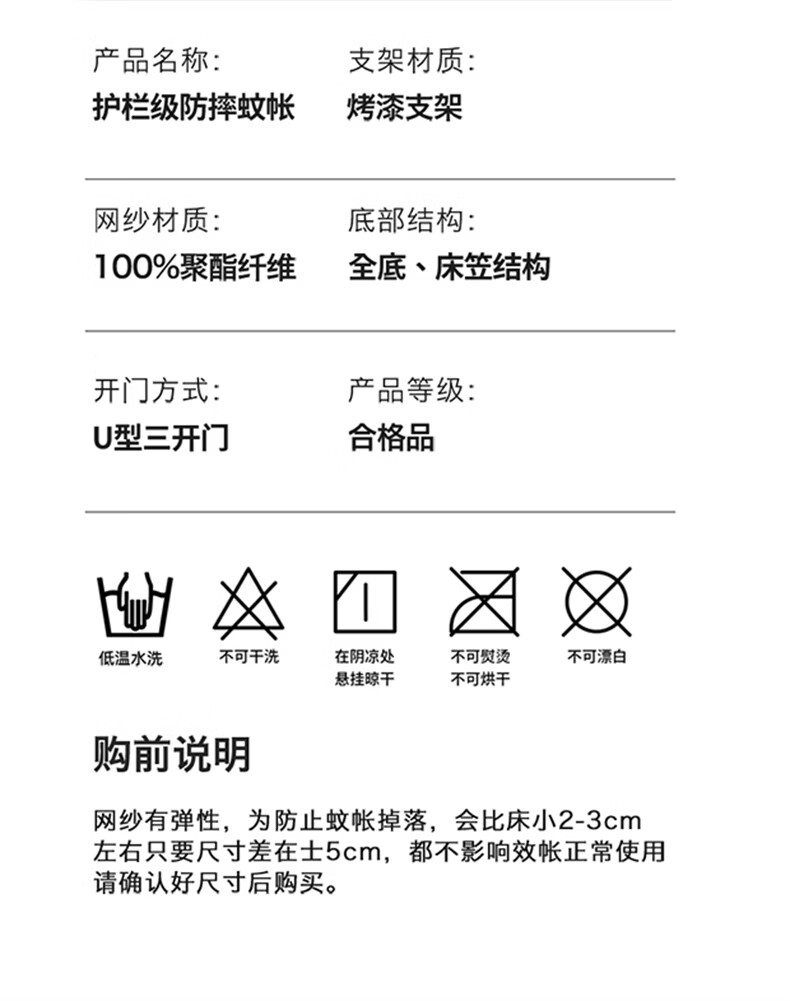 无印良品婴儿防摔蚊帐1.8x2米家用一体式免安装儿童防掉床围栏蚊帐二合一 光年-黄【围栏支架+防尘顶+风扇杆】 1.8m床-宽180x长200x高170cm