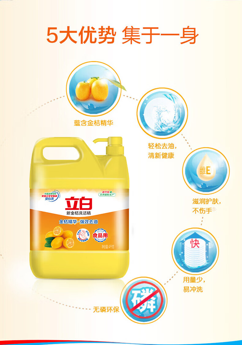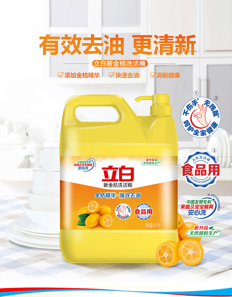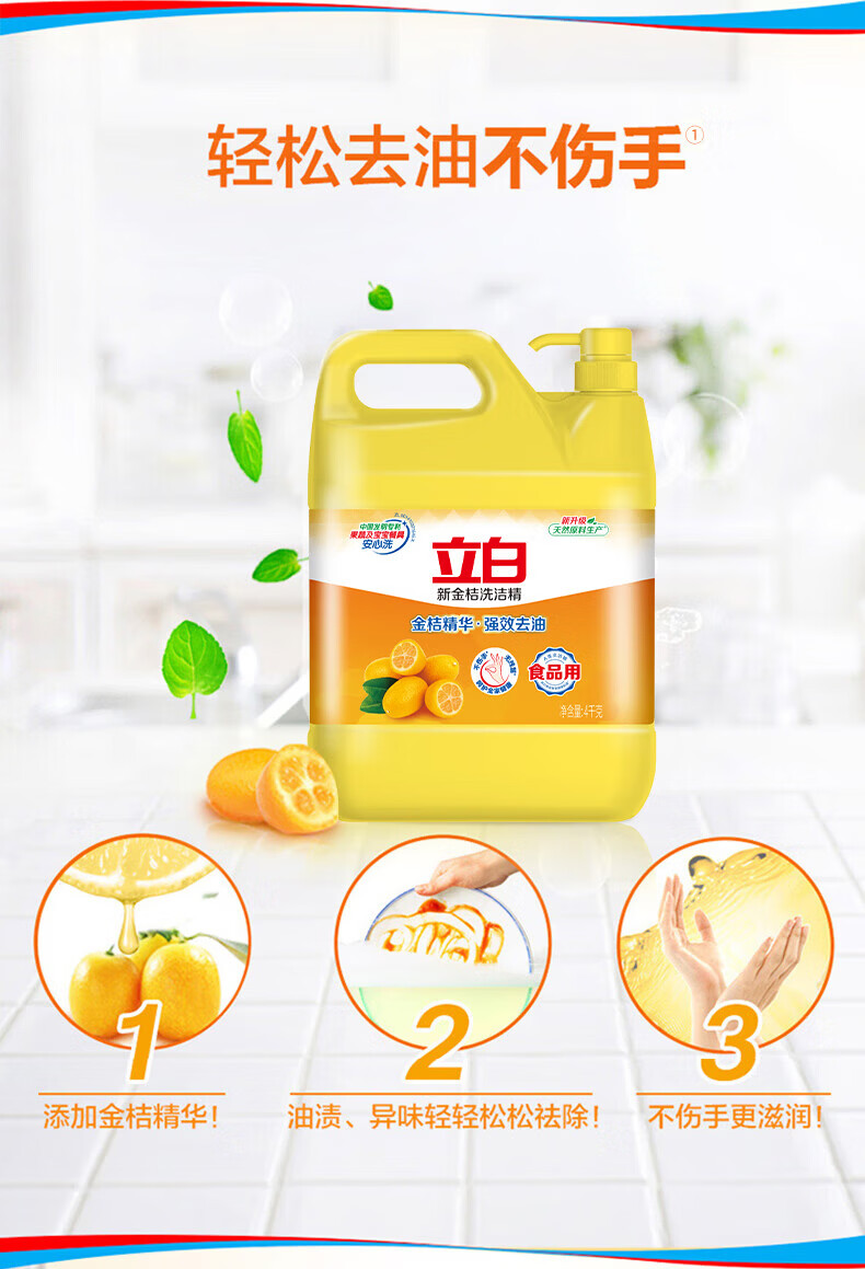 立白柠檬洗洁精食品用洗涤剂级家用实惠装大桶不伤手清新去油腻 2斤性价比【1瓶带海绵】