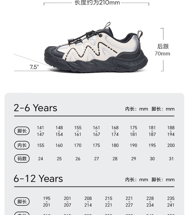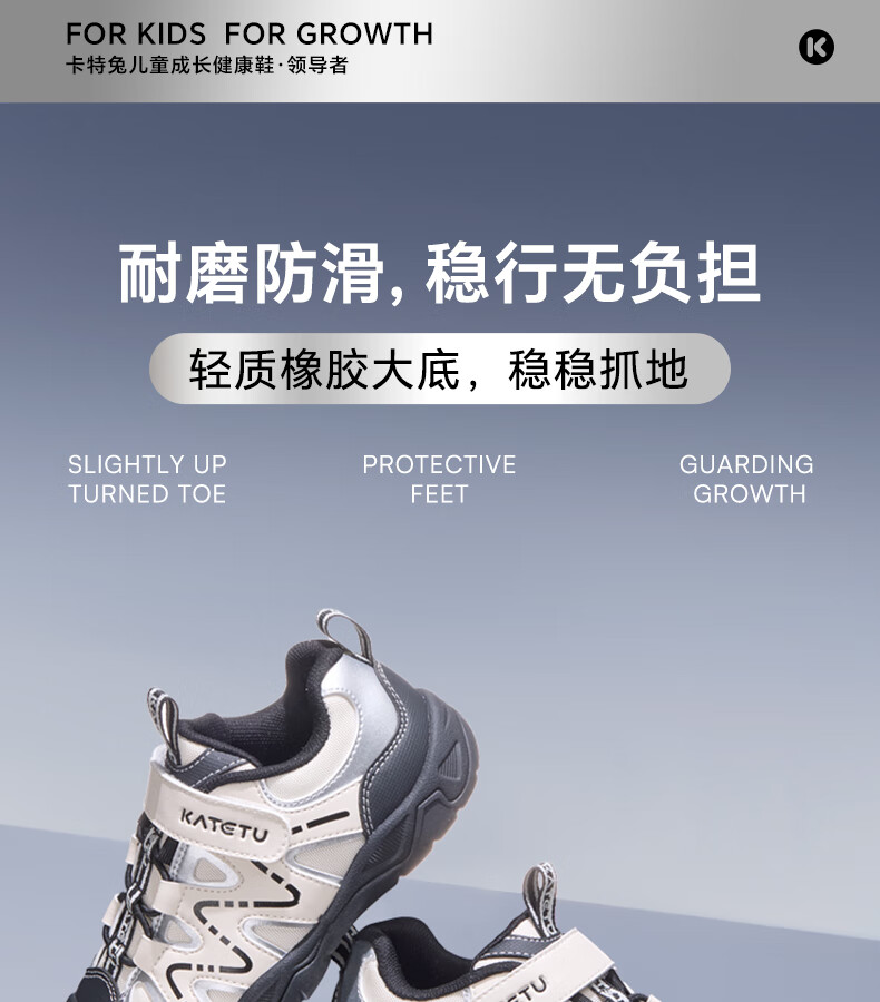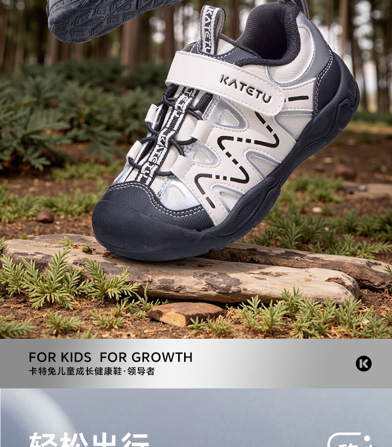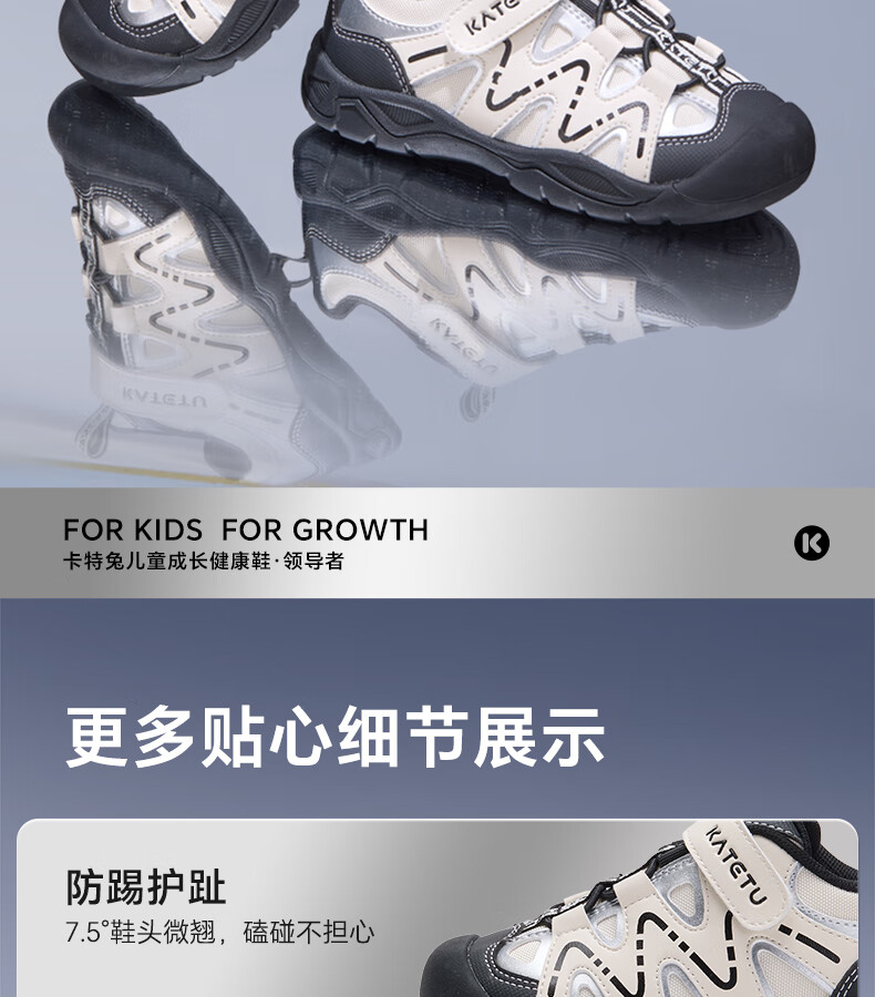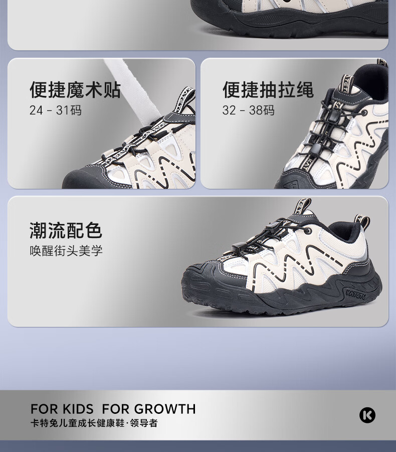 卡特兔大码童鞋儿童户外男童2025秋季新品溯溪鞋男童鞋子运动鞋 灰色 28 内长约18.0cm脚长约16.8-17.4