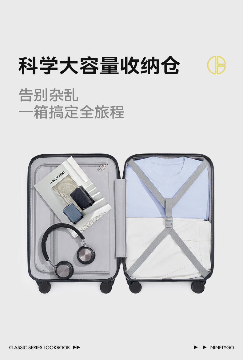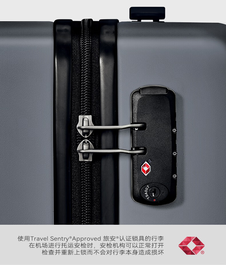 90分行李箱20英寸莱茵河经典款 拉杆箱登机旅行箱万向轮密码箱钛金灰
